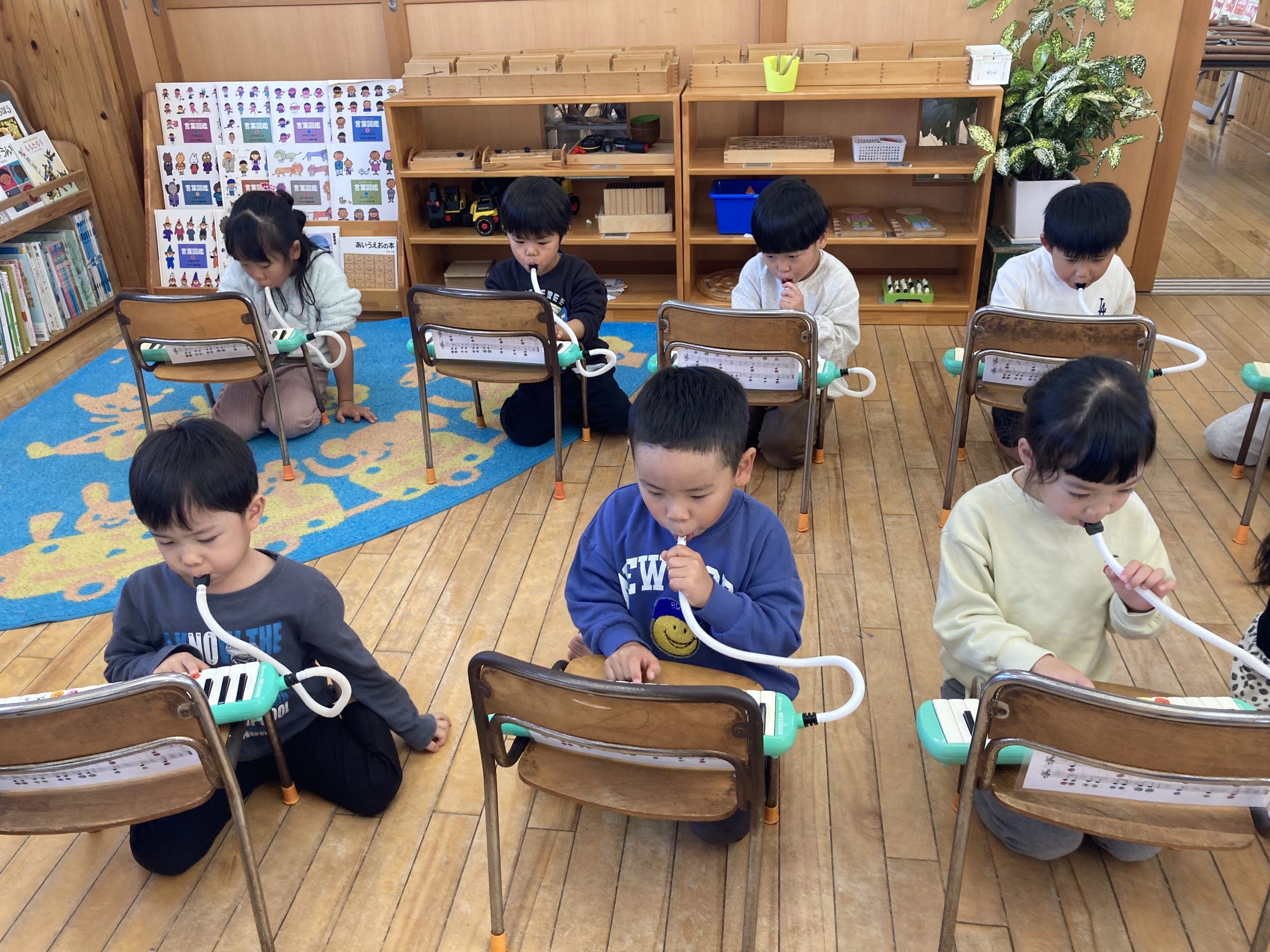 今日は言葉遊びで、「しりとり」と「連想ゲーム」をしました🗣️連想ゲームでは「赤い食べ物はなに?」「白いものといえば?」というお題から連想される言葉をみんなで考えました!お友達と楽しそうに考えながらそれぞれ答えていましたよ✨また、鍵盤ハーモニカの練習もしました🎹🎶保育者のピアノに合わせて弾けるようになり「先生と一緒に弾けた!」と子どもたちも嬉しそうでした💖