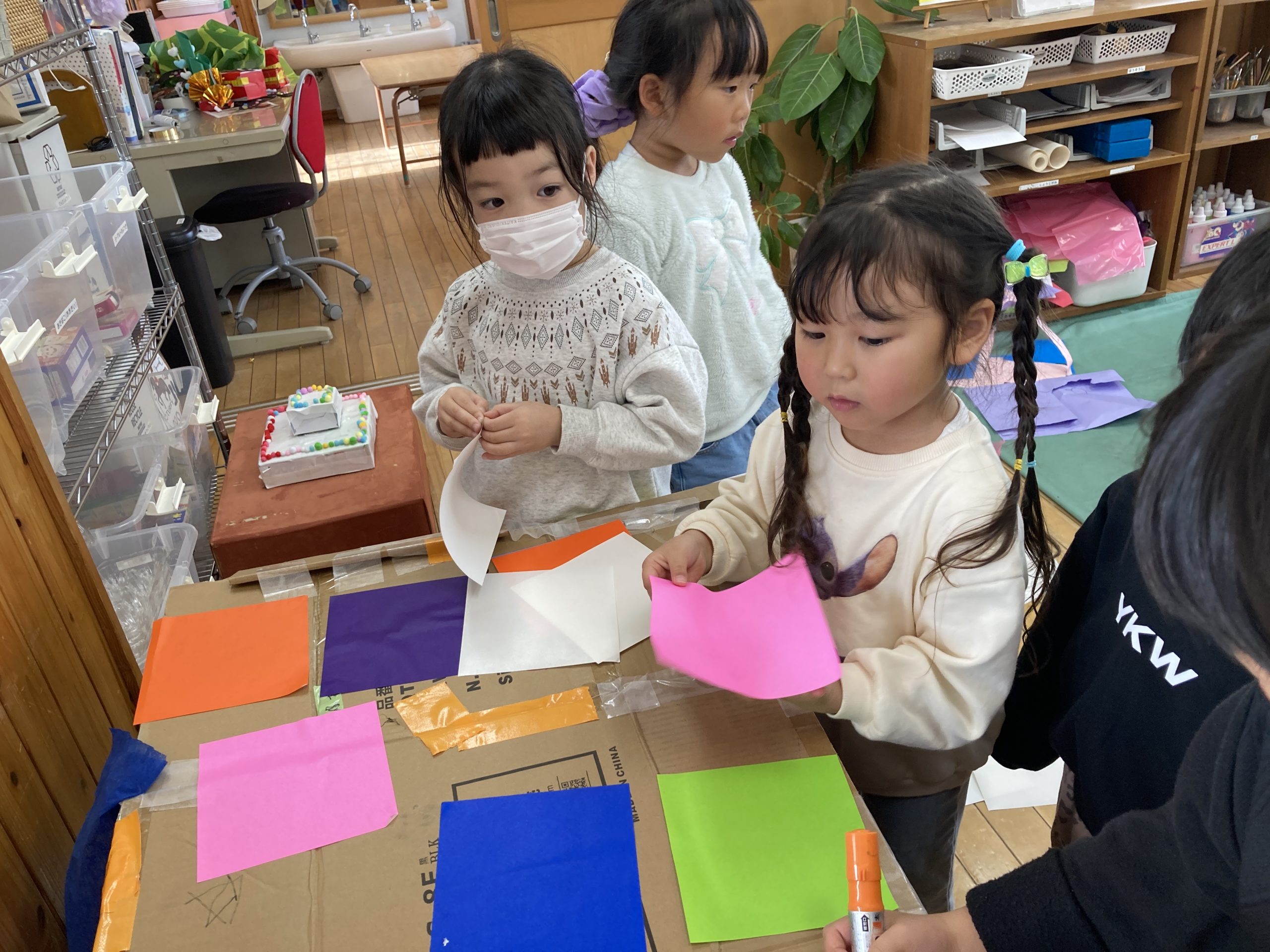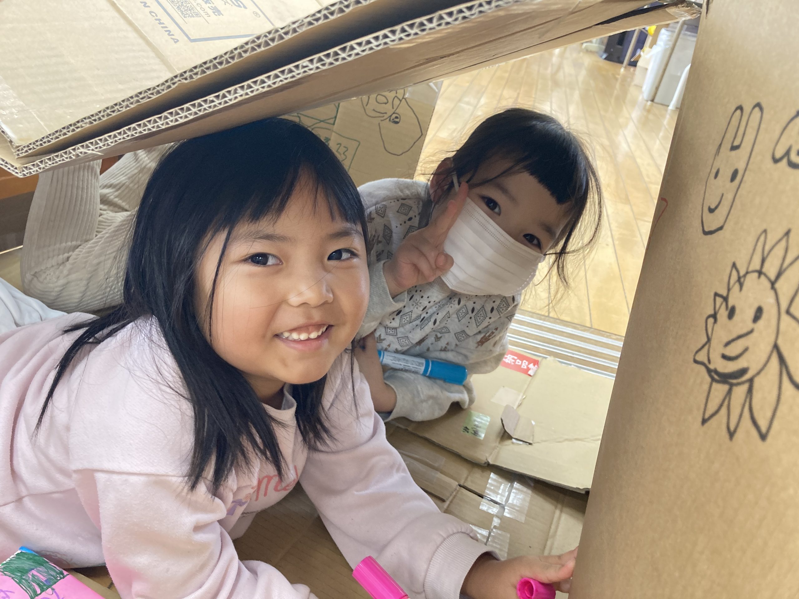 今日は園庭で縄跳びやかけっこをしてたくさん体を動かして遊びました🌈そのあとはお部屋でコーナー遊びをしました。製作コーナーでは昨日に引き続きお家作りを楽しんでいましたよ🏠✨