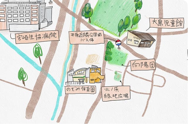 園のお散歩コースにある公園や店などについて紹介します