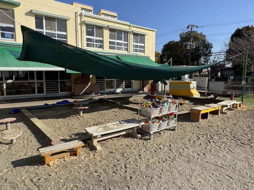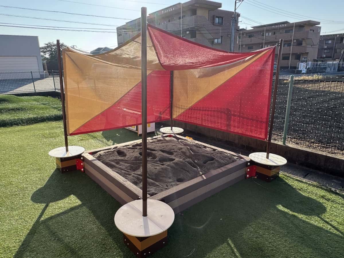 とても広いので水を流してどろんこあそびができるなど、ダイナミックな砂あそびを楽しめます。