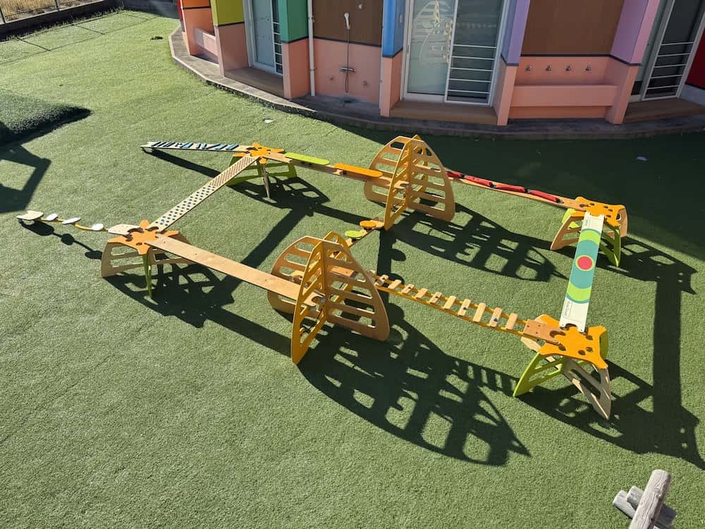 平均台のように体のバランスをとりながらいろいろな足場を使って楽しむことができます