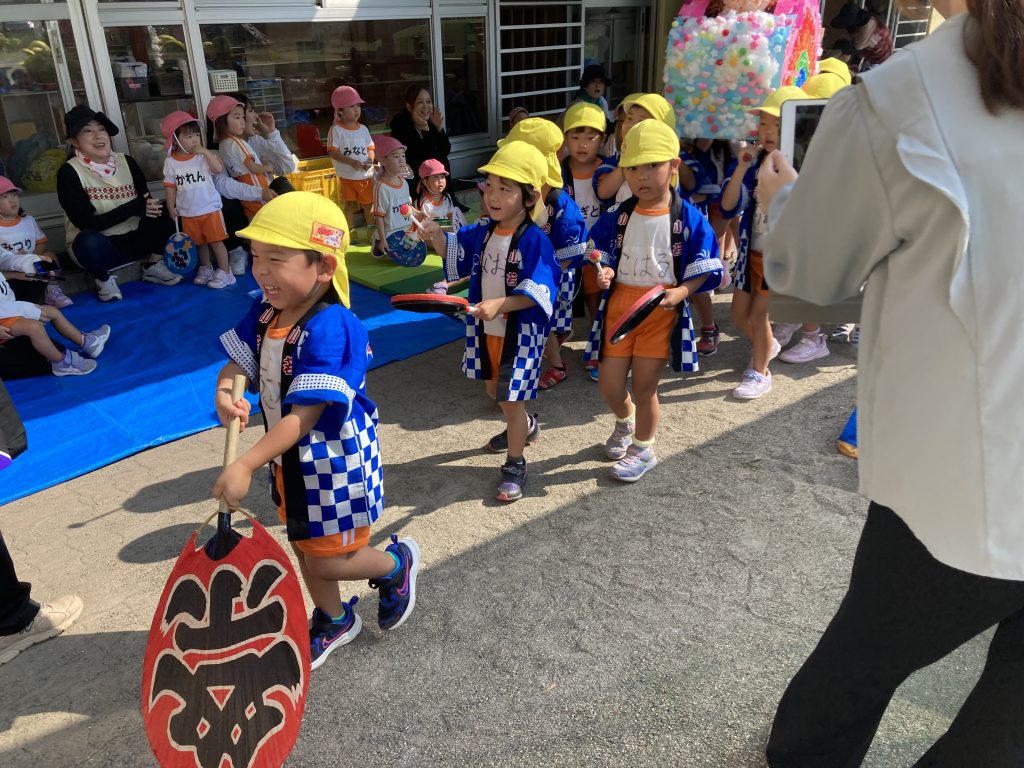 今日は秋まつりごっこがありました!りす・きりんぐみのお神輿担ぎや盆踊り、お買い物ごっこなどがありました🏮⭐️みんな楽しんで秋祭りごっこに参加していましたよ😆