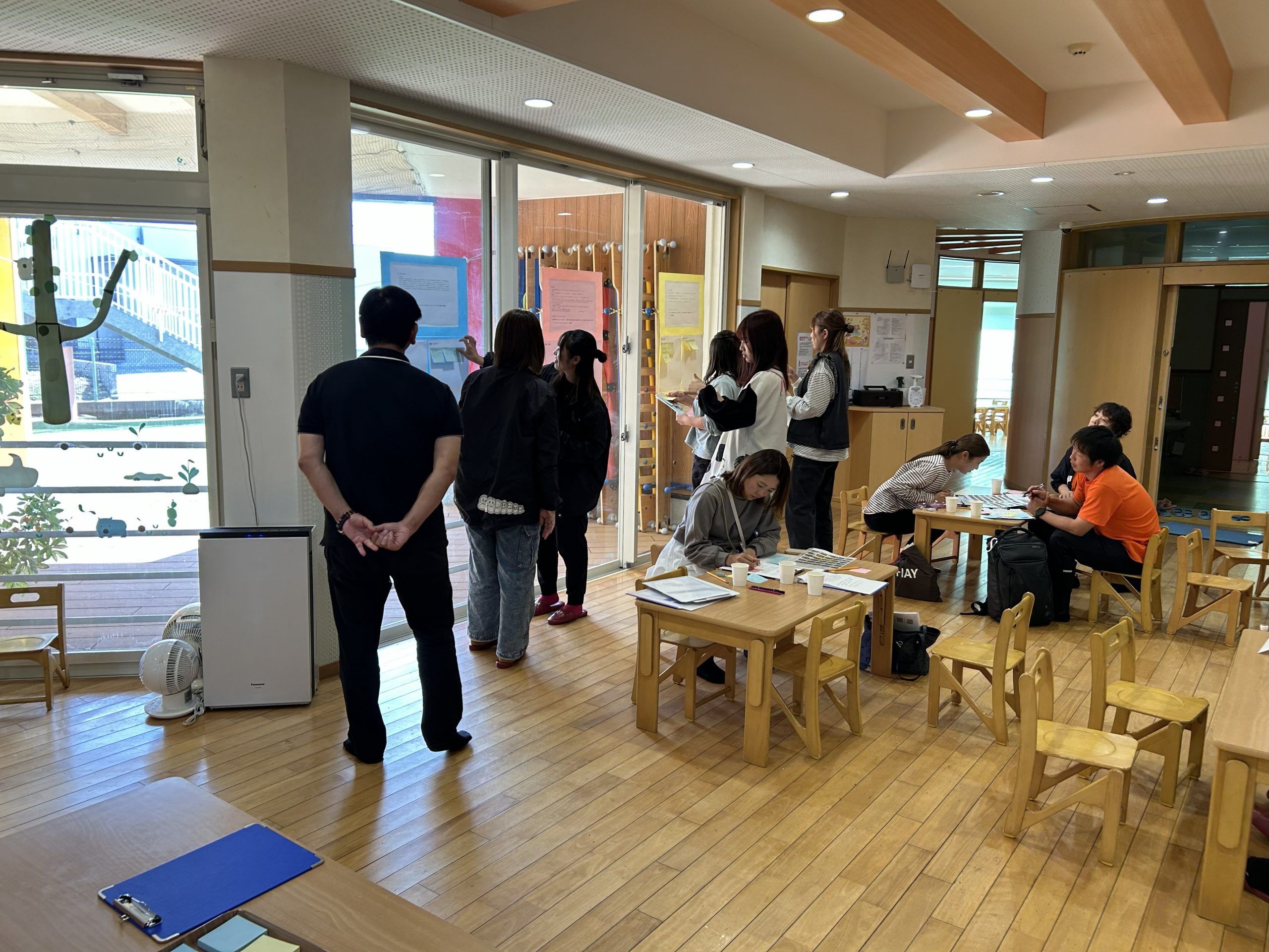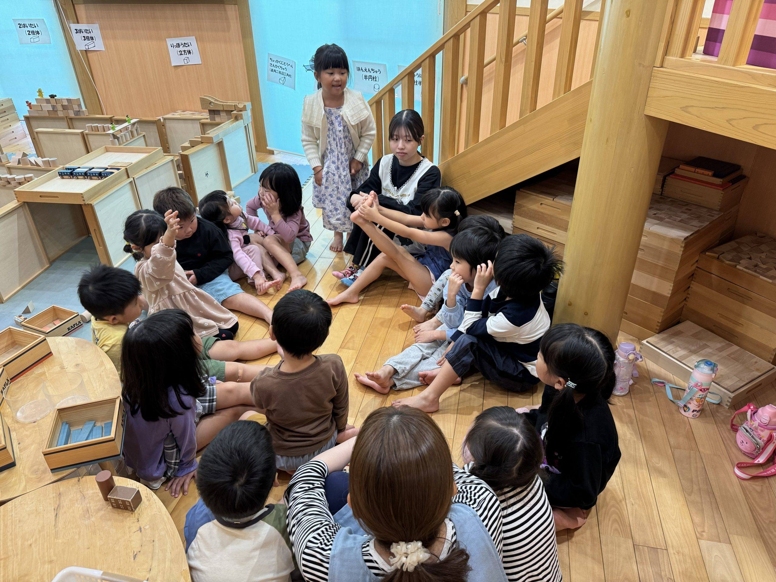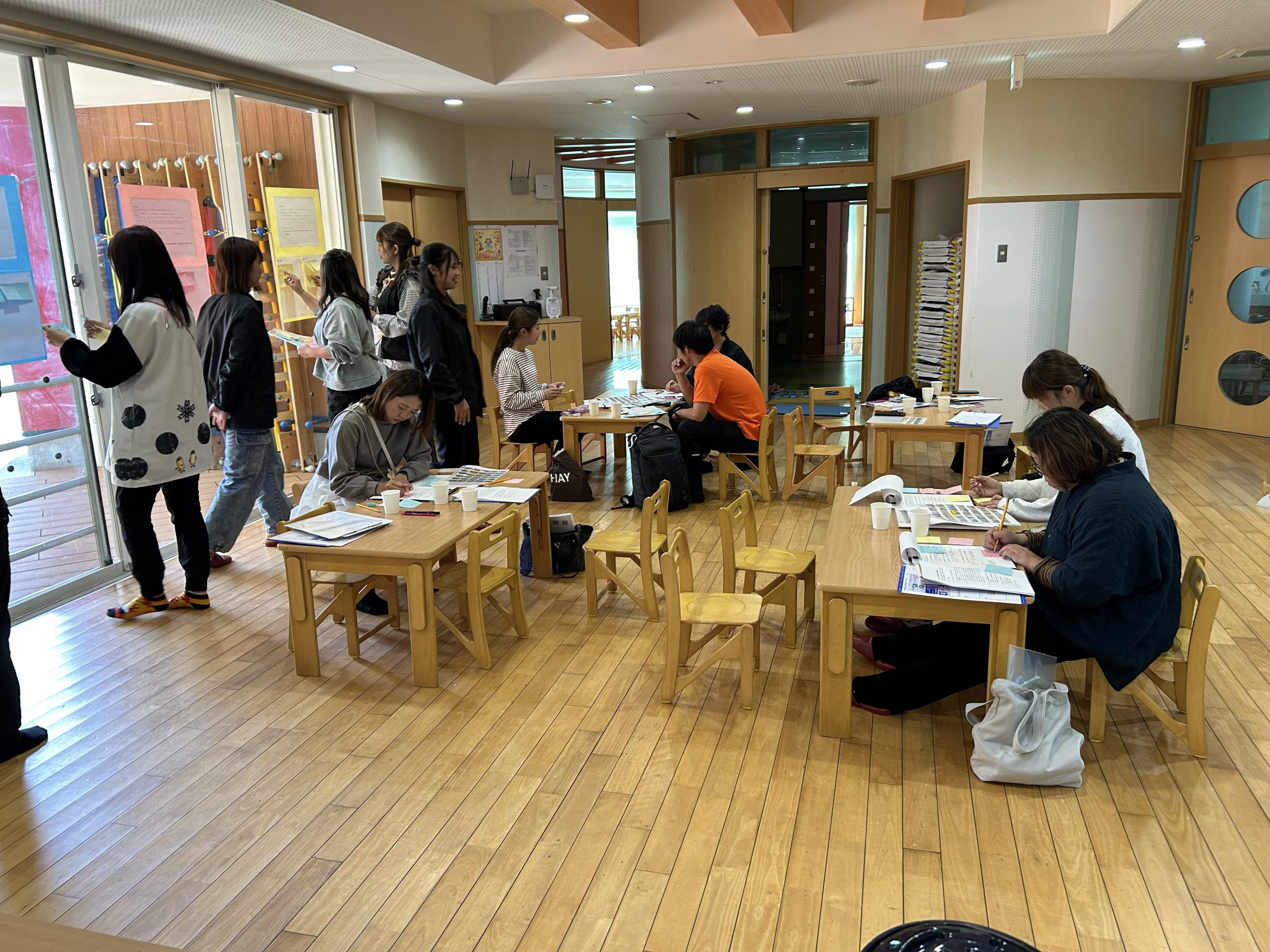 県内6ヶ園の先生と、地域の方、保護者の方に保育を参観していただきました。参観後、公開保育に関する問いを3つ立てて、皆さんに意見を出してもらい、園長がそれについて解説を行いました。
