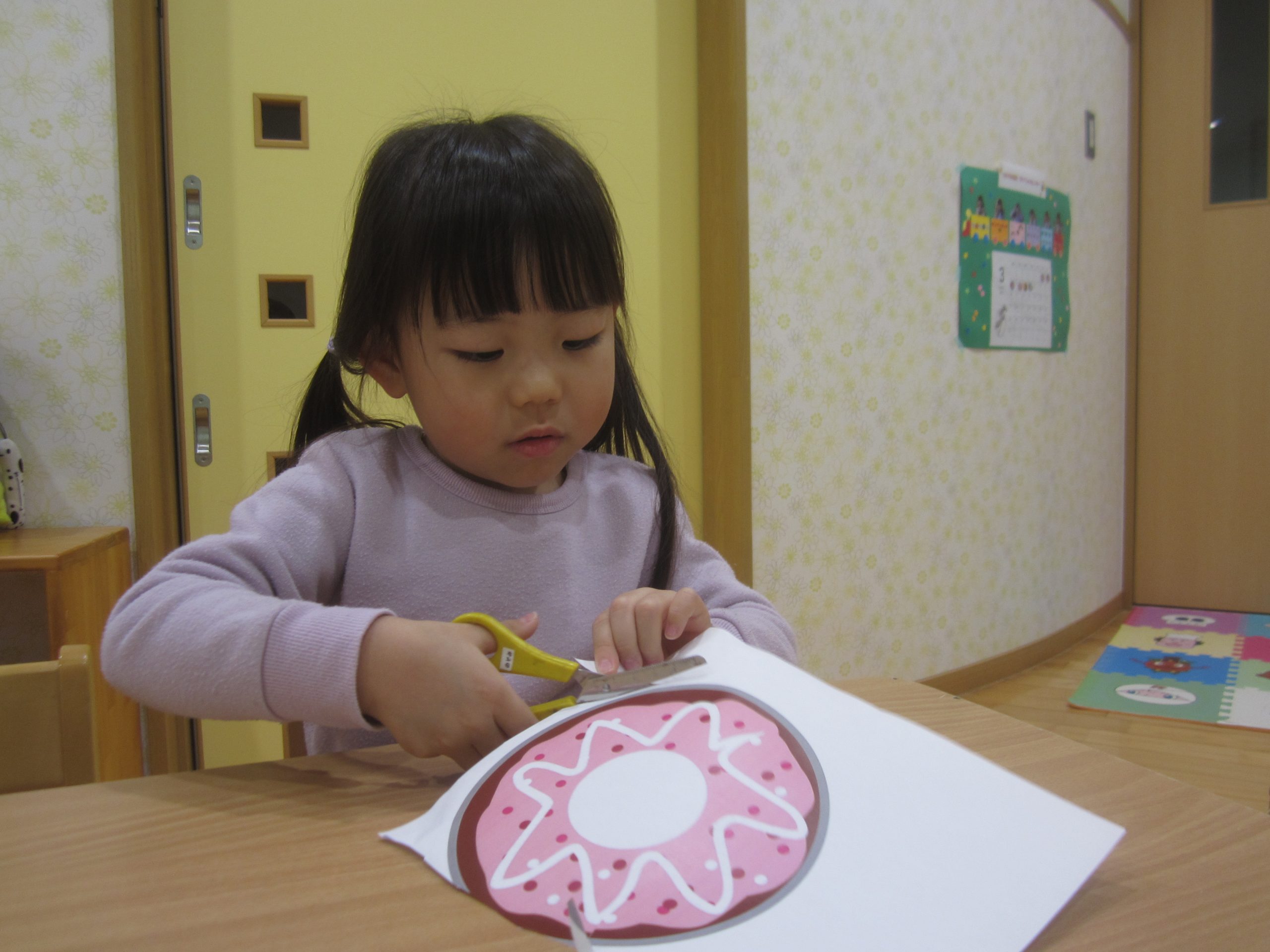 今日は、はさみで曲線を切る練習をしました!線に沿って切れるように集中して取り組んでいましたよ😊