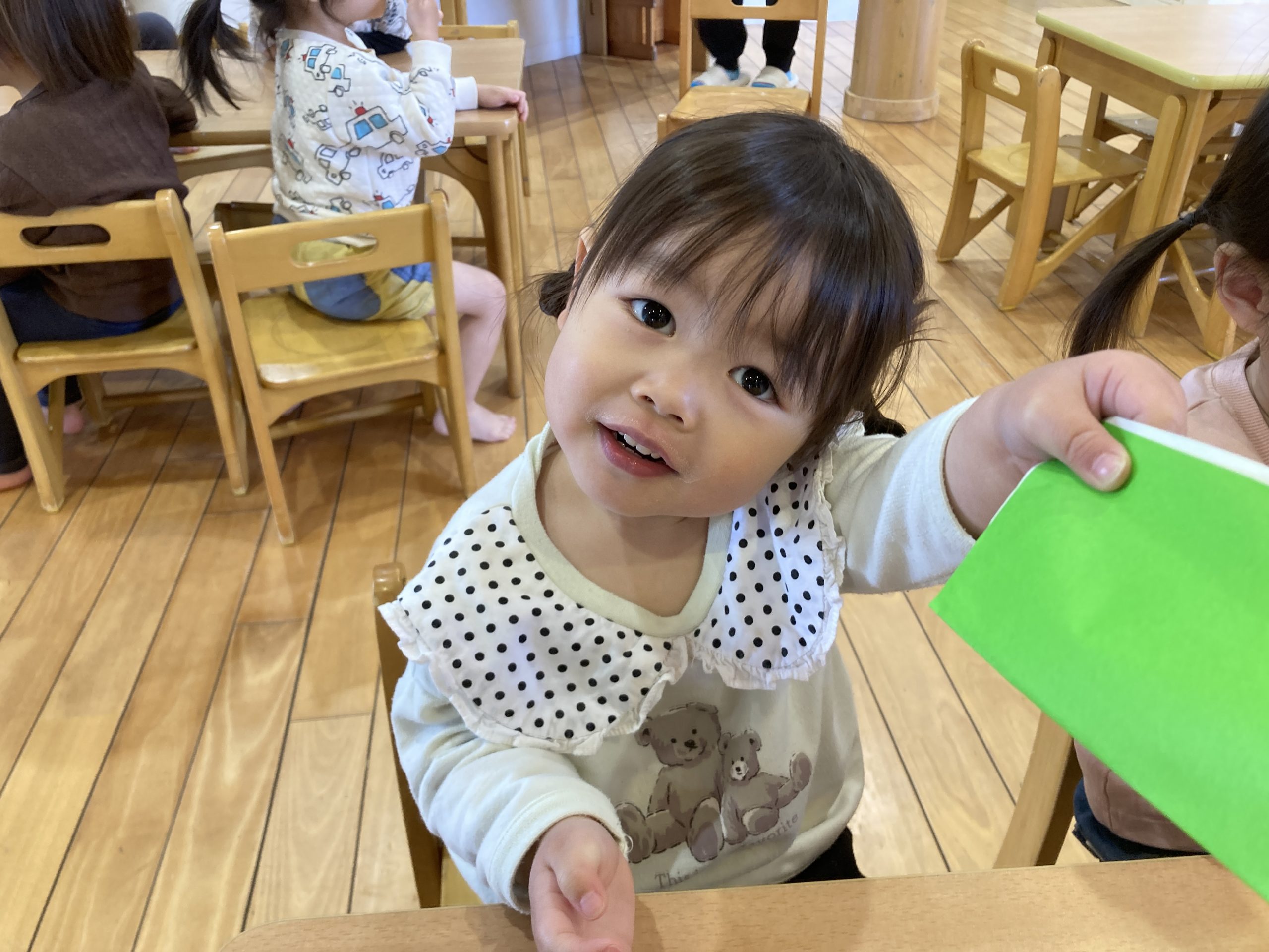 今日は、折り紙をして遊びました✨一生懸命に折ることができていましたよ♪