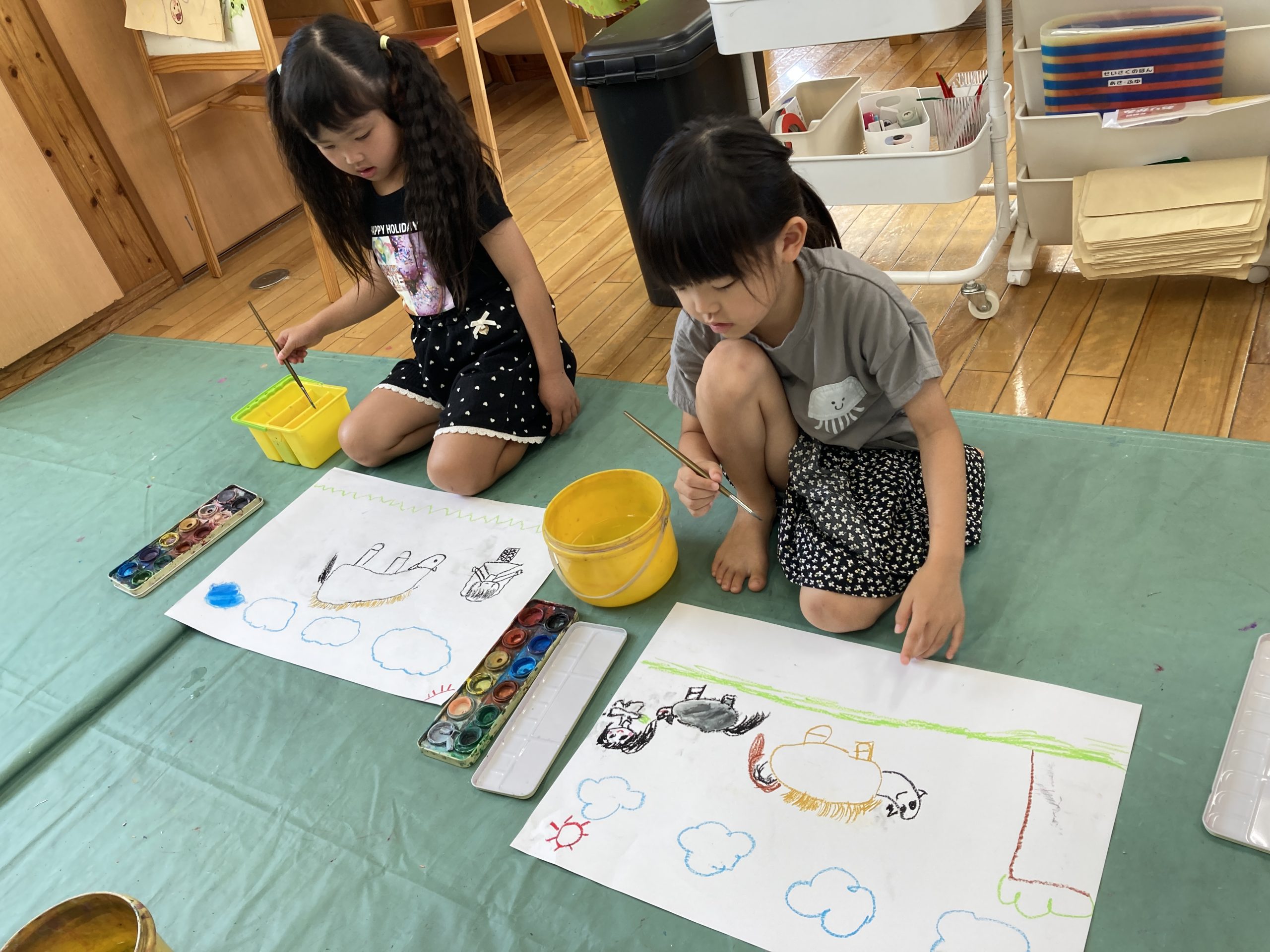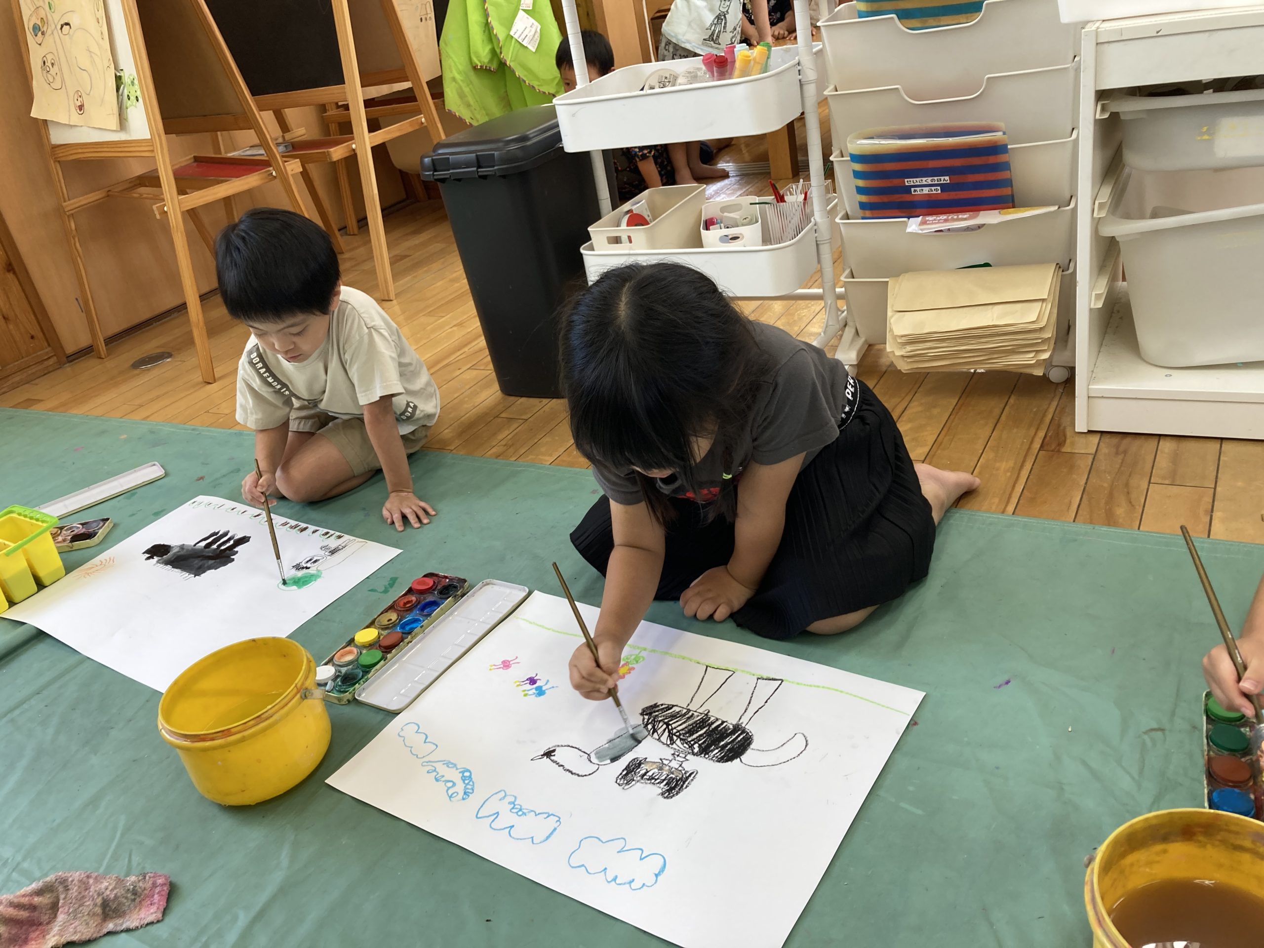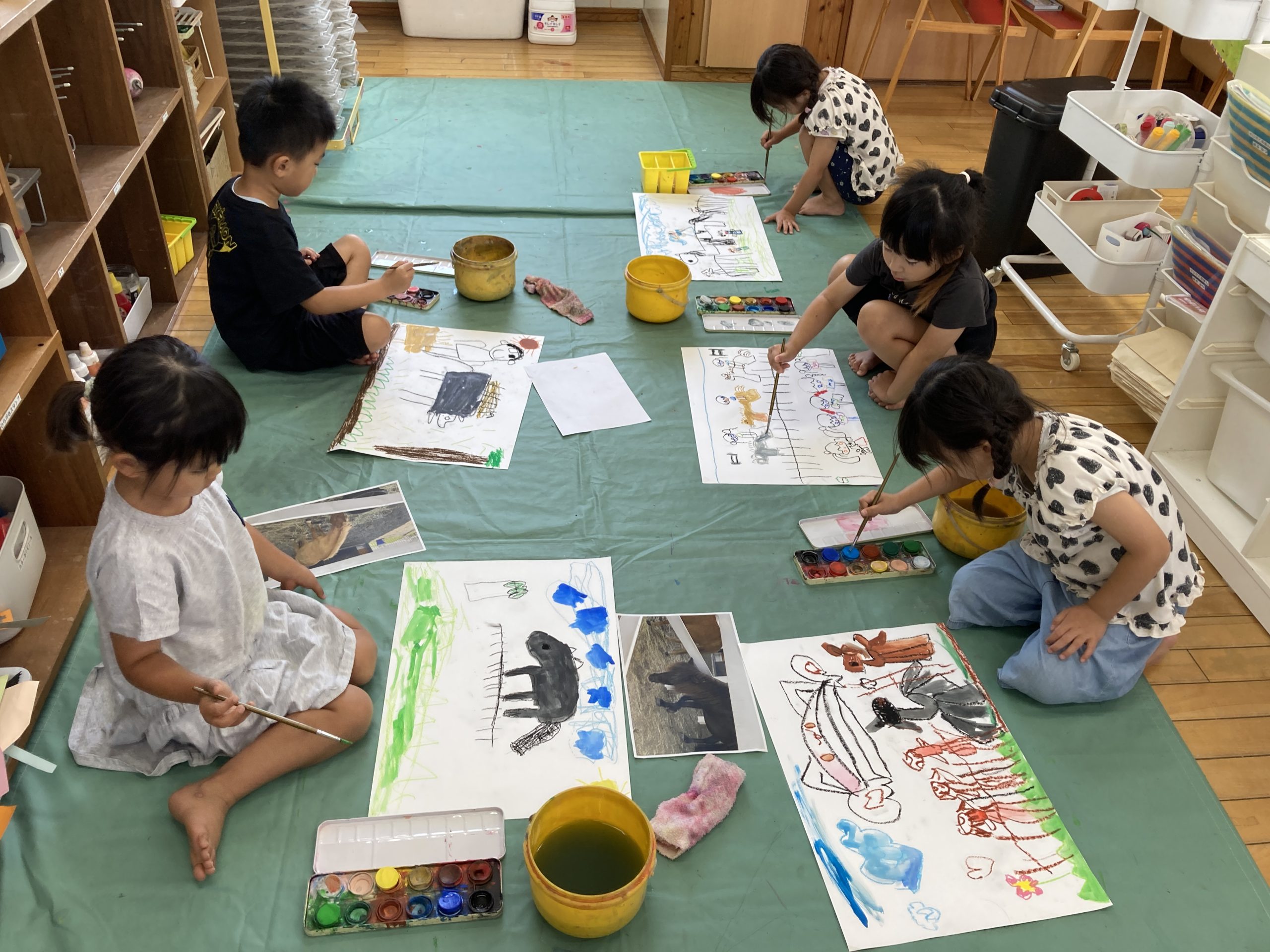 今日は、馬の絵を描きました🐎育成牧場に行った時のことを思い出しながらそれぞれイメージしたものを描いていました😃‼️