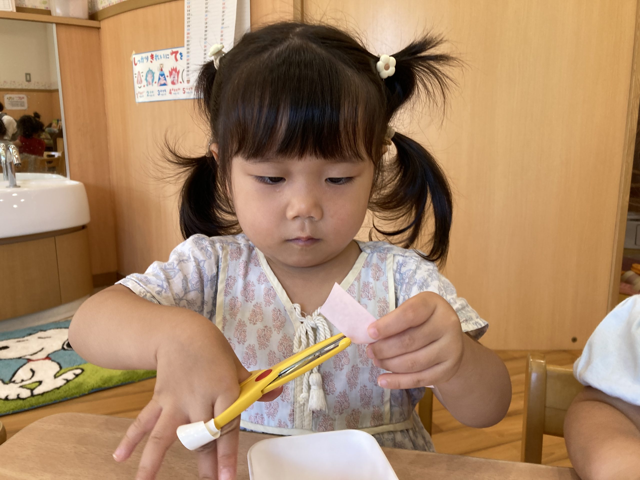 今日は、はさみの練習をしました✂✨はさみの持ち方を確認しながら、真剣に取り組んでいましたよ~😊💙「もう1回する~!」と嬉しそうに何度も挑戦していました!