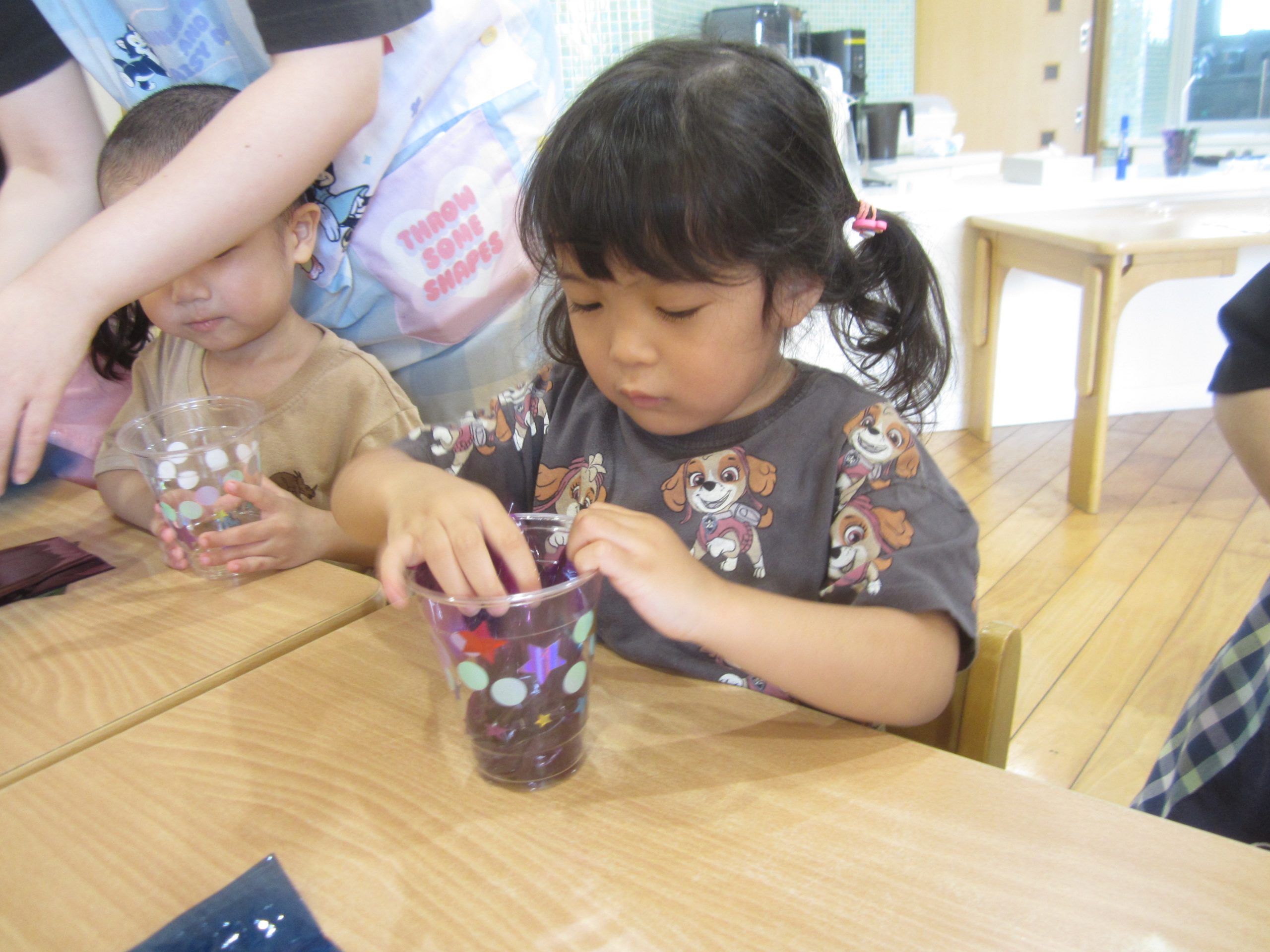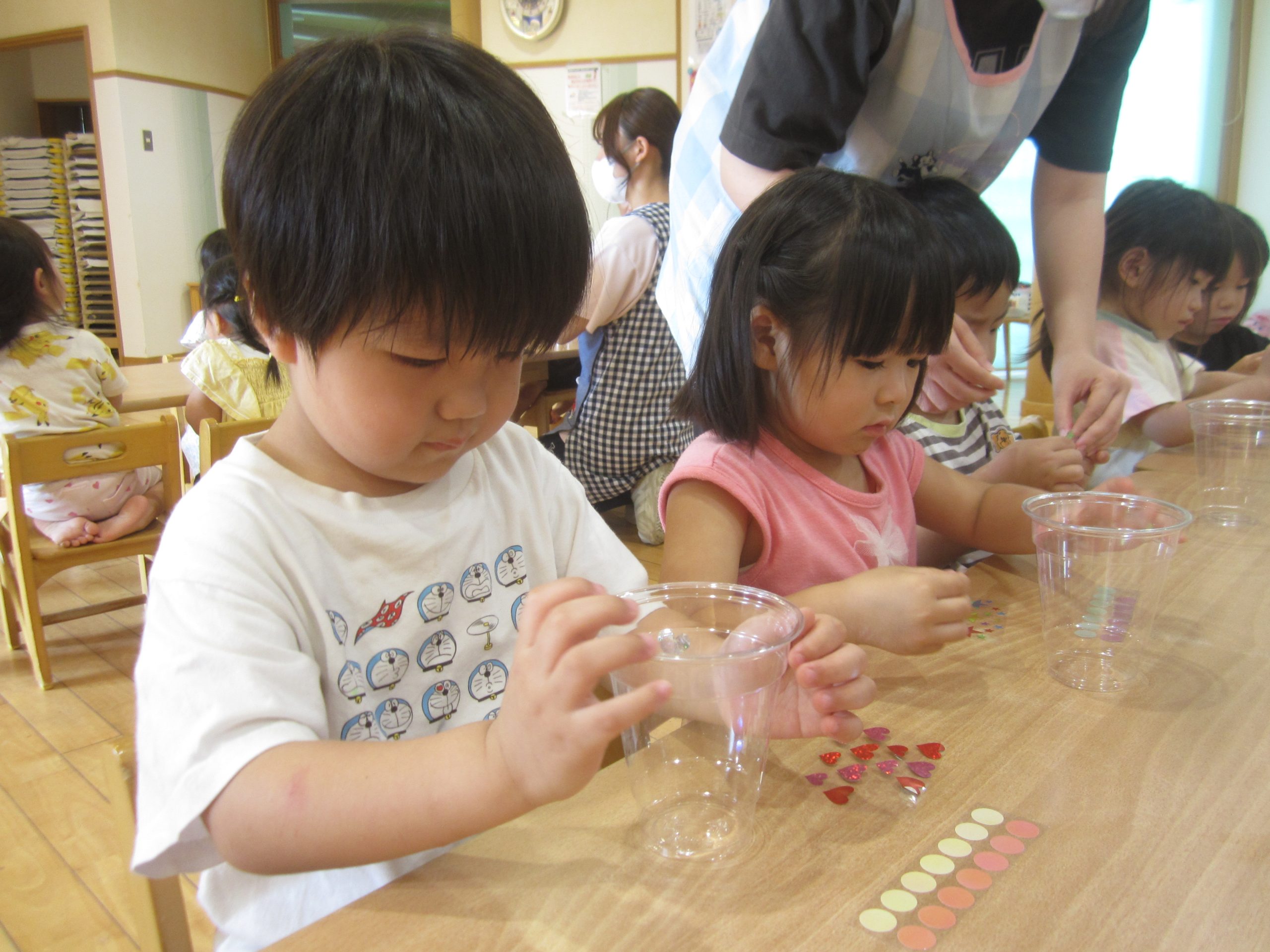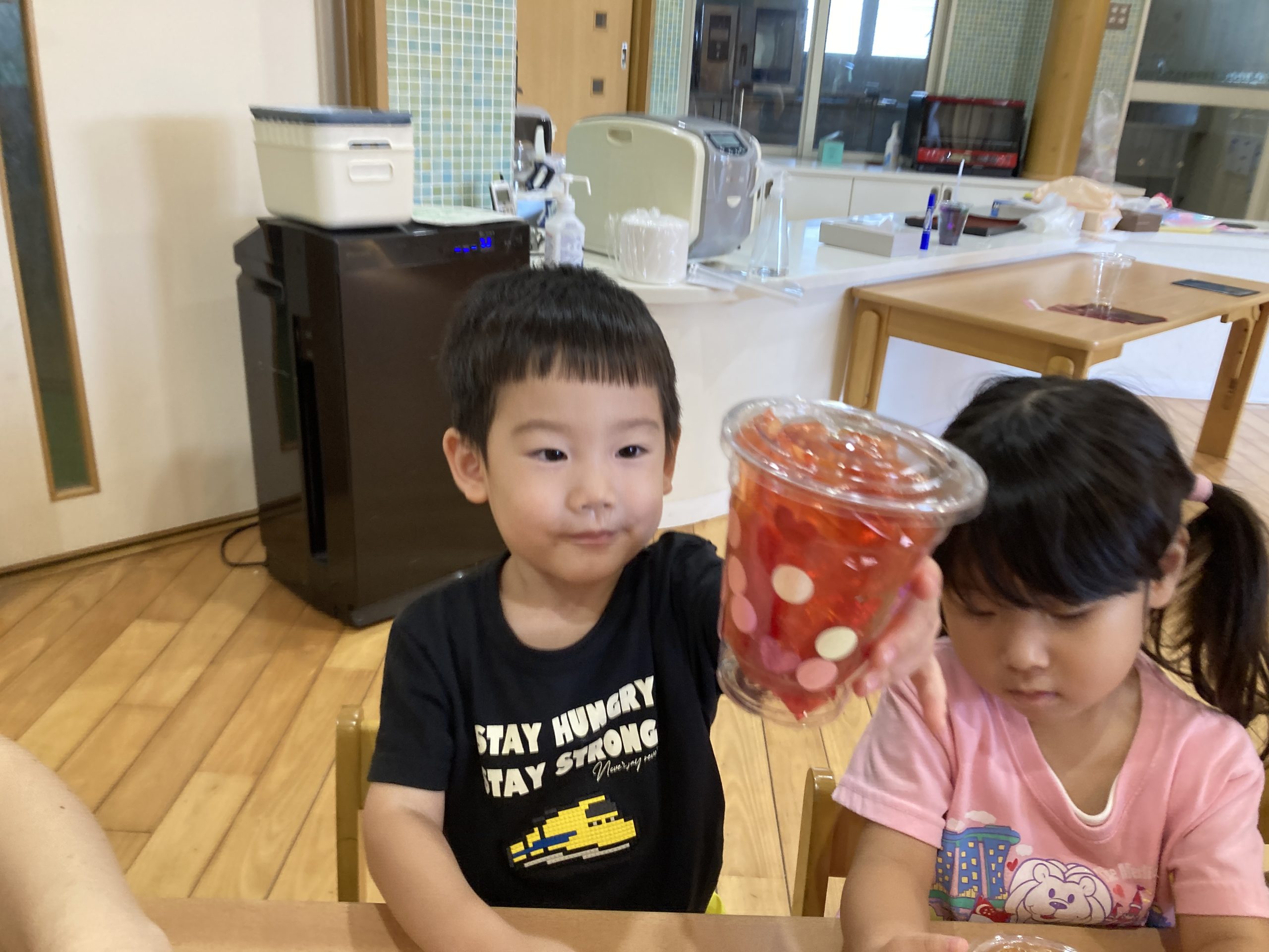 今日は、秋祭りごっこで使う商品のジュース作りに挑戦しました🍹💖青系と赤系のシールをそれぞれ選びながら、可愛いジュースが出来上がりましたよ⭐️