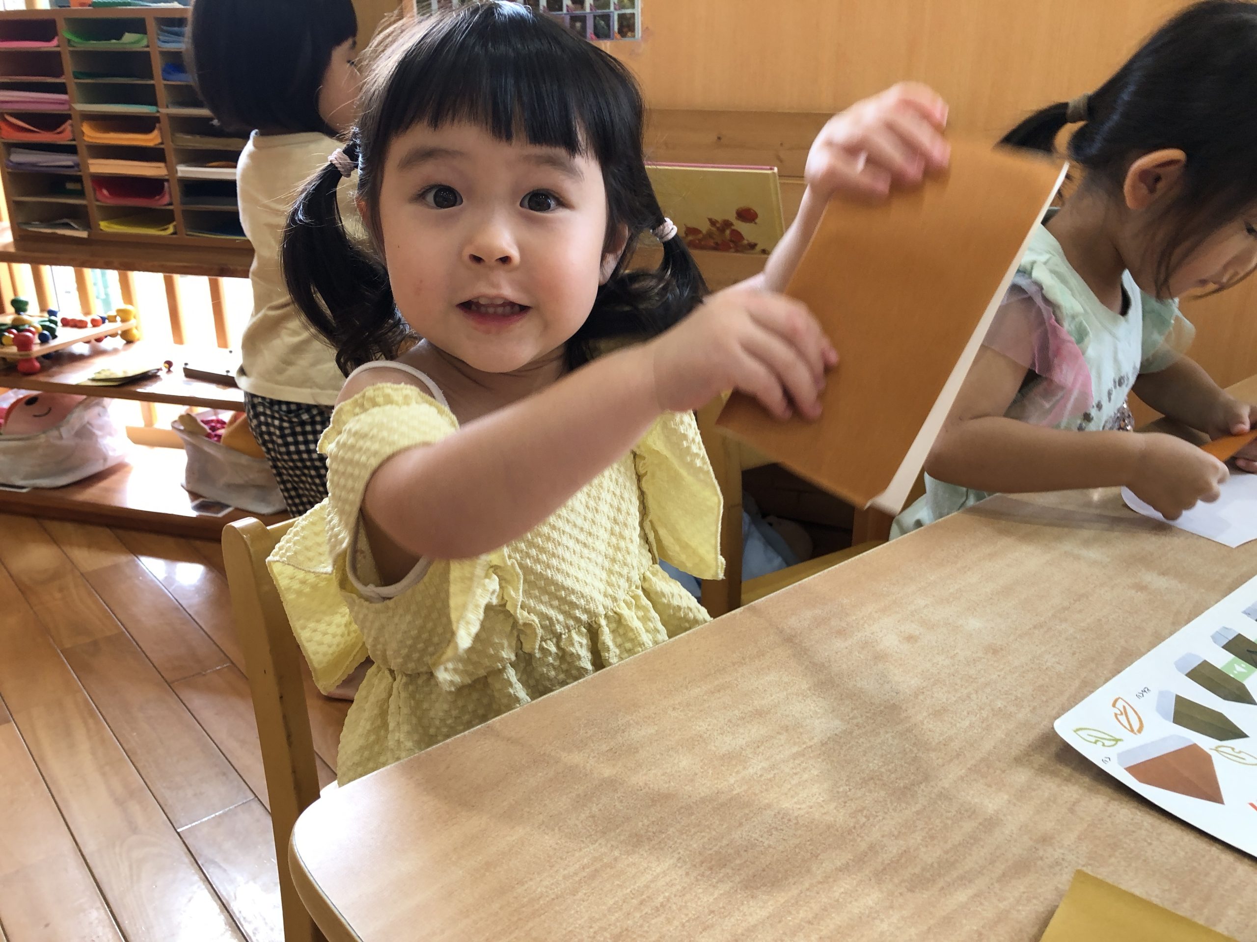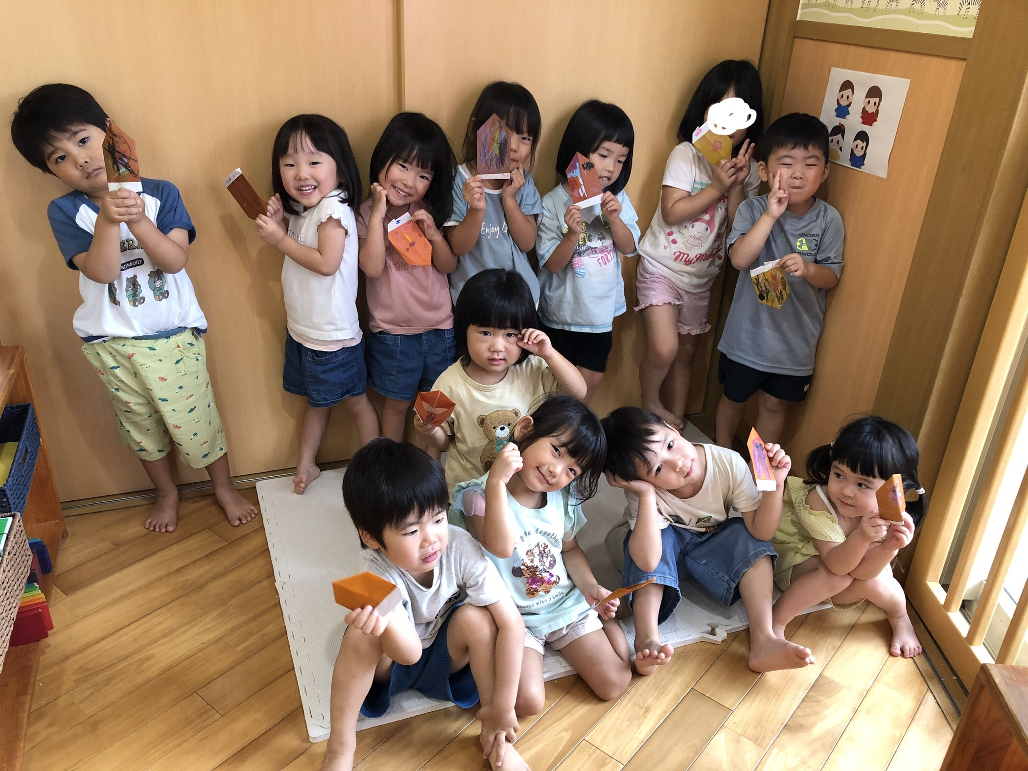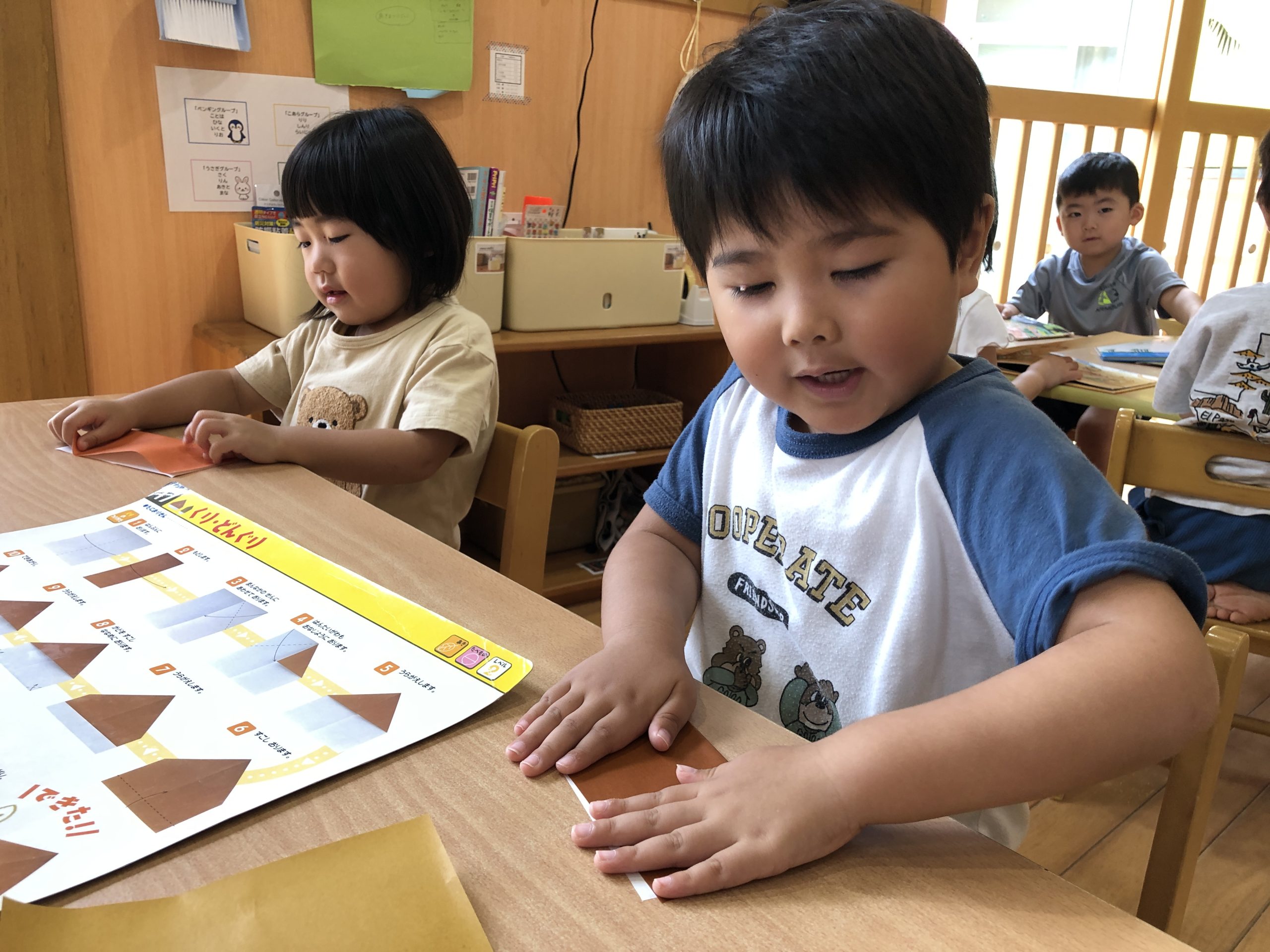 今日は、折り紙でどんぐりを作りました🌳難しい折り方も、お友達と教え合いながら取り組んだりする様子が見られましたよ✨最後にどんぐりに好きなようにお絵描きをしてオリジナルのどんぐりが完成しました😆👍
