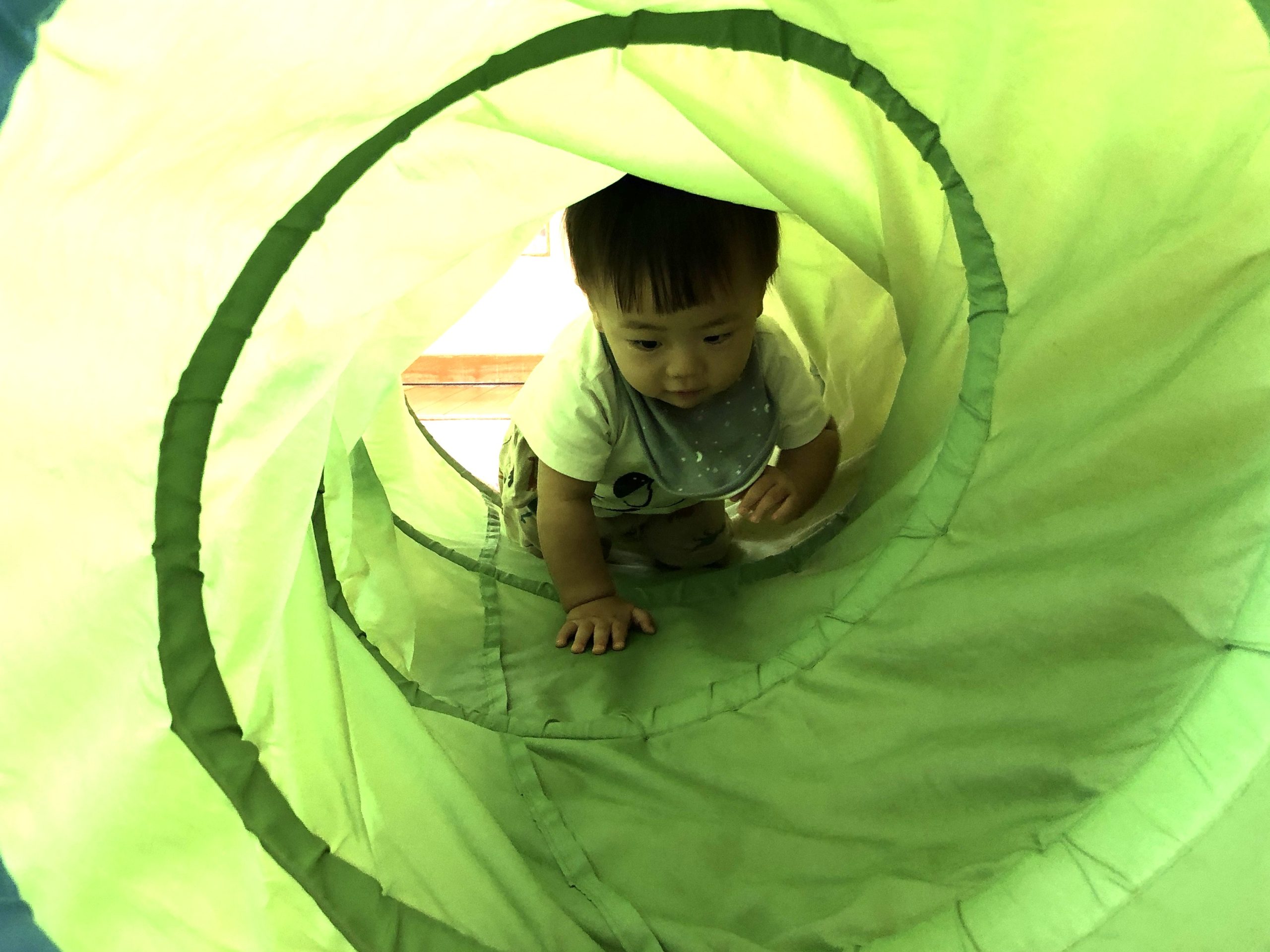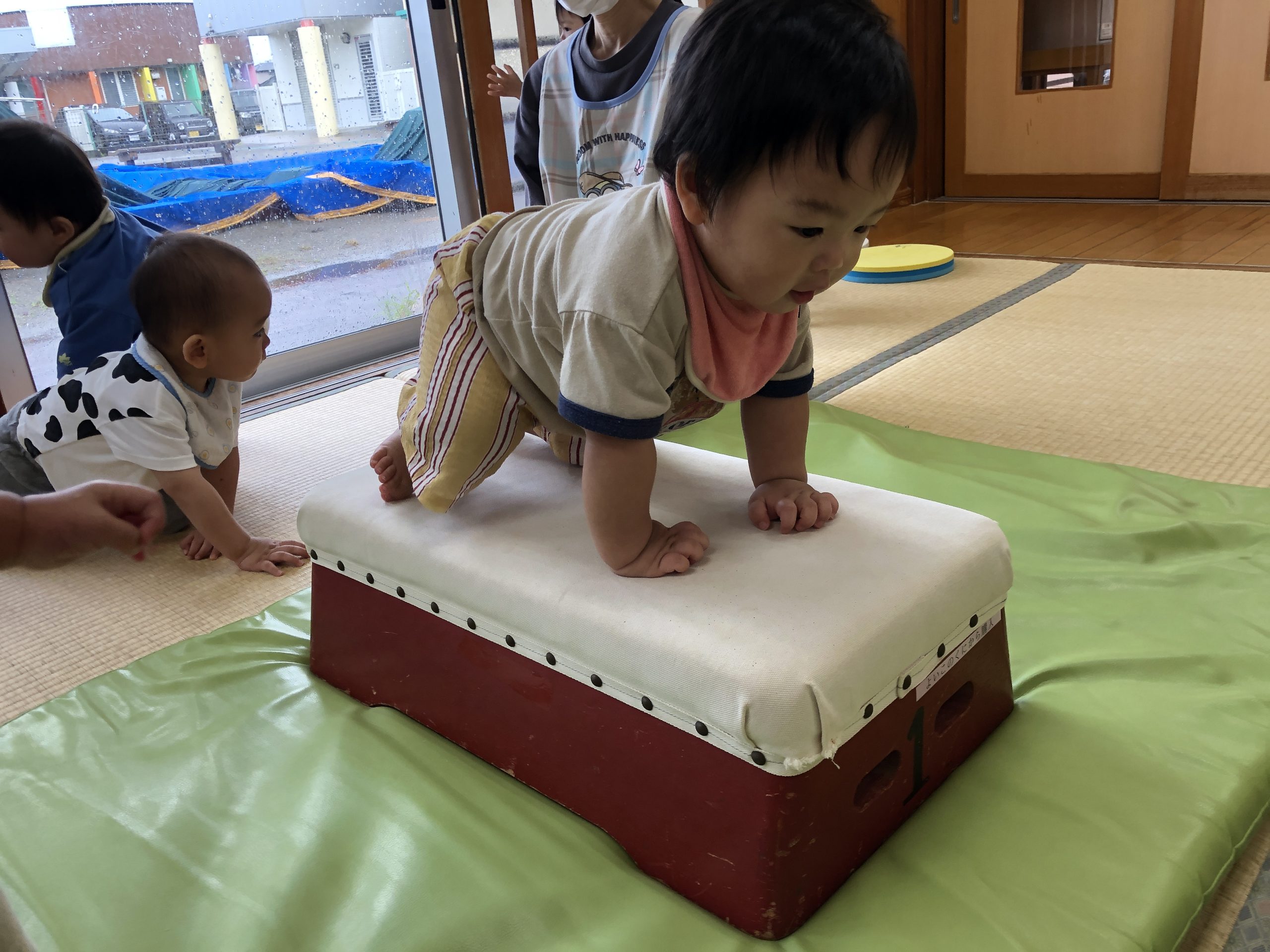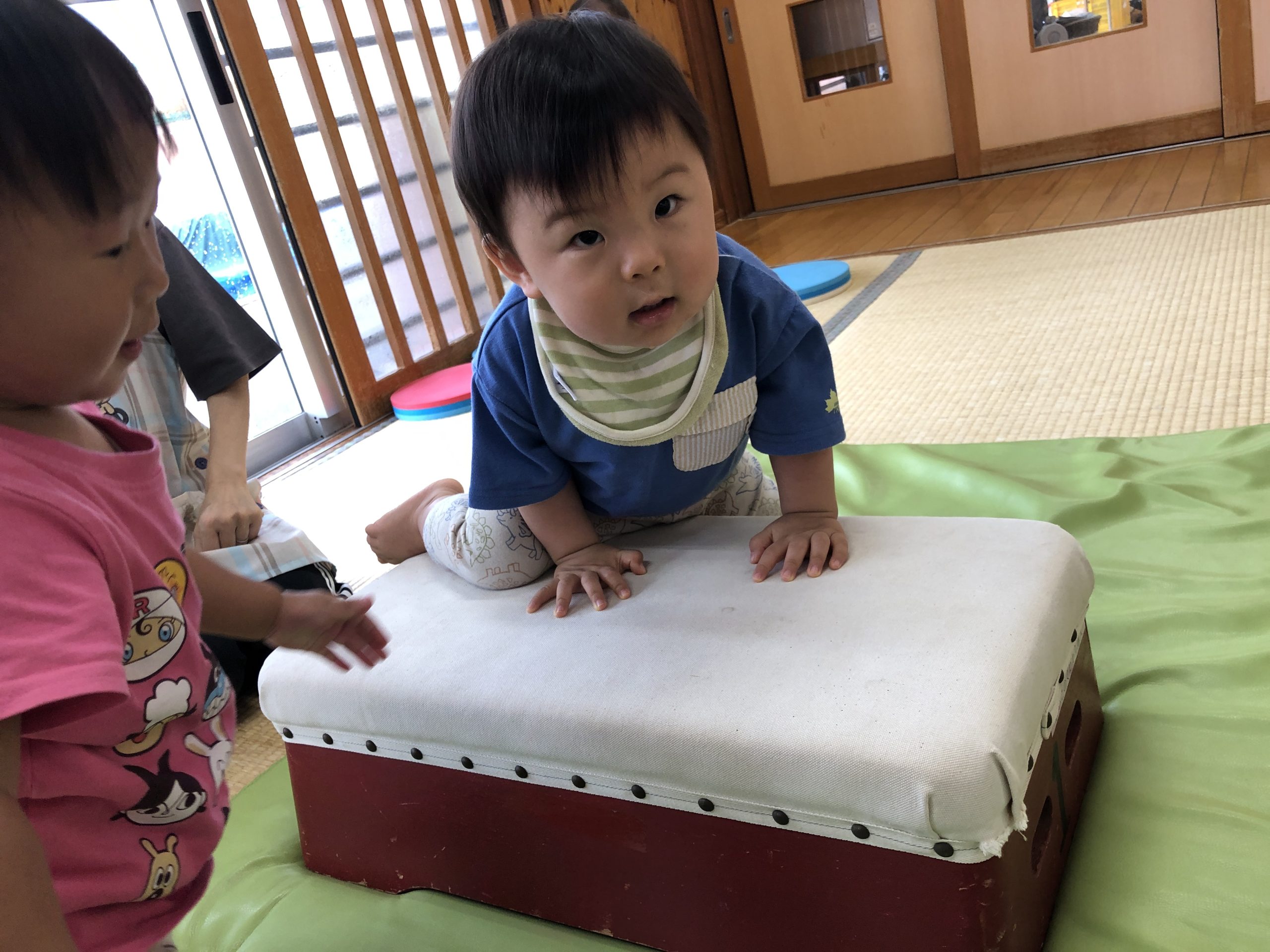 今日は、音階マット、ボブルス階段、蛇腹トンネル、跳び箱1段を使って体を動かして遊びました。跳び箱に興味津々で挑戦するお友だち♪始めは、どうしたらいいかな~と戸惑っていたお友だちも遊び方を知らせると、跳び箱1段の高さを上手に上り下りして楽しんでいましたよ☆彡