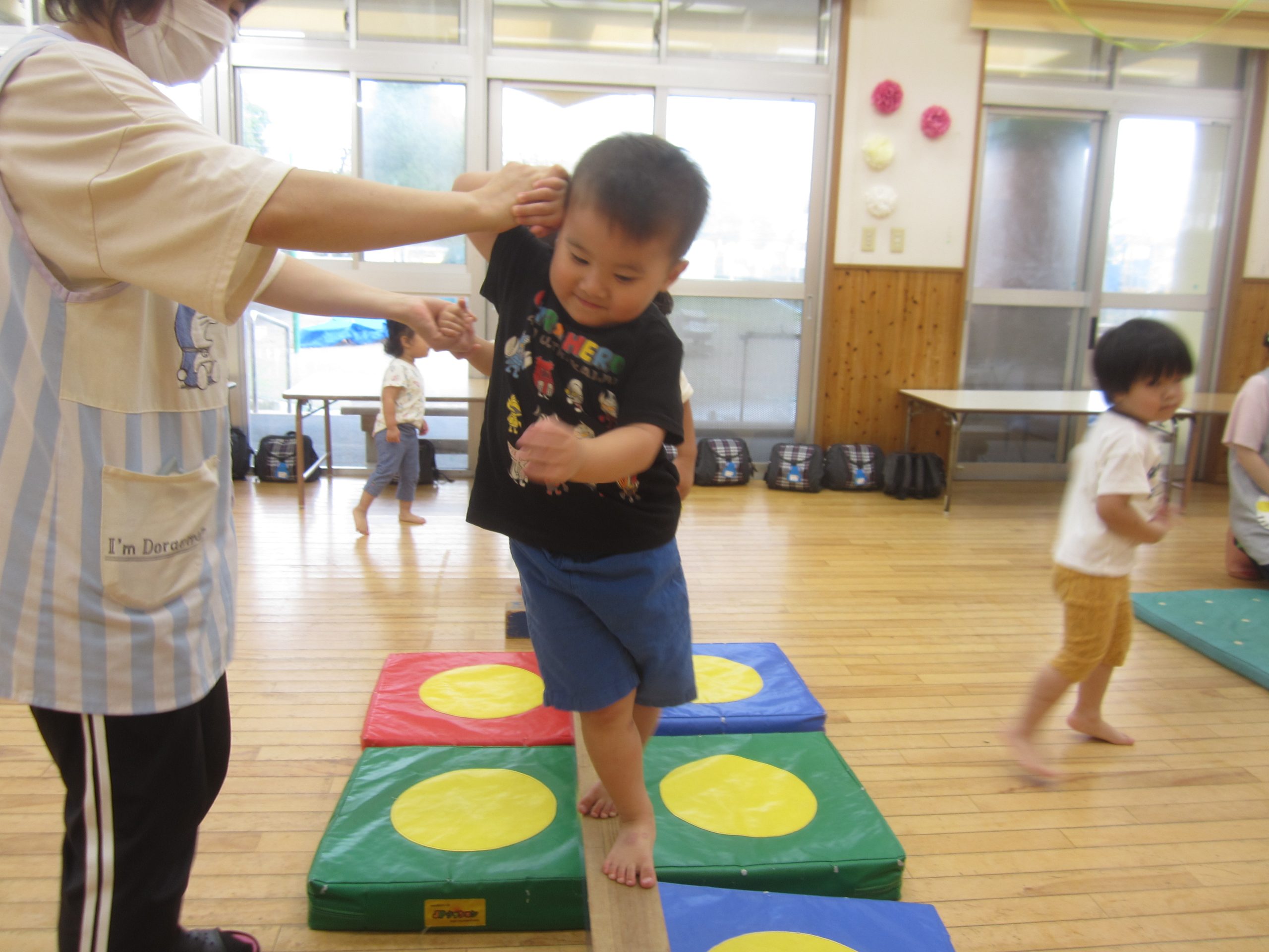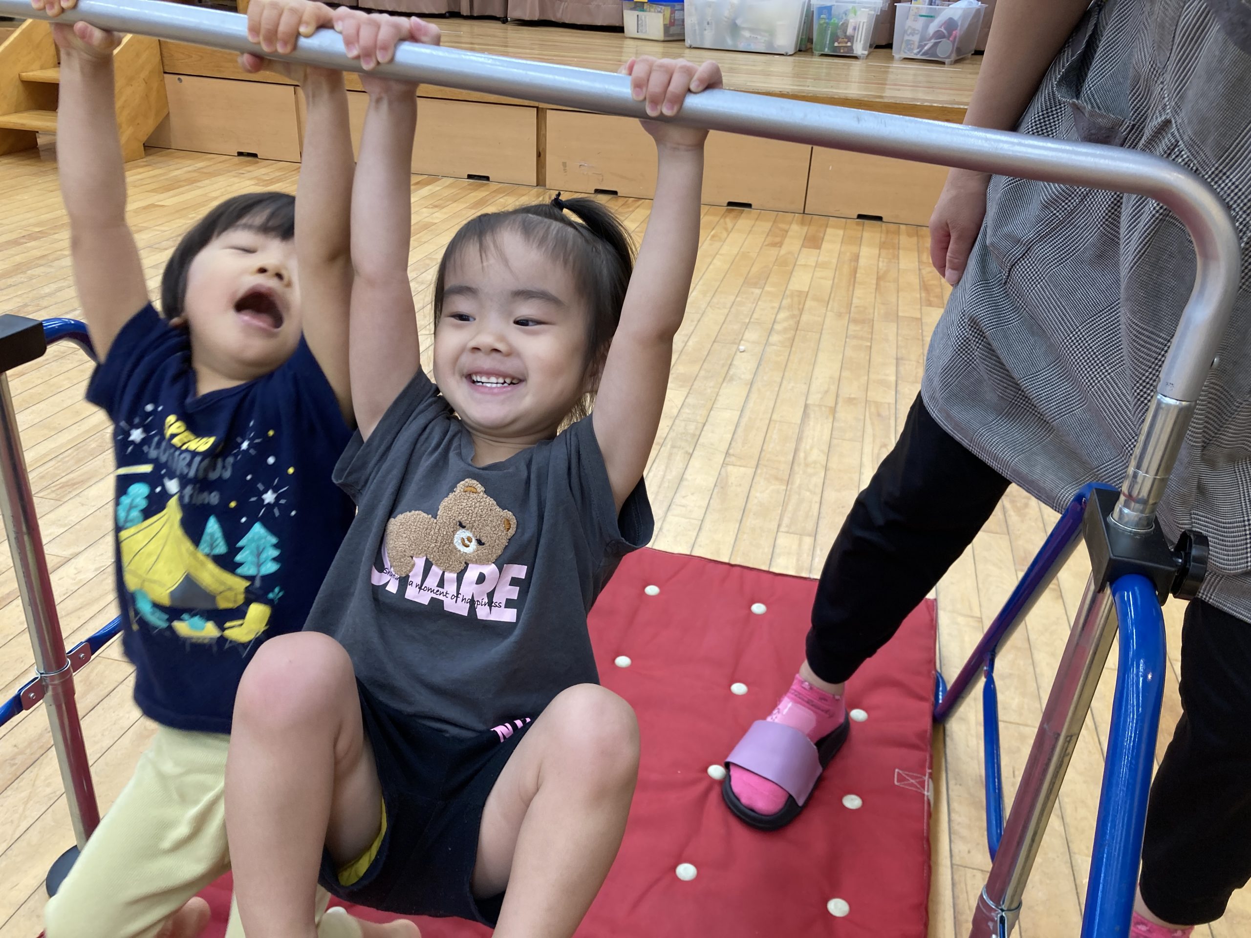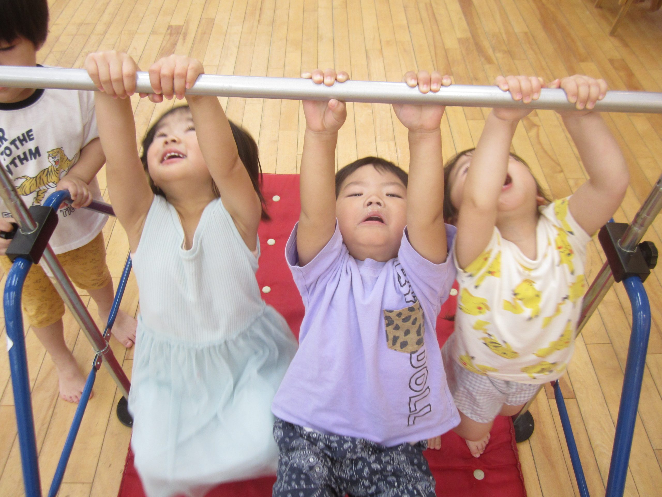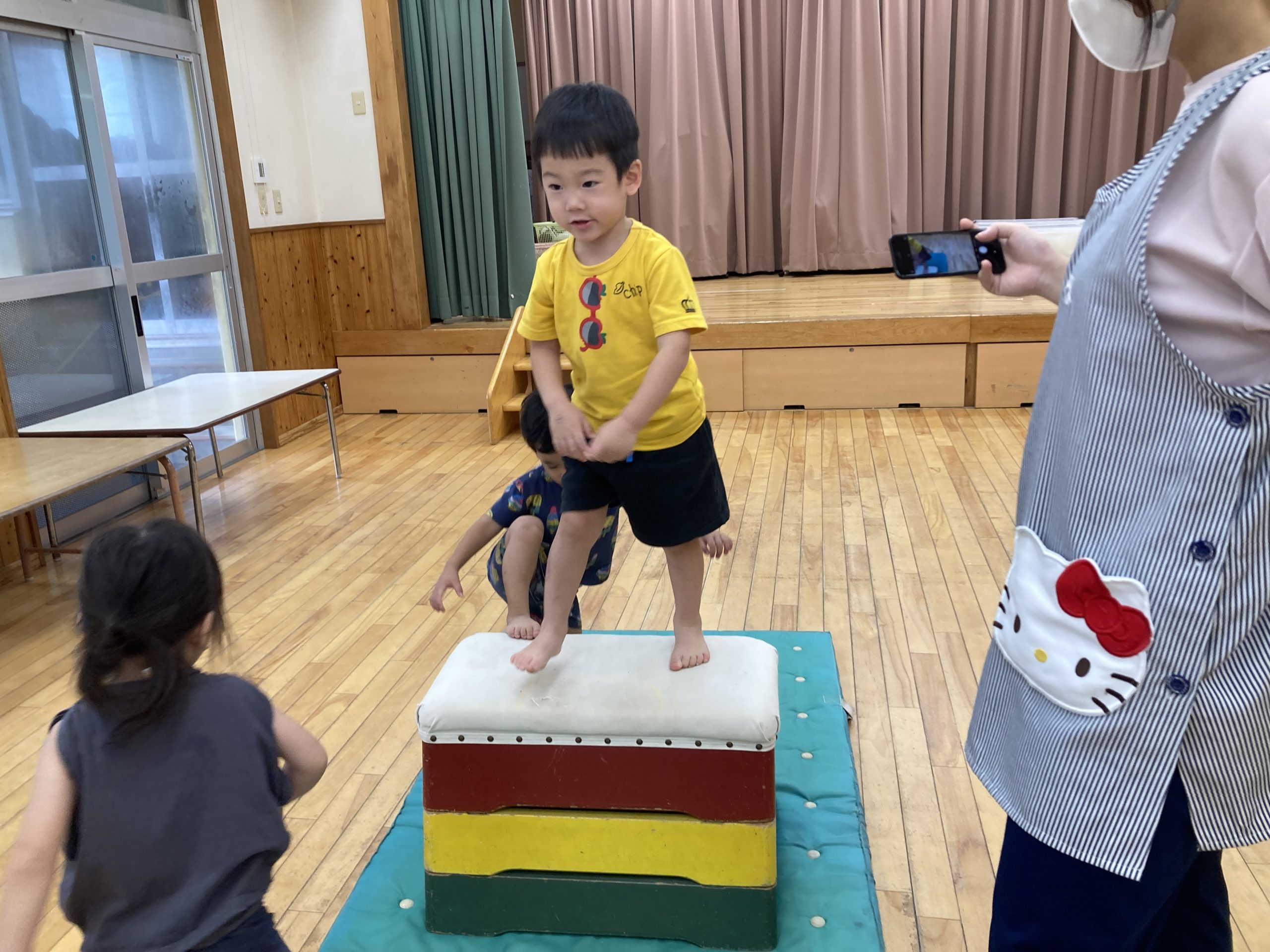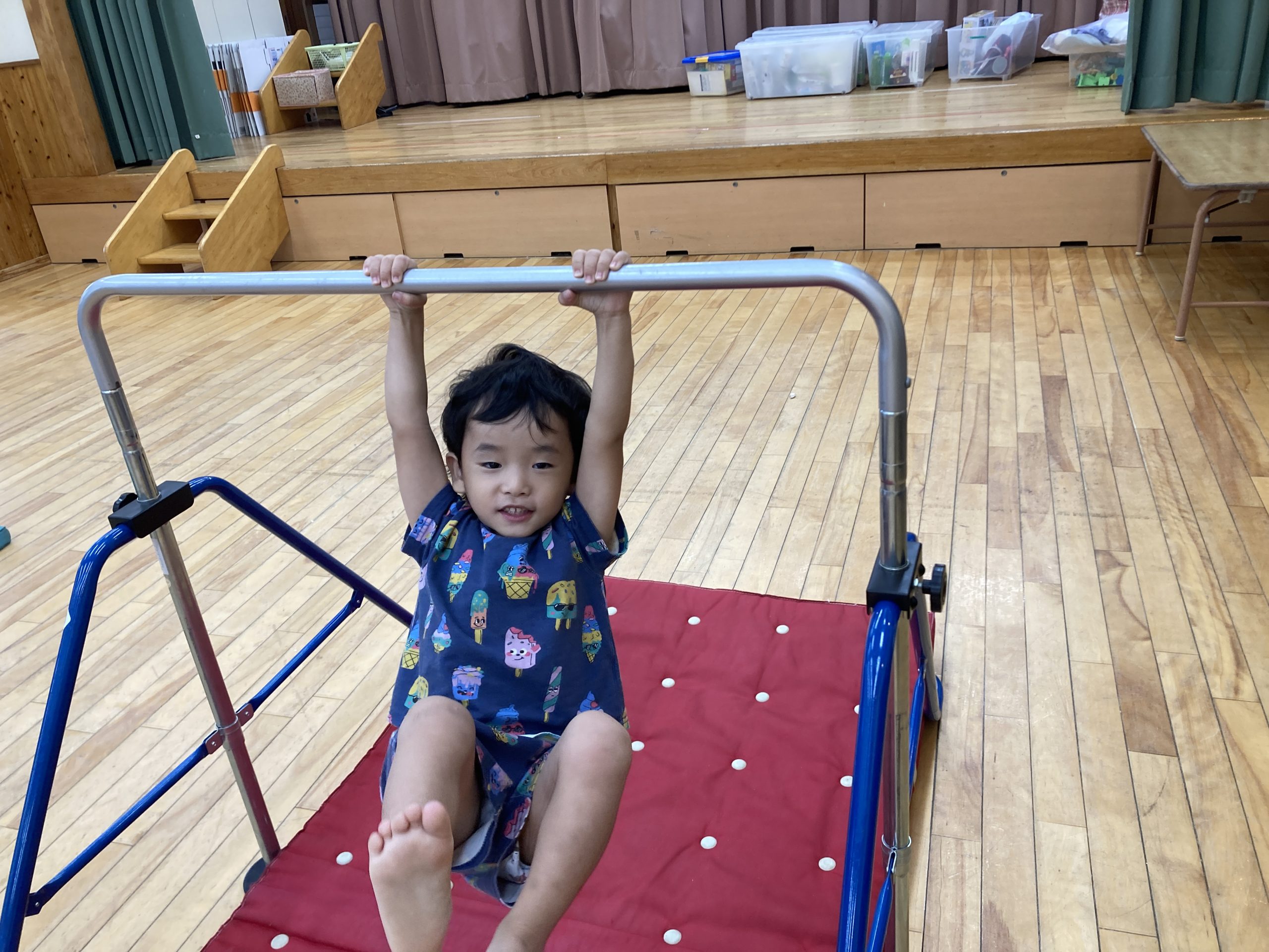 今日は、柳沢運動遊びを行いました⭐鉄棒や3段の跳び箱、平均台に積極的に取り組んでいましたよ~😊🎶