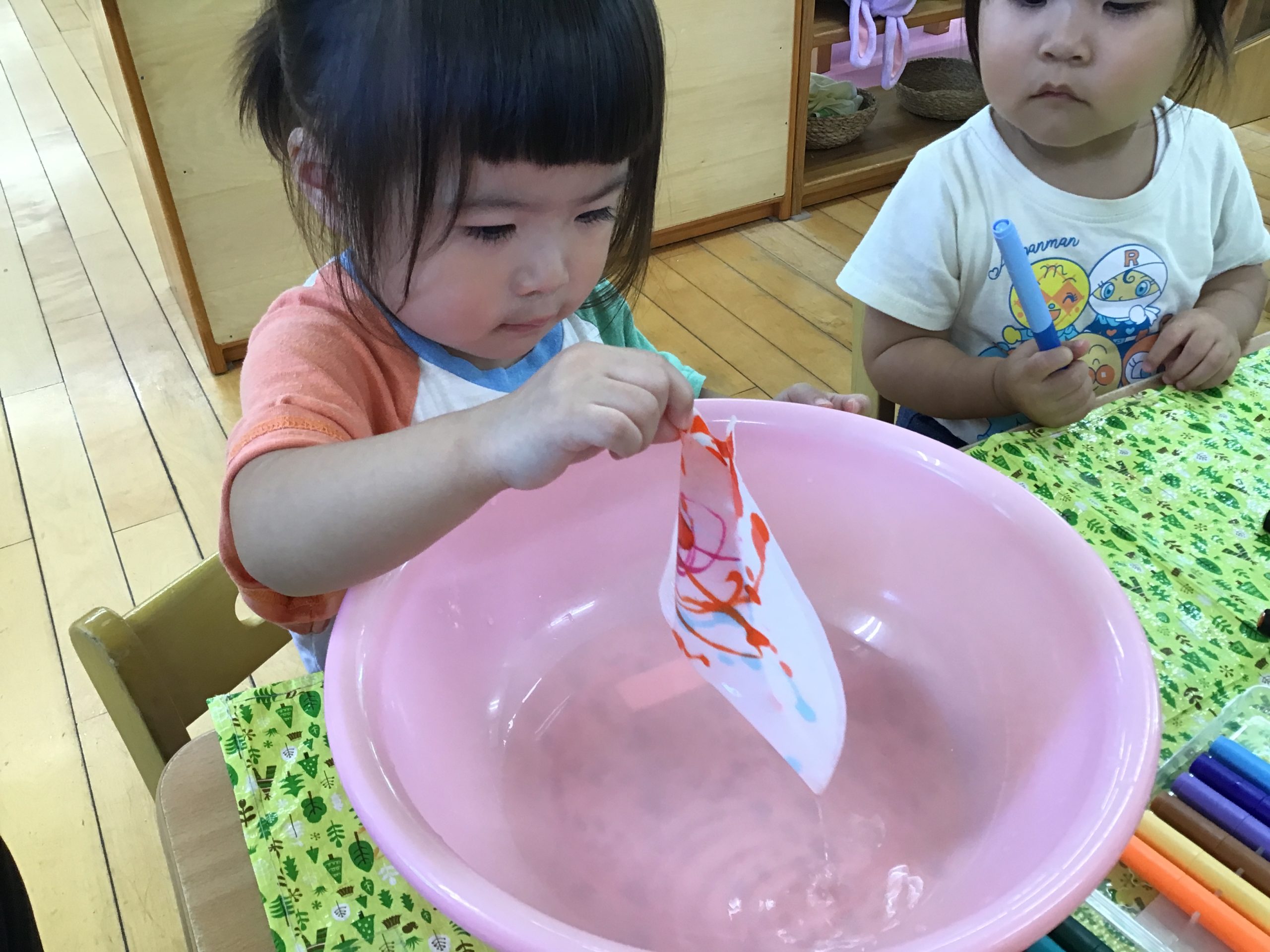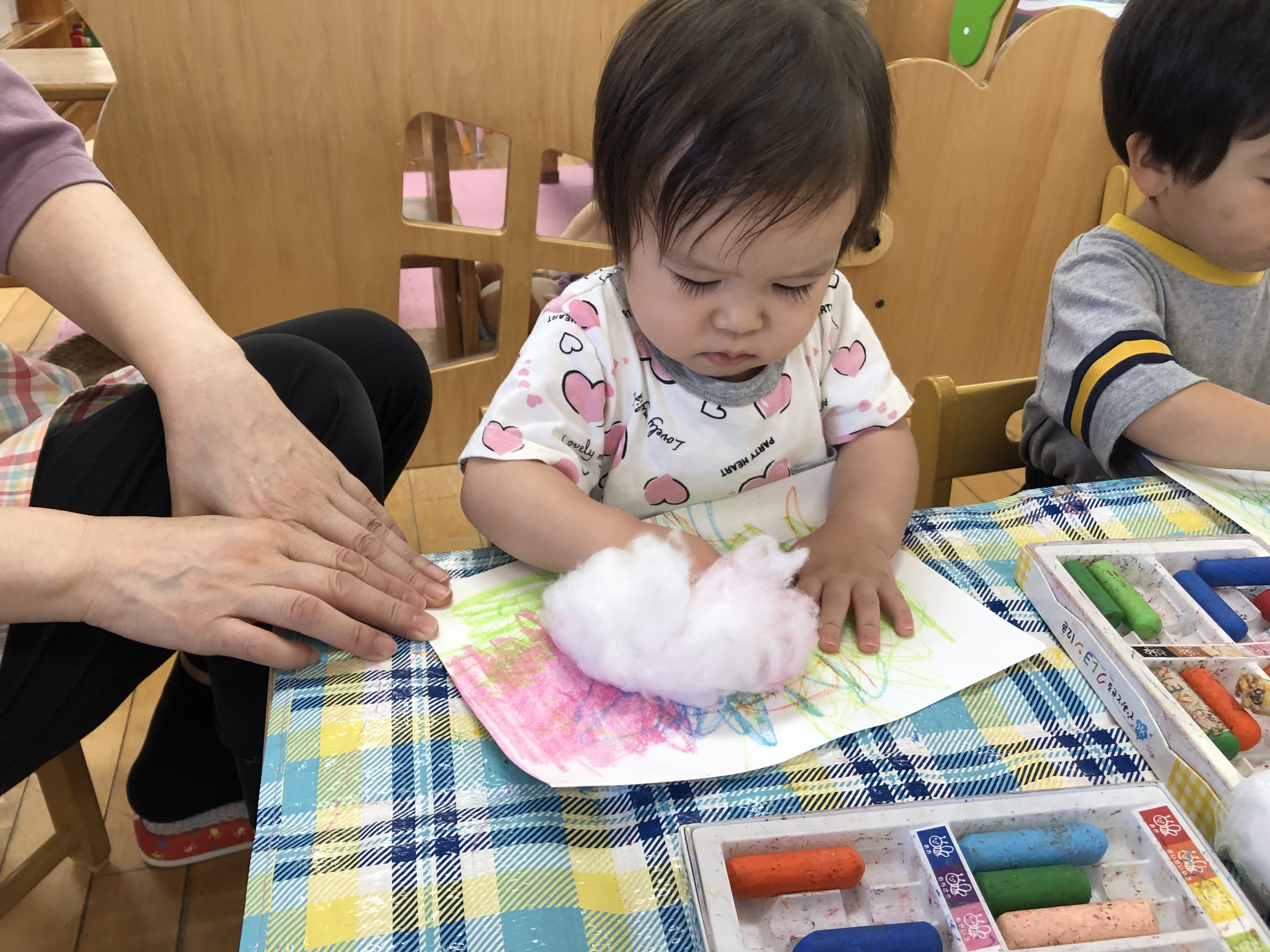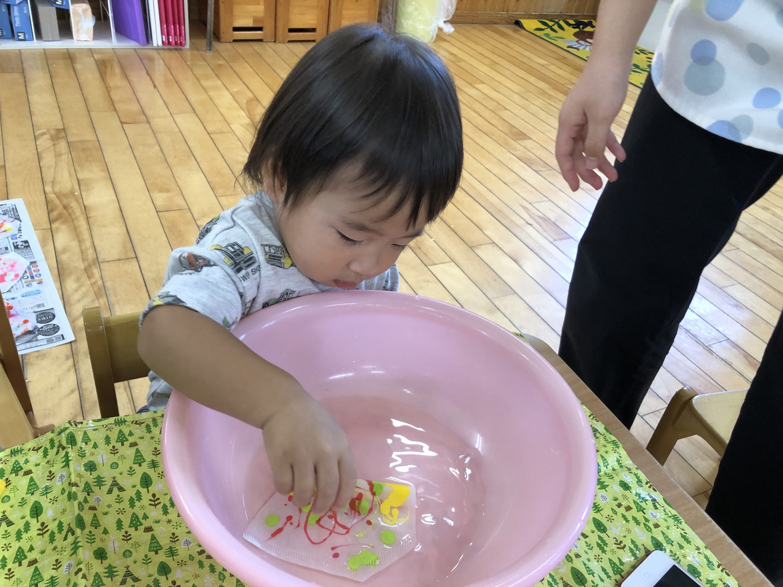 今日は秋祭りごっこの商品の製作をしました!コーヒーフィルターでにじみ絵をしたり、お絵描きをして綿をこすって色をつけたりしましたよ🎵