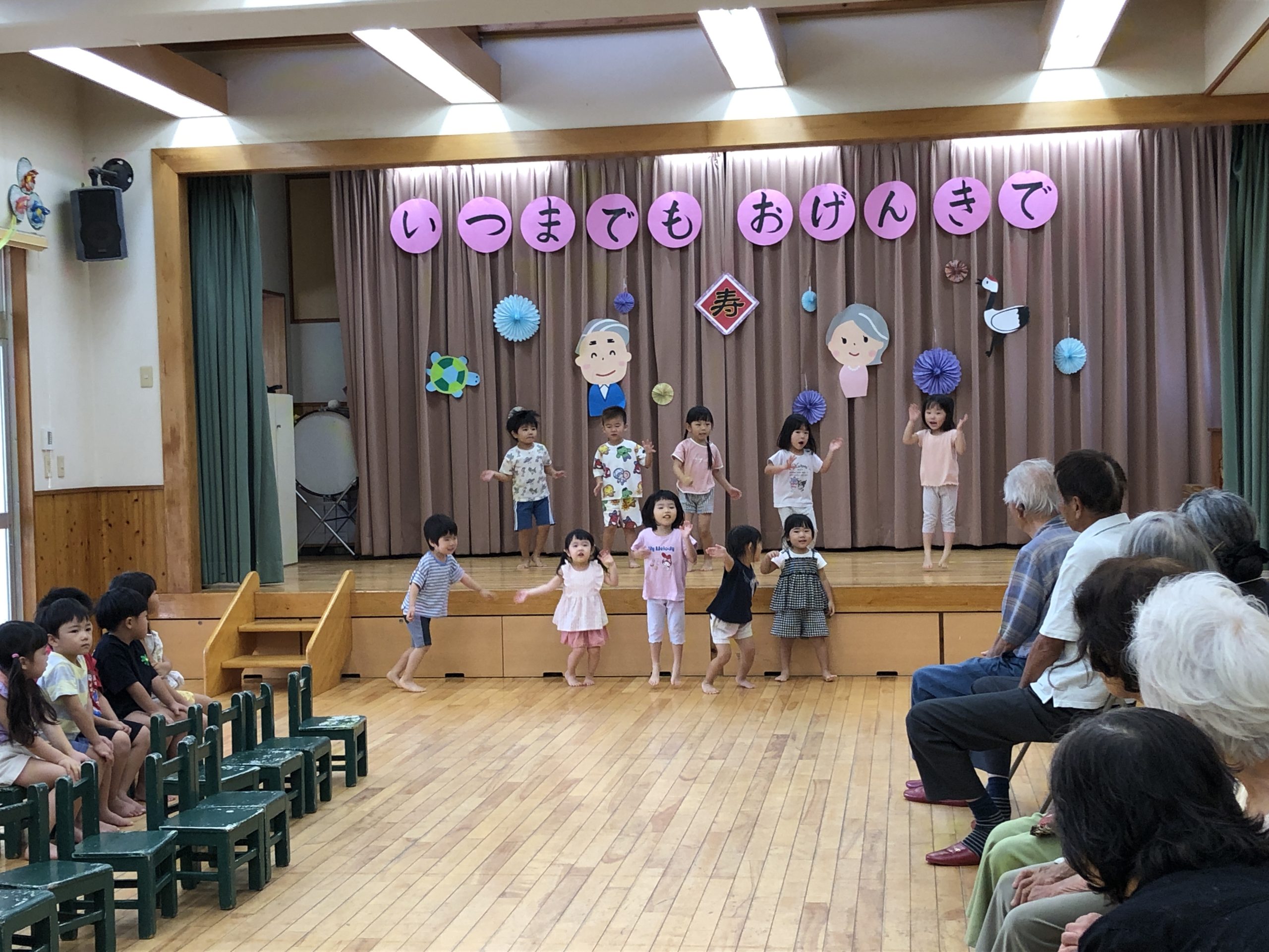 今日は、敬老会に参加しました🌞おじいちゃん・おばあちゃんのお話を聞いたり、ダンス発表をしたりしました!!今まで練習してきた「トロピカーニバル」はみんな恥ずかしがることなく元気いっぱ歌いながら踊り楽しんでいましたよ🎶