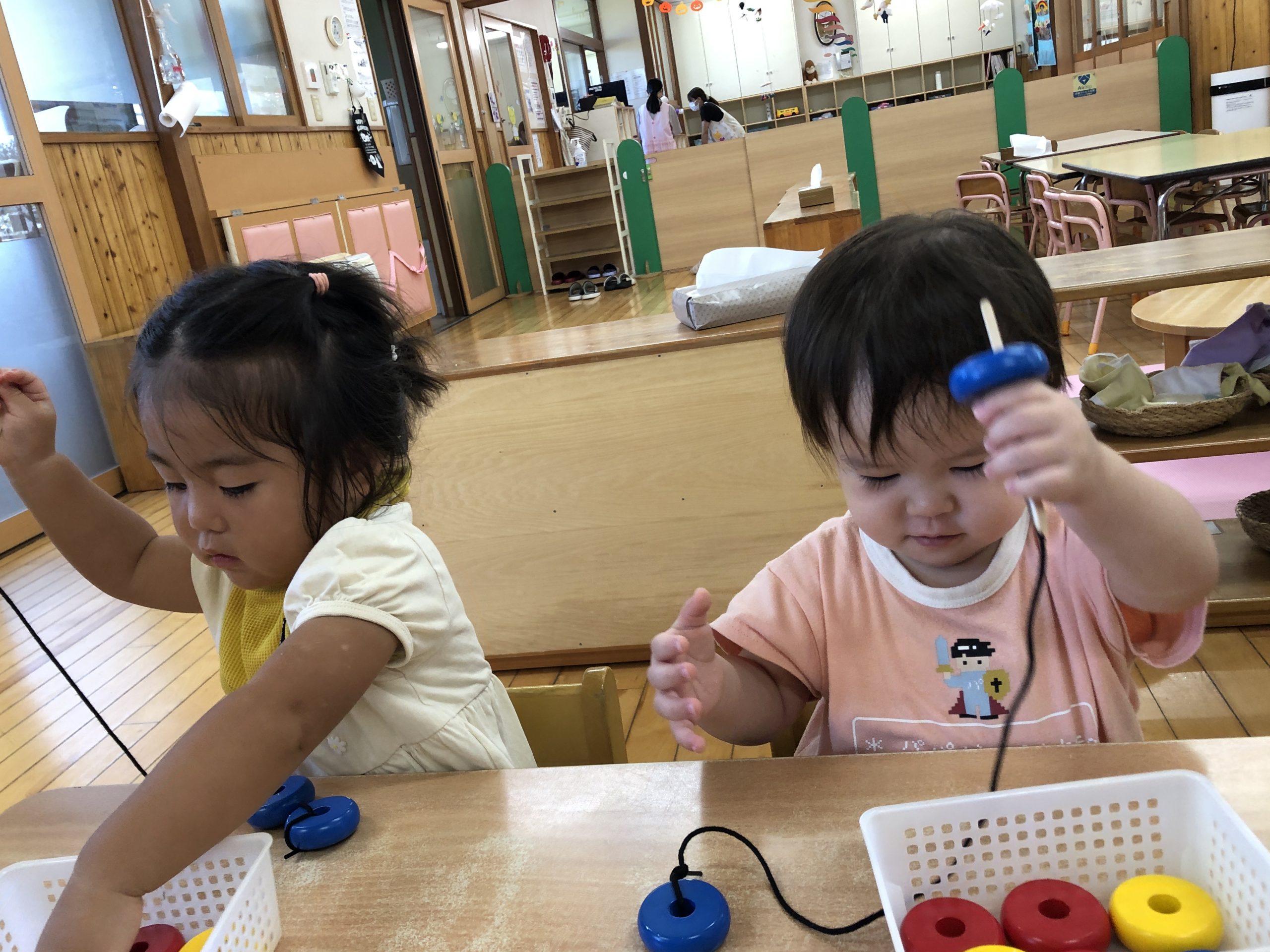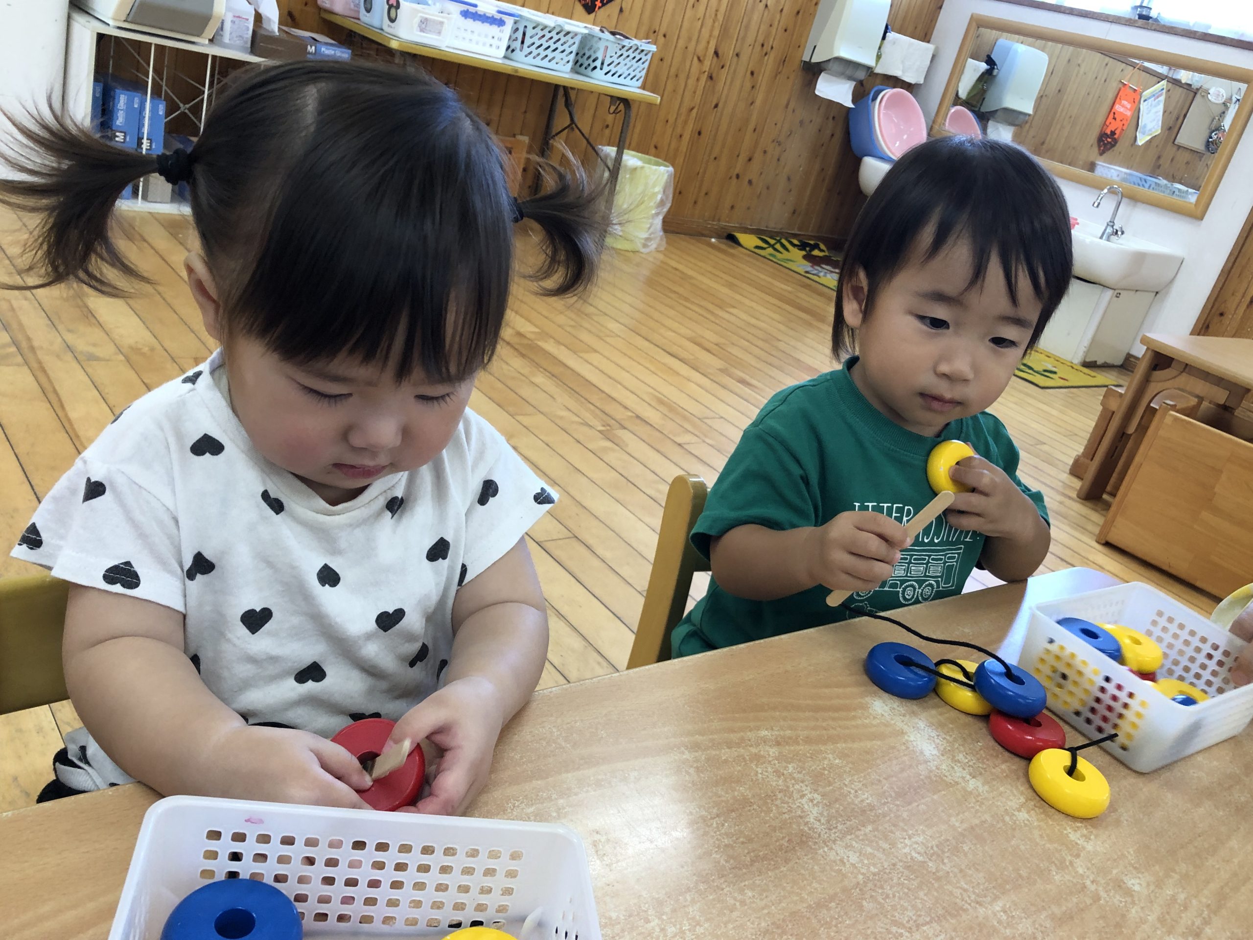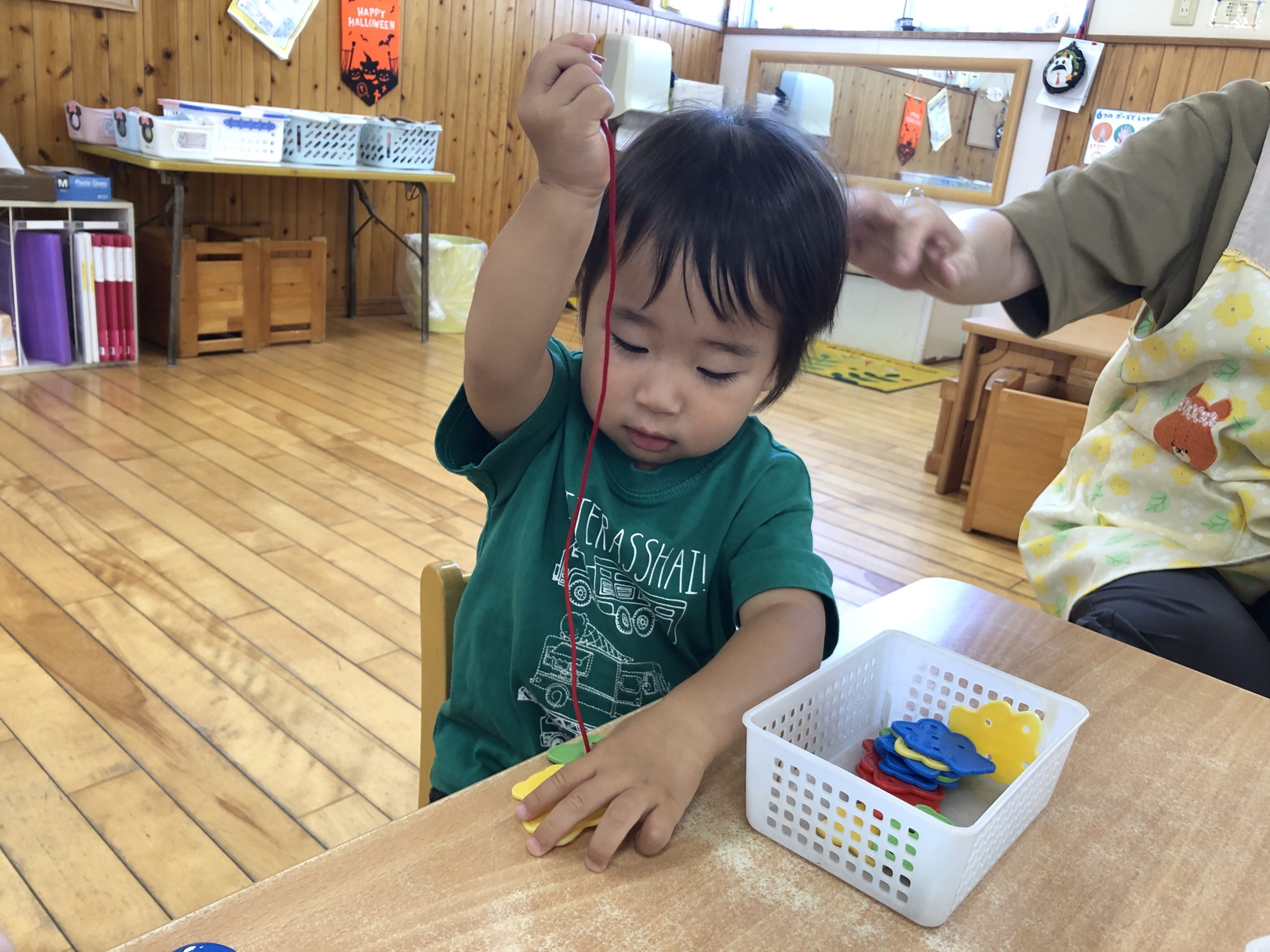 今日はひも通しをしました!みんな自分で上手にひもを通すことができました⭐️