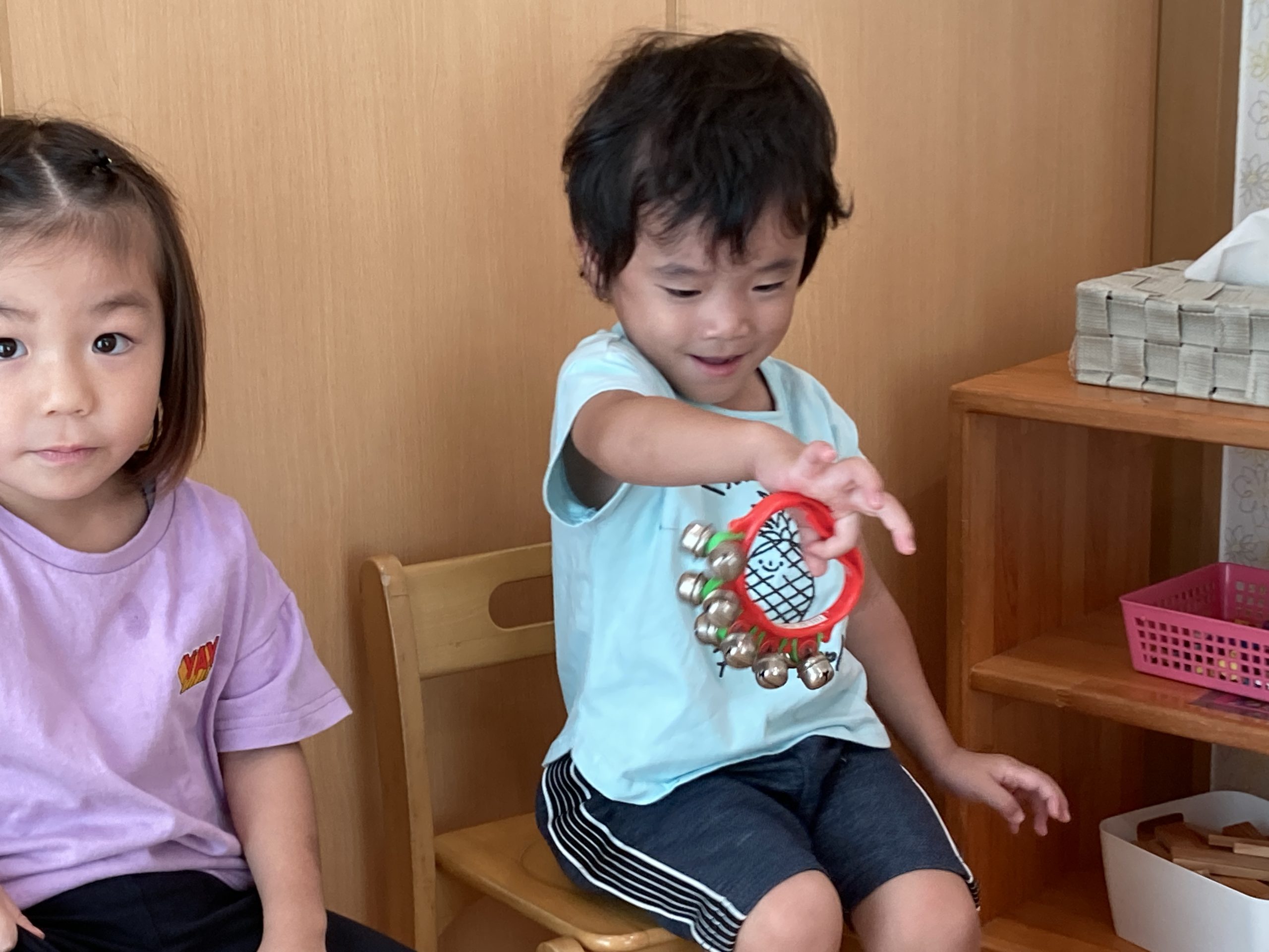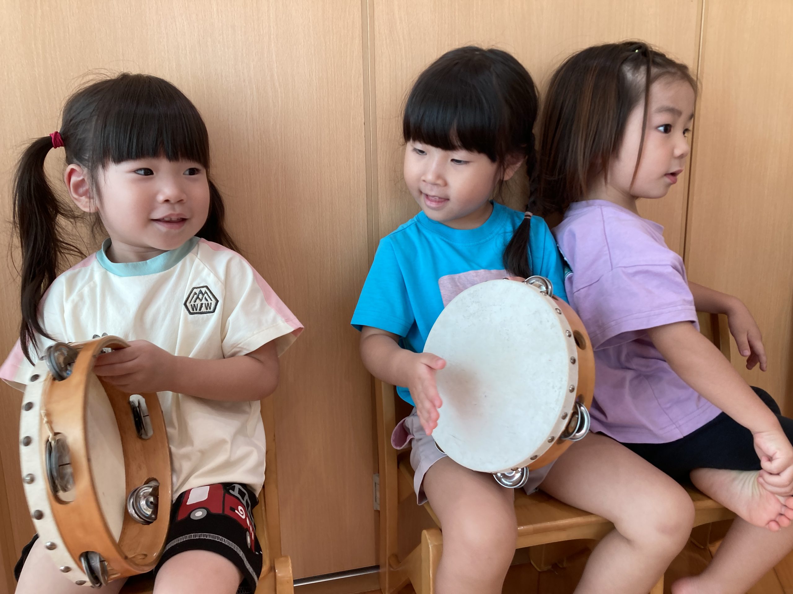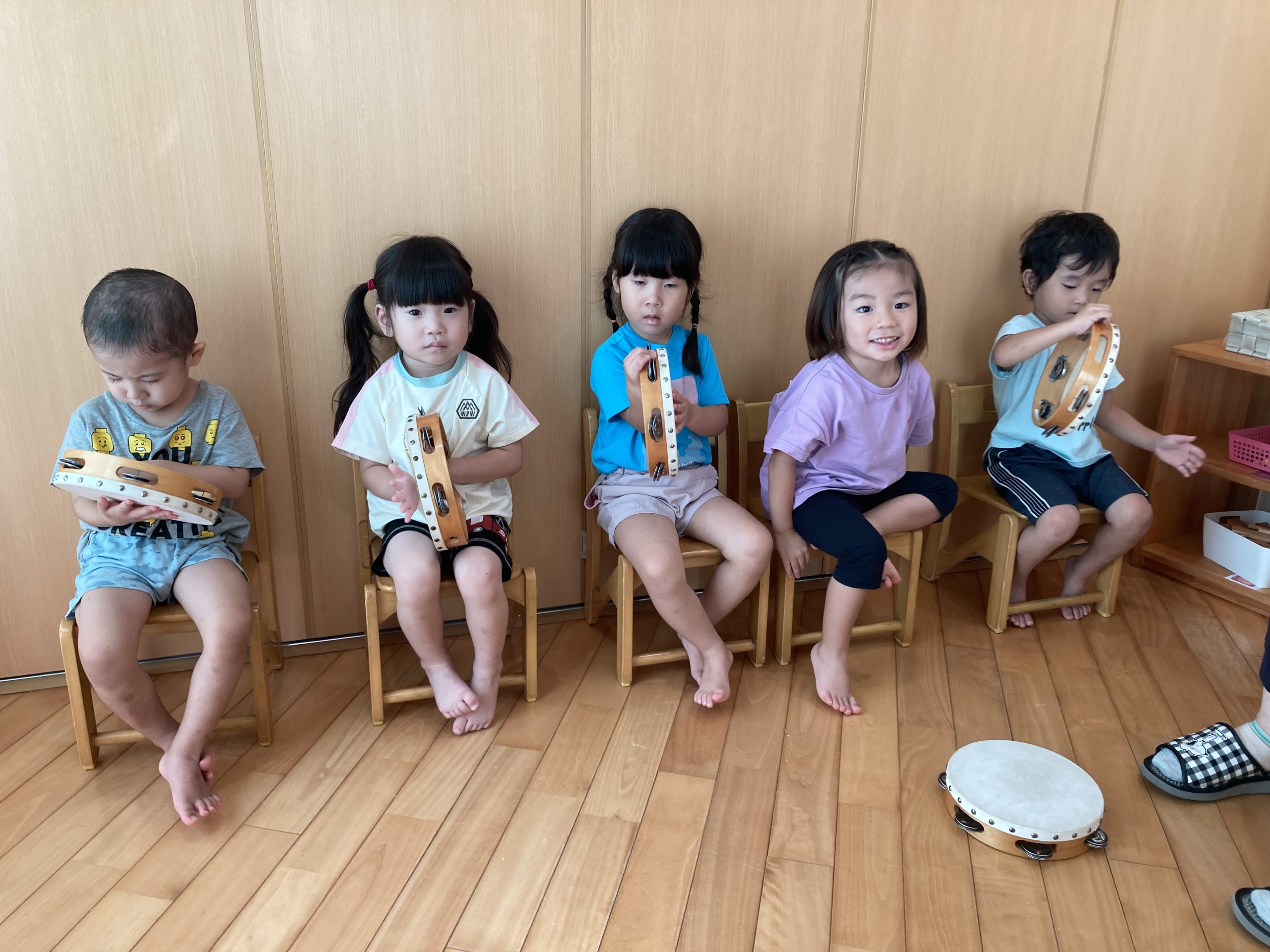 今日は、楽器あそびをしました🎶3拍子でタンバリンを叩く練習をしました!保育者と一緒に上手に叩くことができていましたよ✨