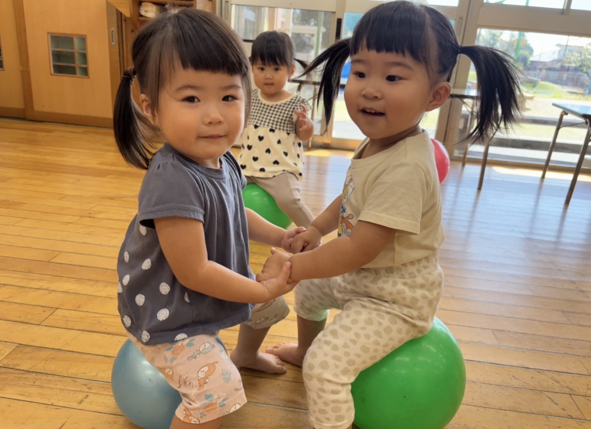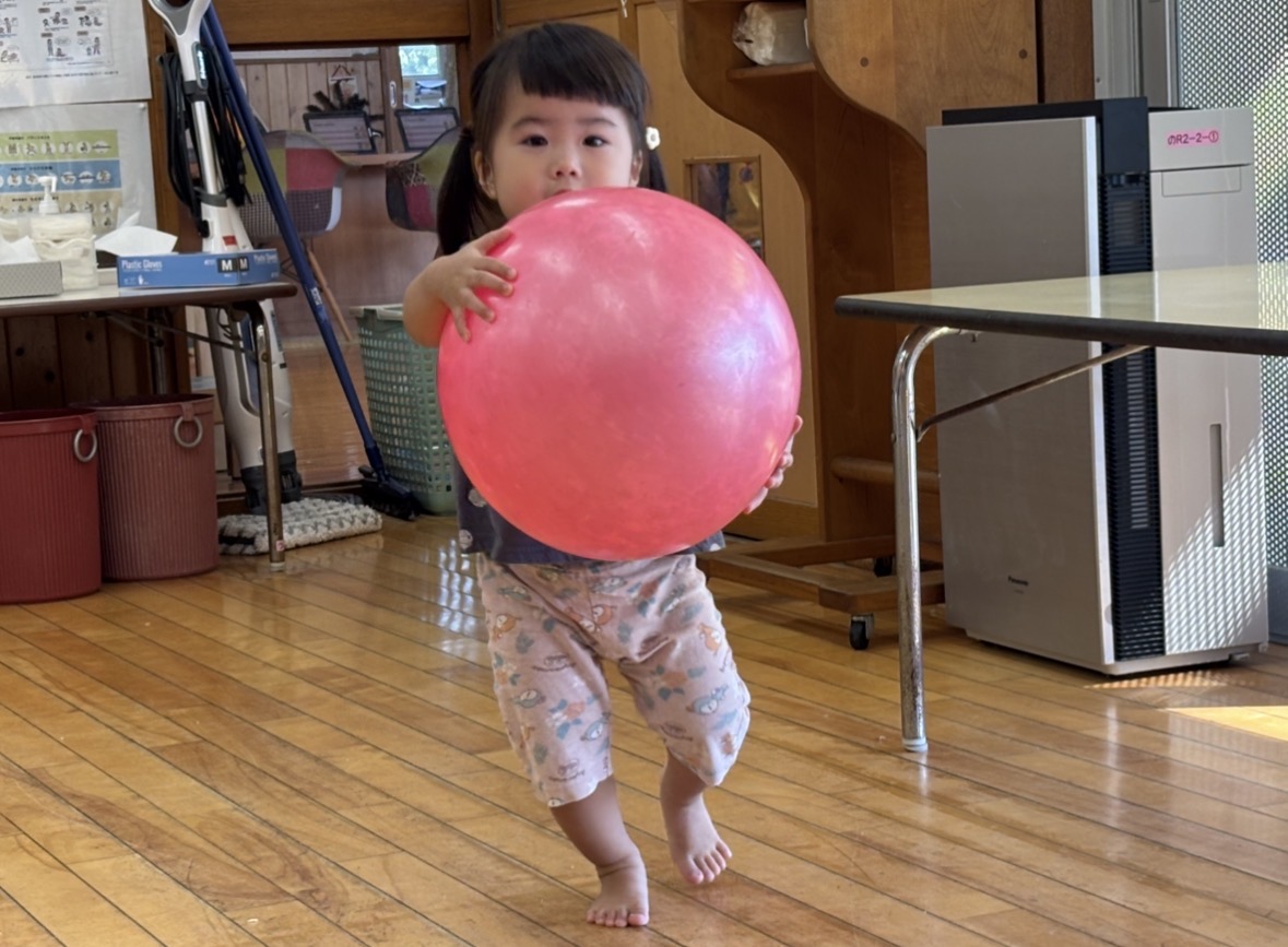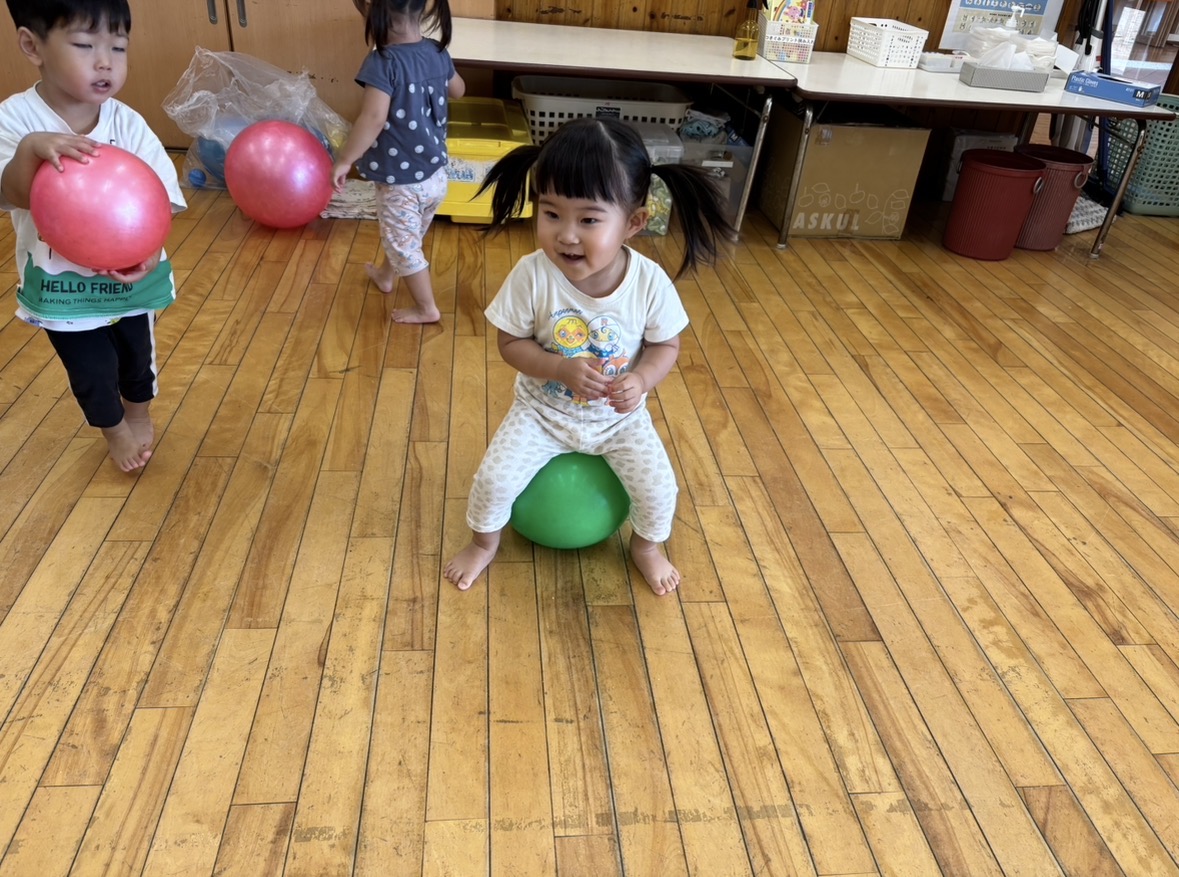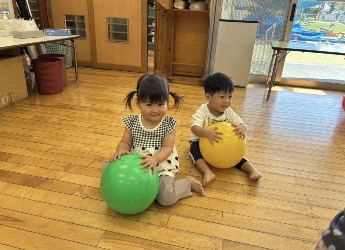 今日は、ボール遊びをしました✨転がしたり、ボールの上に乗ったりして楽しんでいましたよ😊