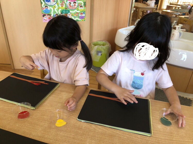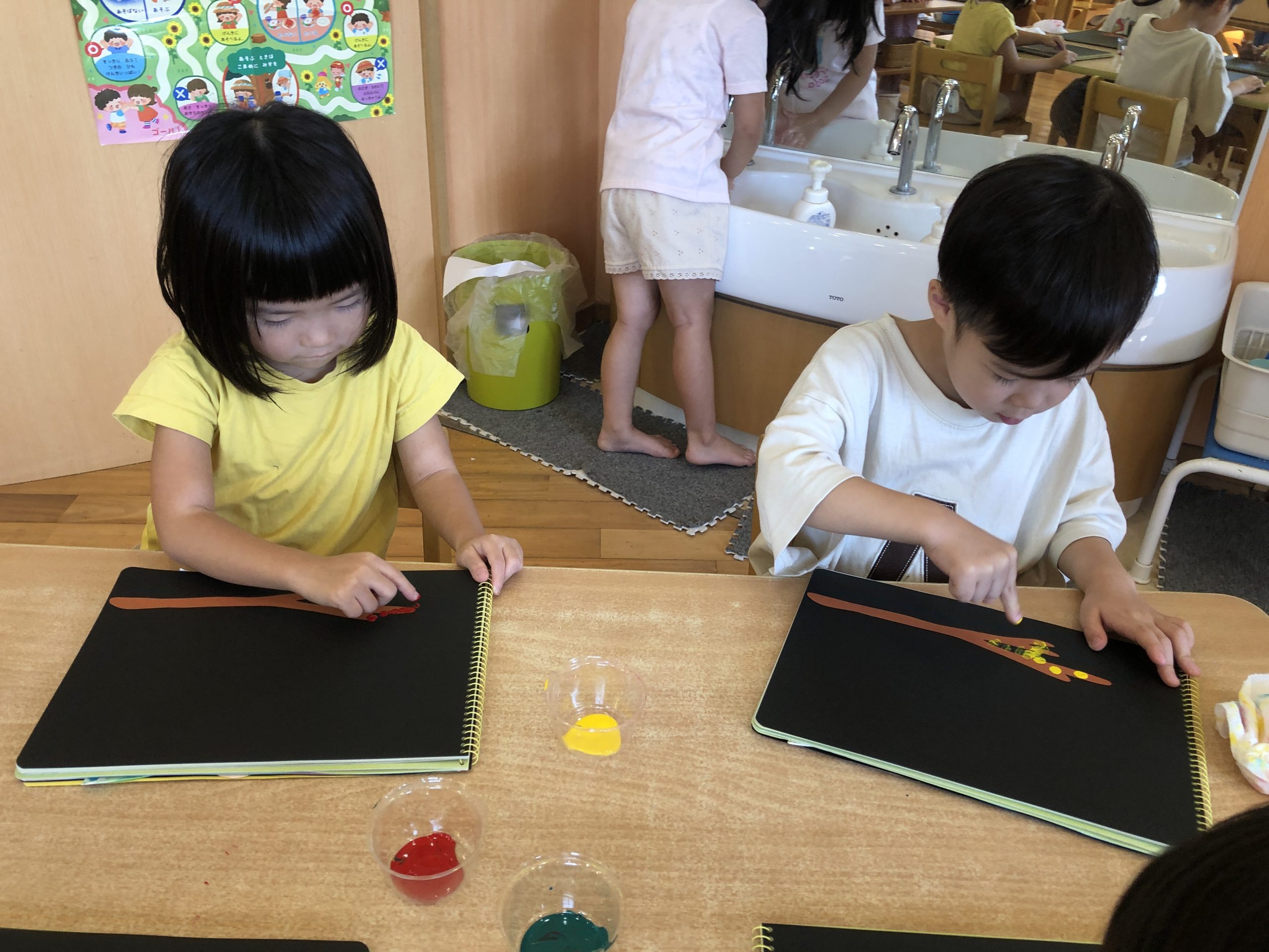 今日は、ふくろうの製作の続きをしました🦉指でスタンプしたり、葉っぱの形を作ったりとそれぞれ違った仕方で、ふくろうが止まる枝に葉っぱを付けていましたよ🌱