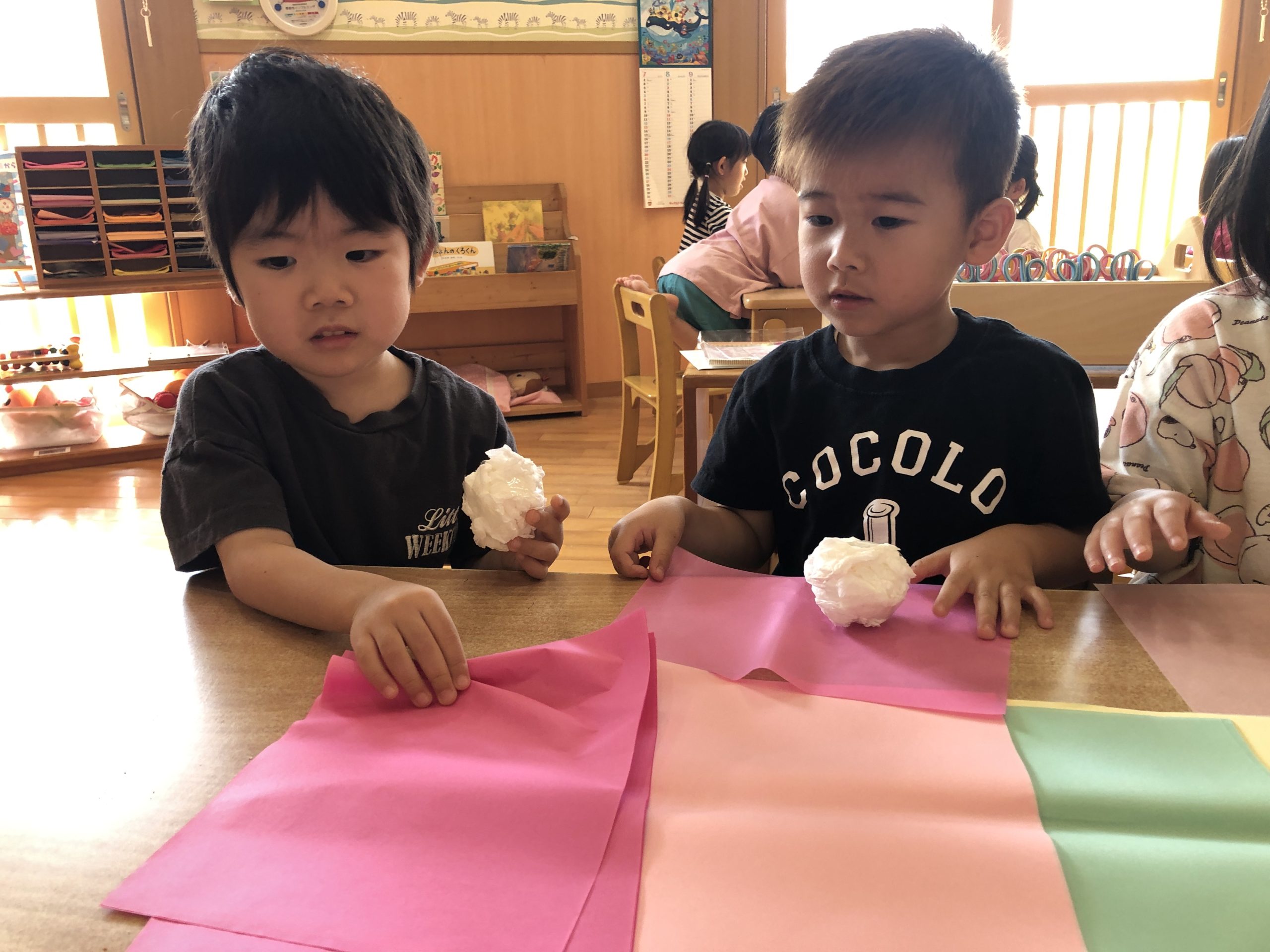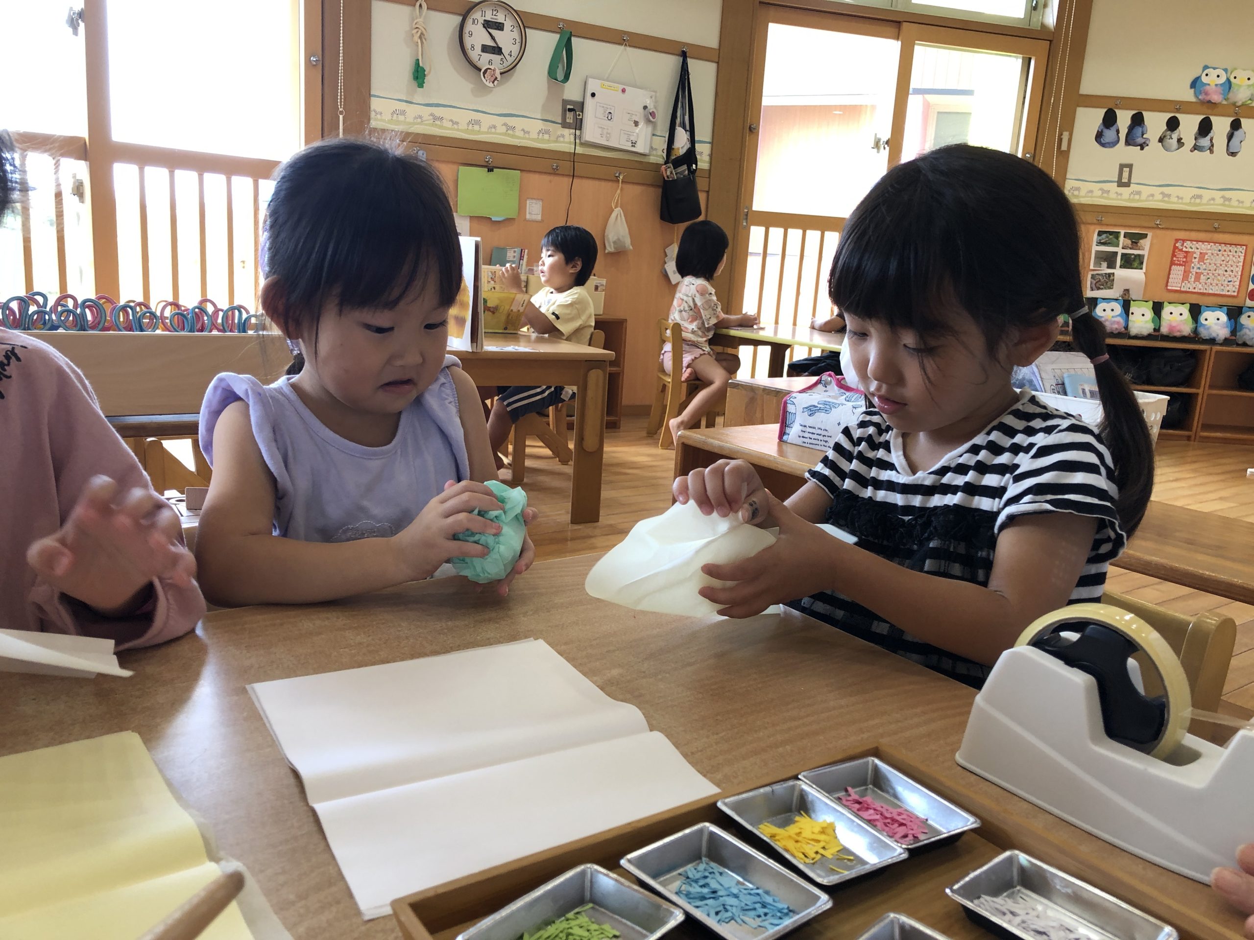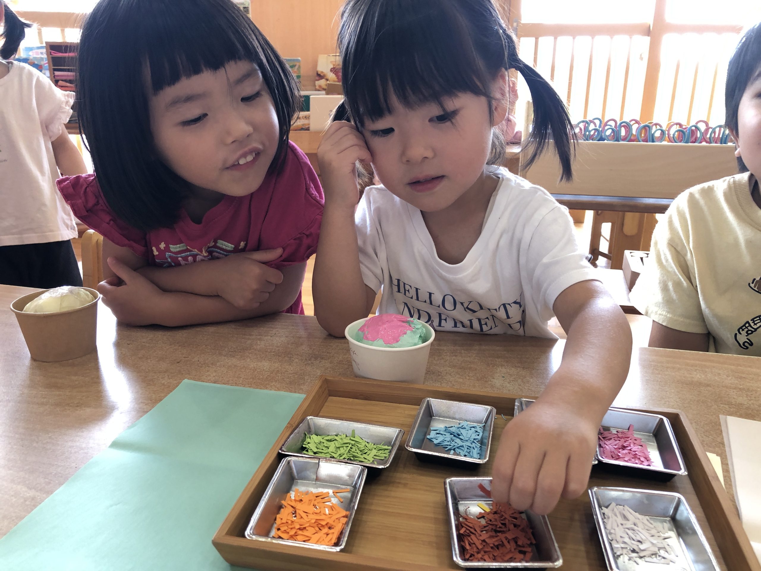 今日は、秋祭りごっこ商品のアイスクリームを作りました🍨好きな色のお花がみやトッピングを自分で選びオリジナルアイスが完成しましたよ💖