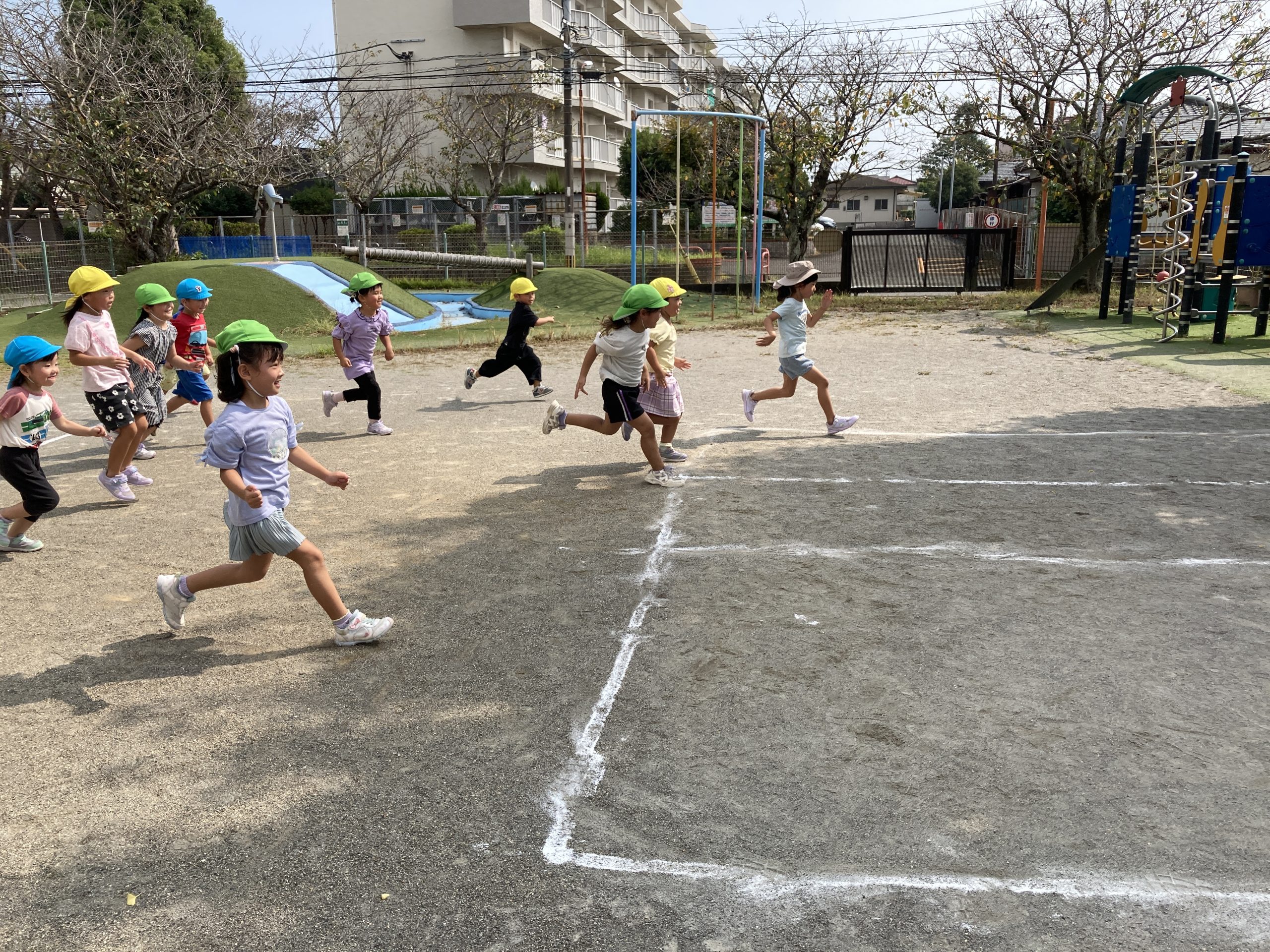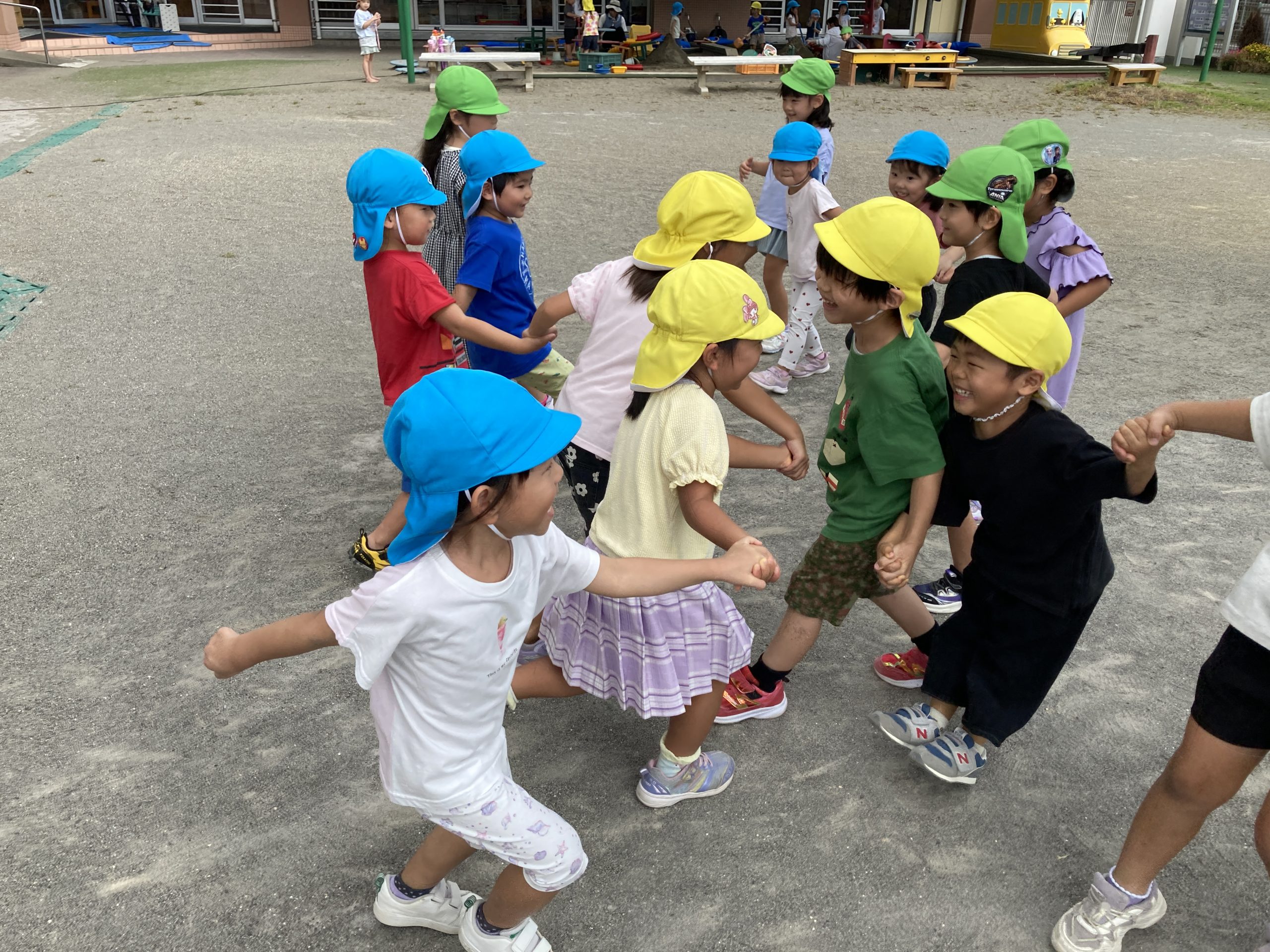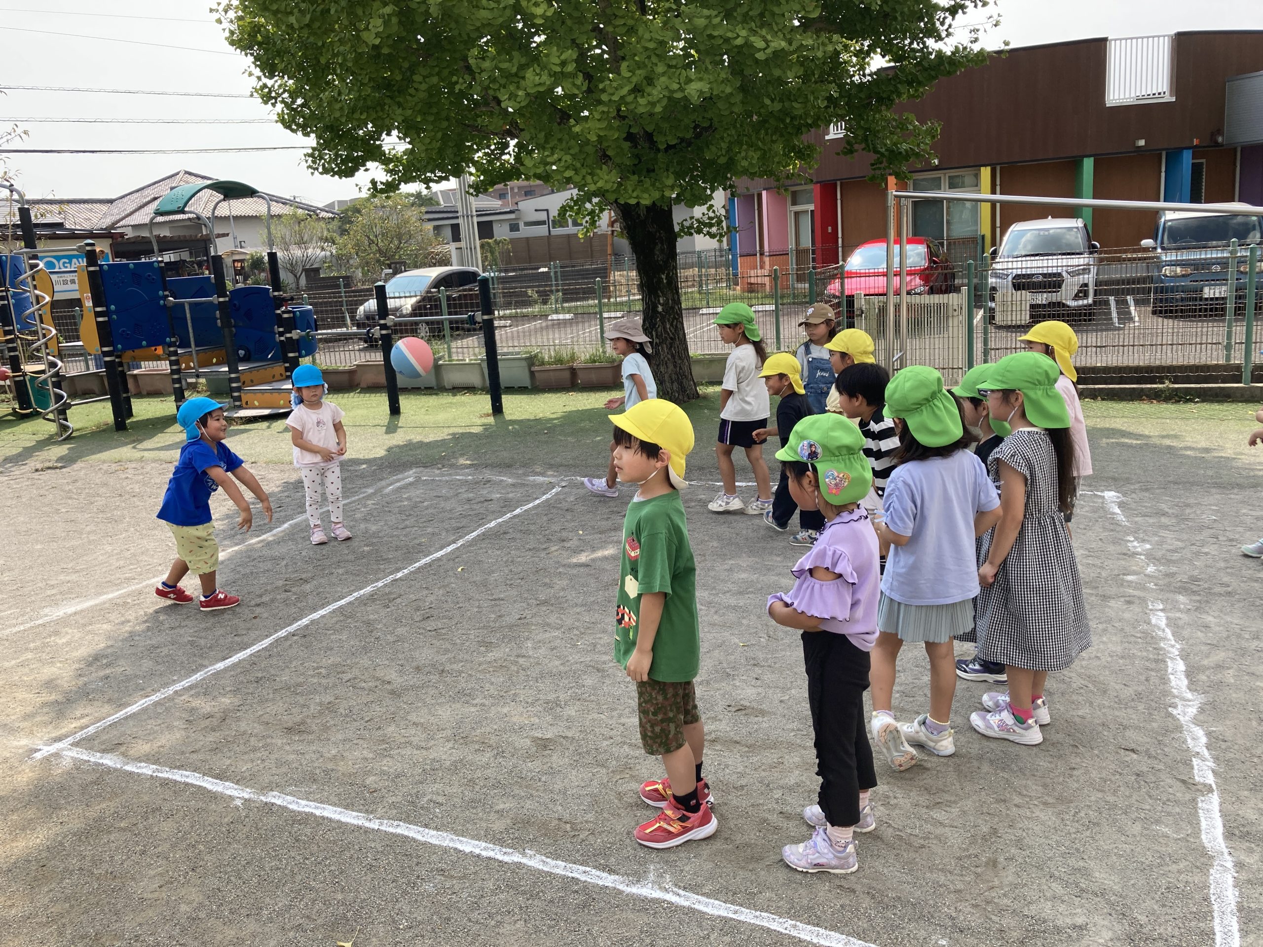 今日は、異年齢グループで戸外遊びをしました。花いちもんめ、中当て、だるまさんがころんだをしました。花いちもんめは、初めてでしたが、ルールが分かると面白かったようで、もう一回したいと言う声があがりました。