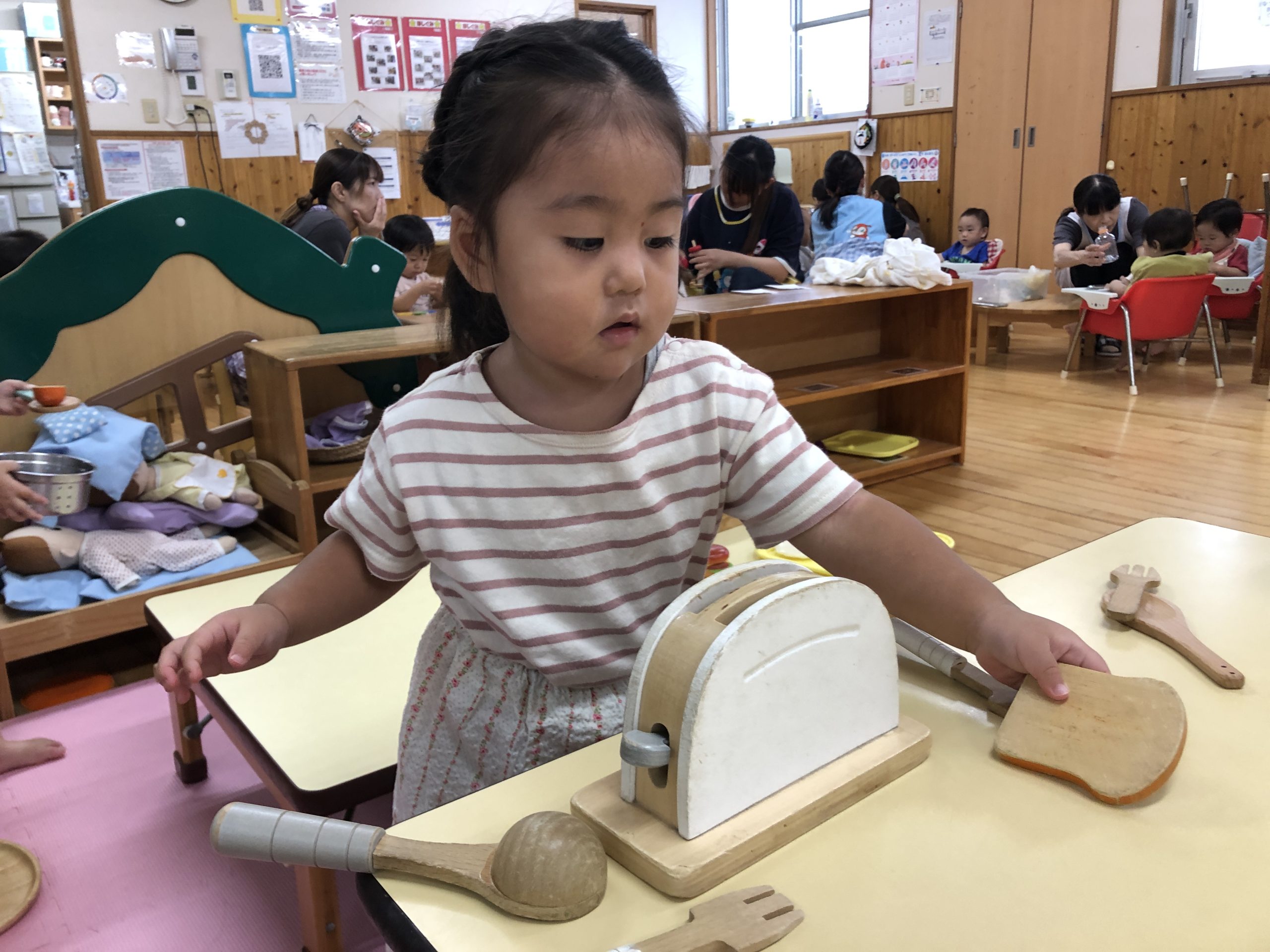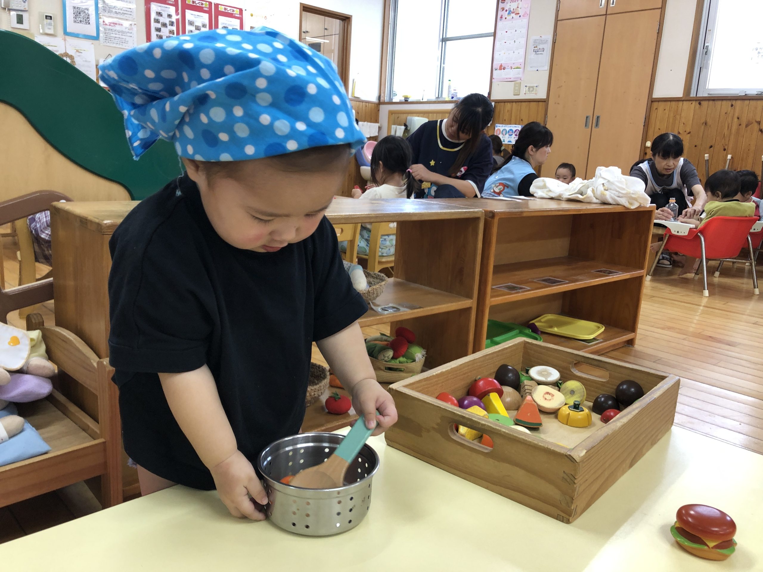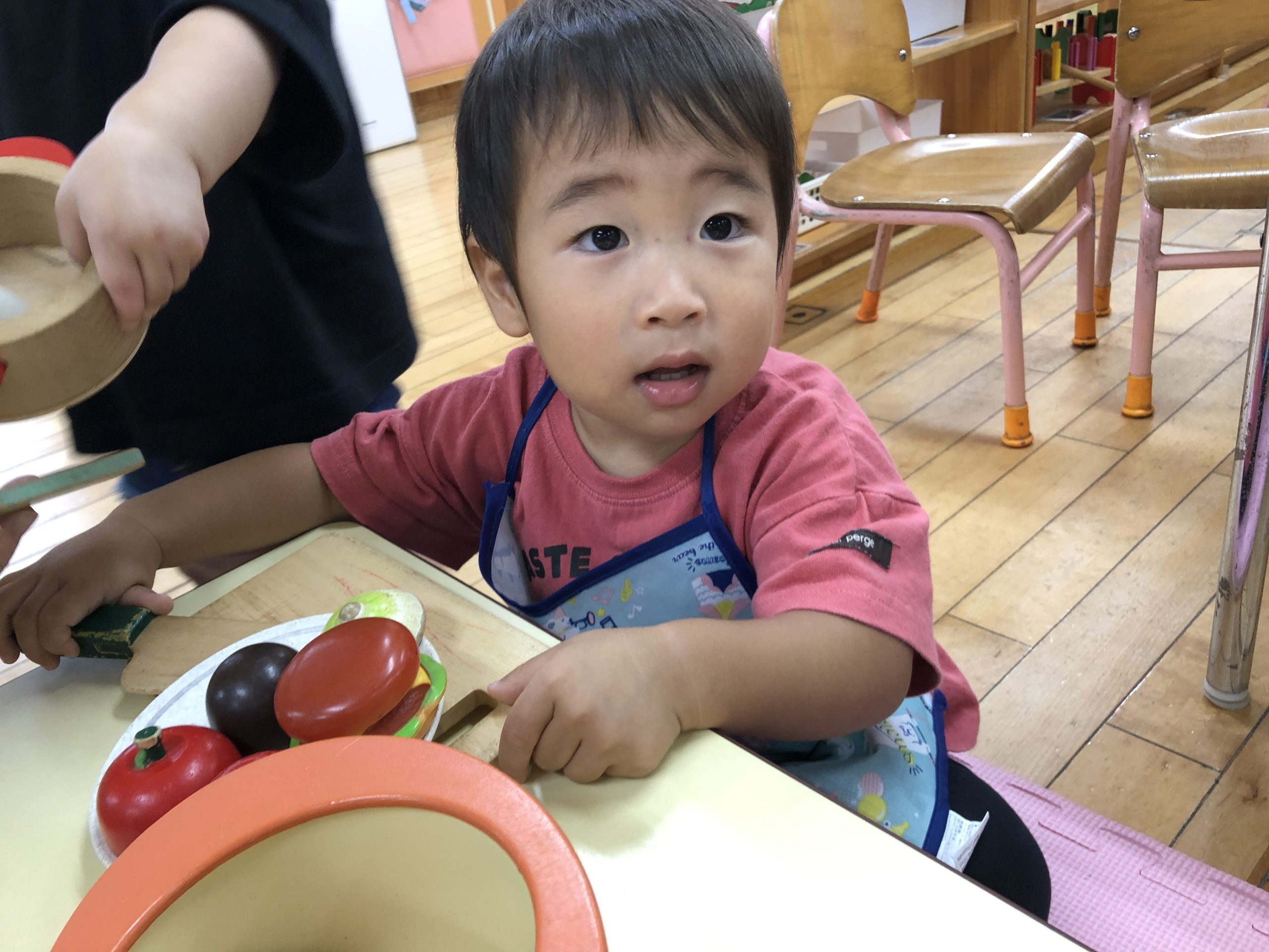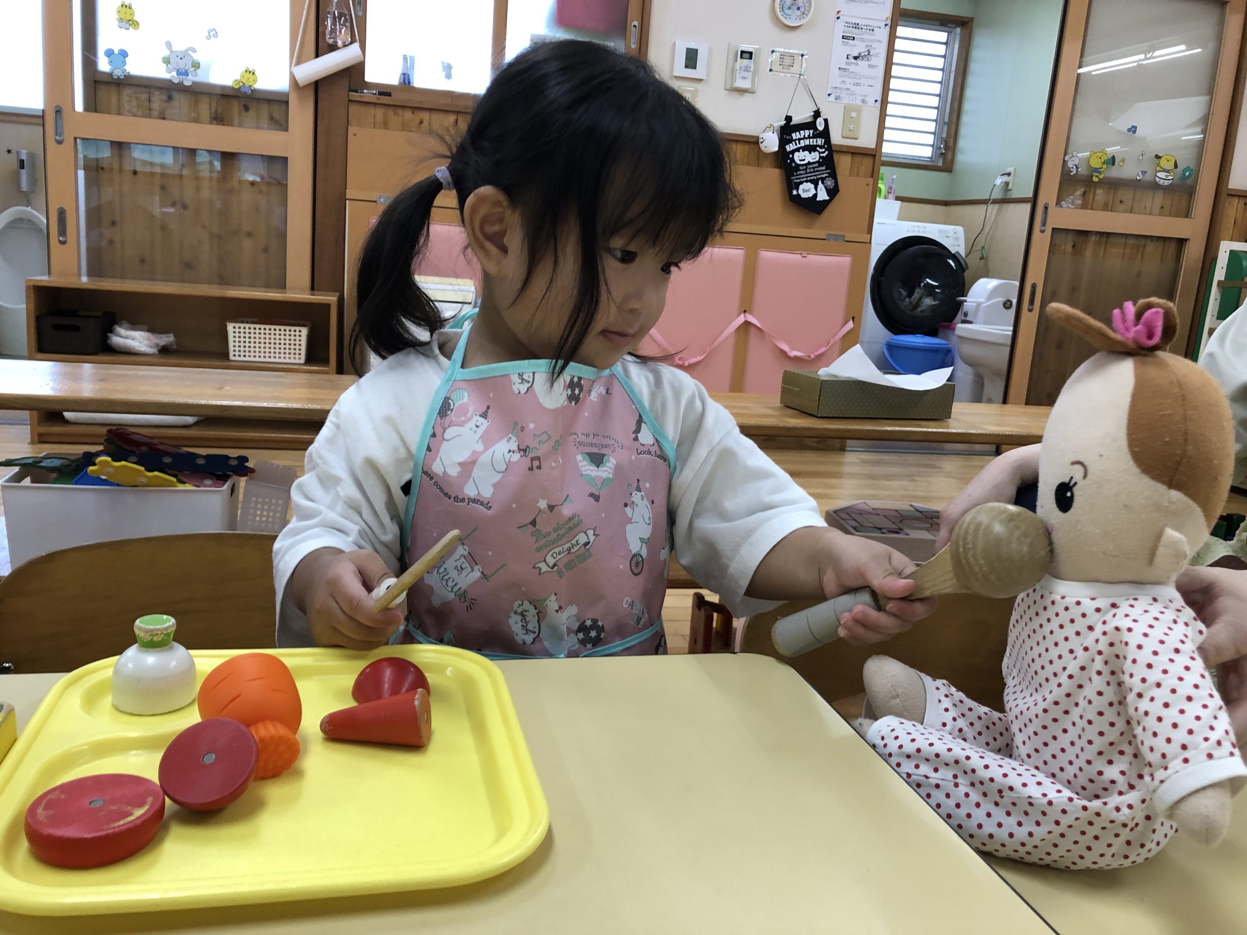 今日はおままごとをしました🍳エプロンを着て赤ちゃんのお世話をしたり、ご飯作ったりして楽しそうに遊んでいましたよ✨