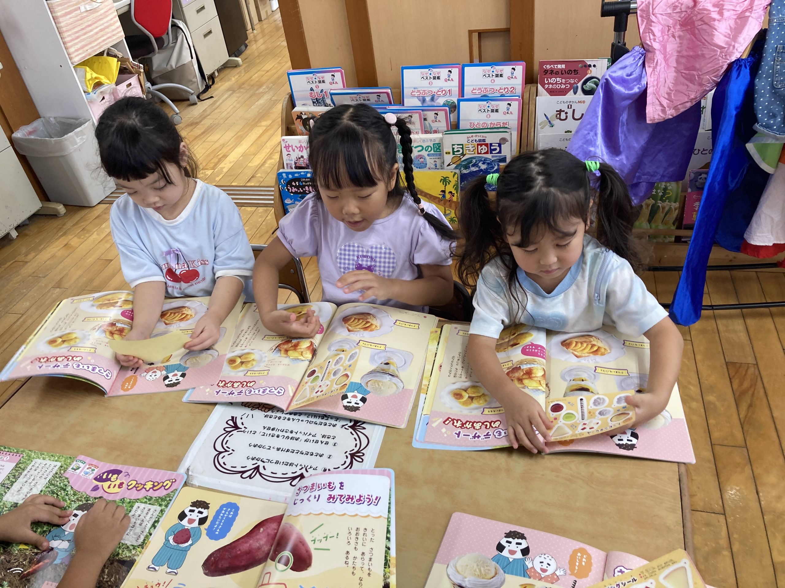 今日は月刊絵本を見ました。さつまいもクッキングが載っていて、今度りすぐみさんもクッキングをすることを伝えるとお友達と何を作りたいか話して楽しみにしていました🍠