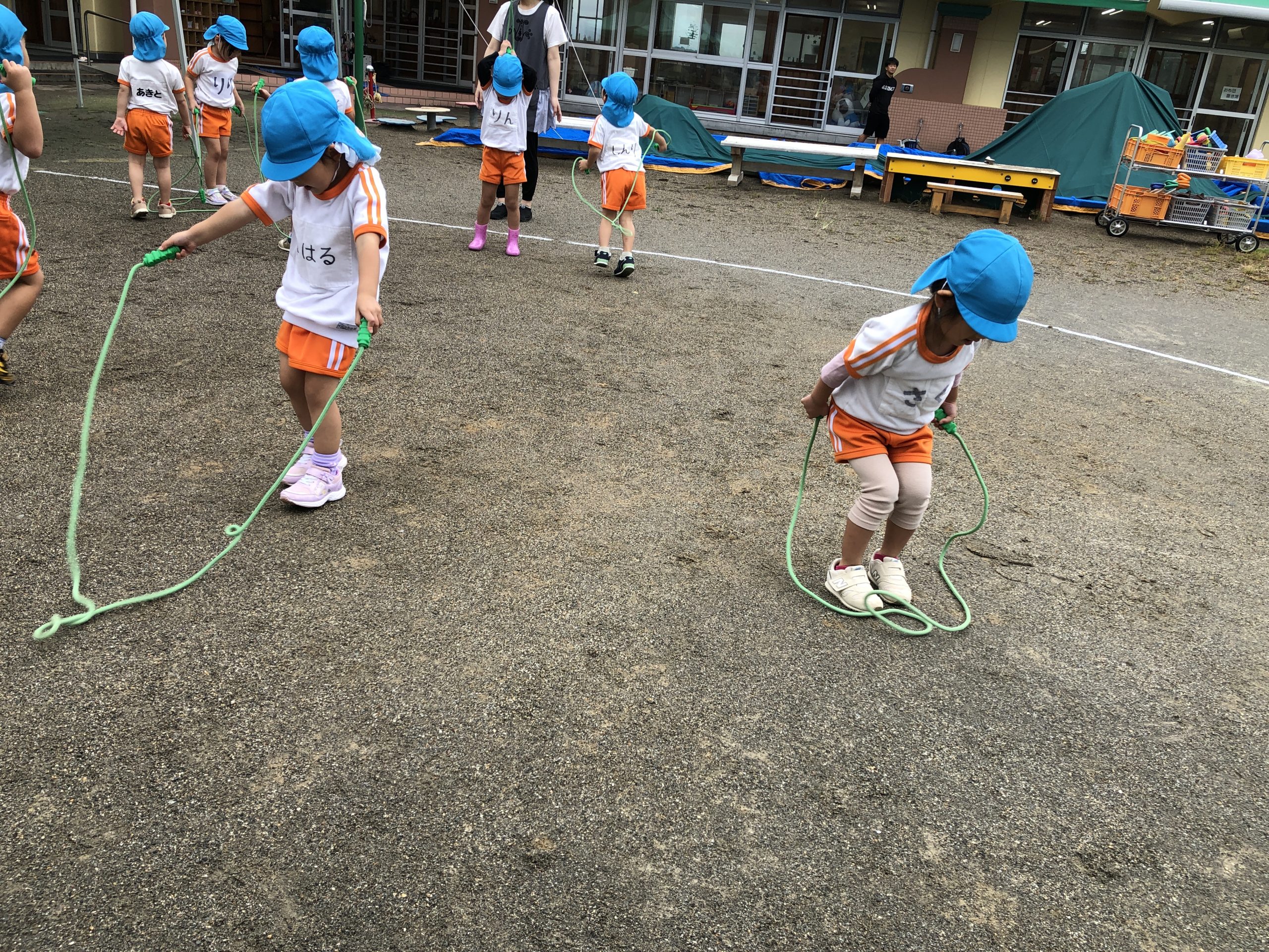 今日の体育遊びでは縄跳びやフラフープやボール投げをしました!!10月から取り組んでいる縄跳びでは、少しづつ上手になり溝内先生に褒められ嬉しそうなつきぐみさんたちです🎶いろんな運動に頑張って取り組んでいました🌟