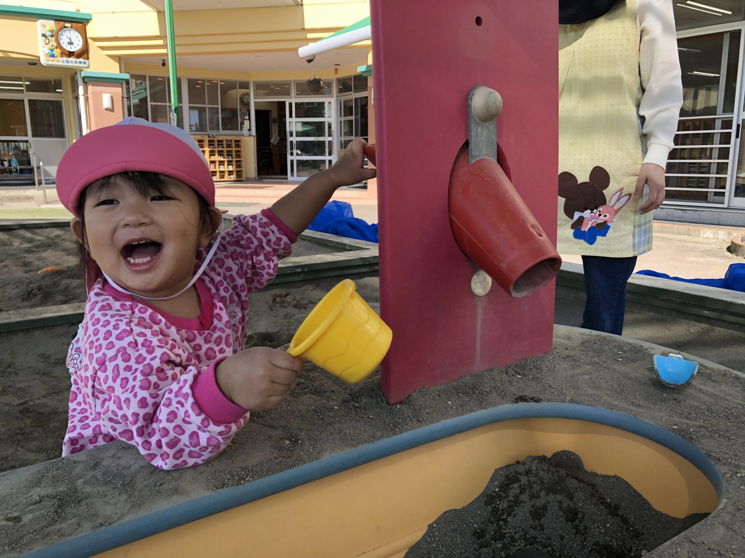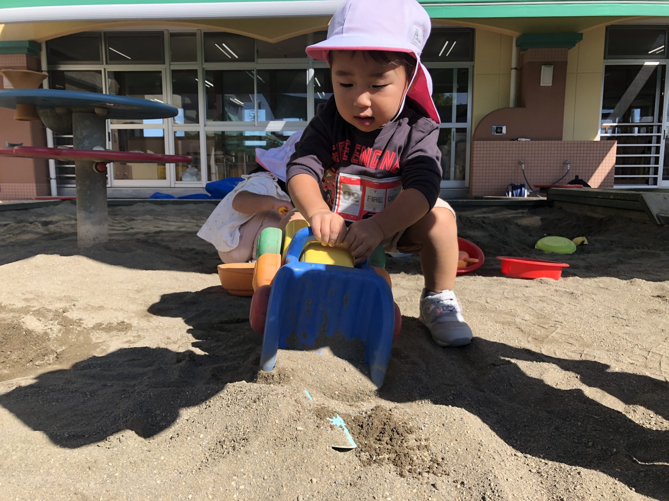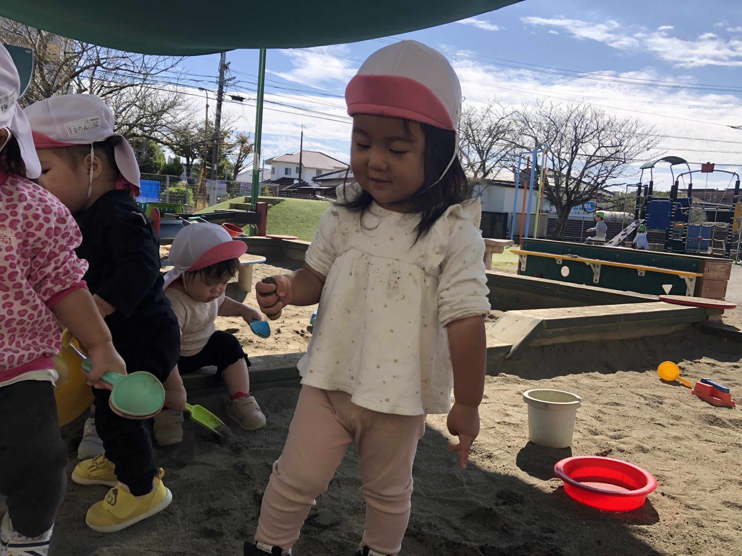 今日は砂場遊びをしました!スコップやバケツを使って遊びましたよ🎵