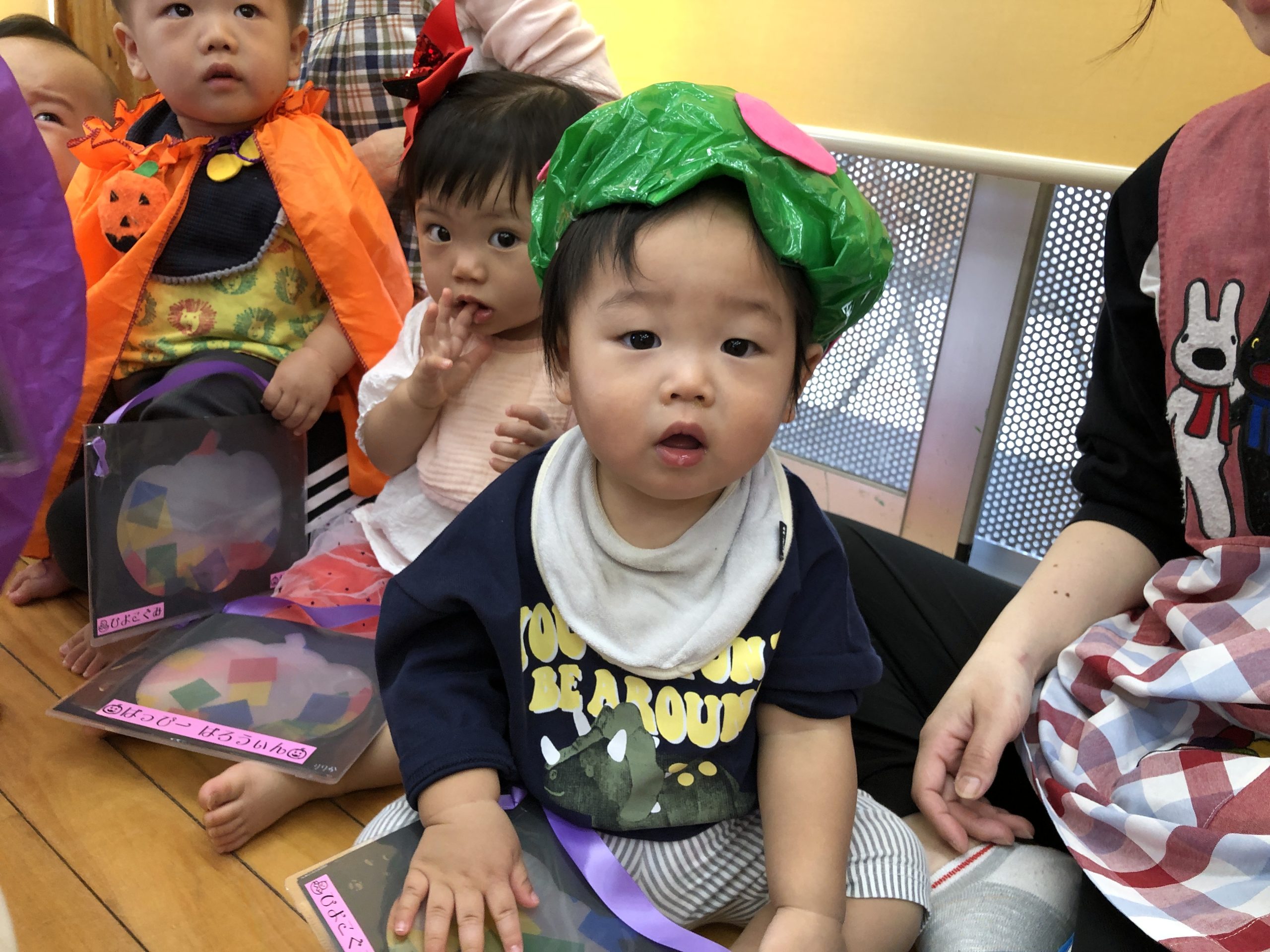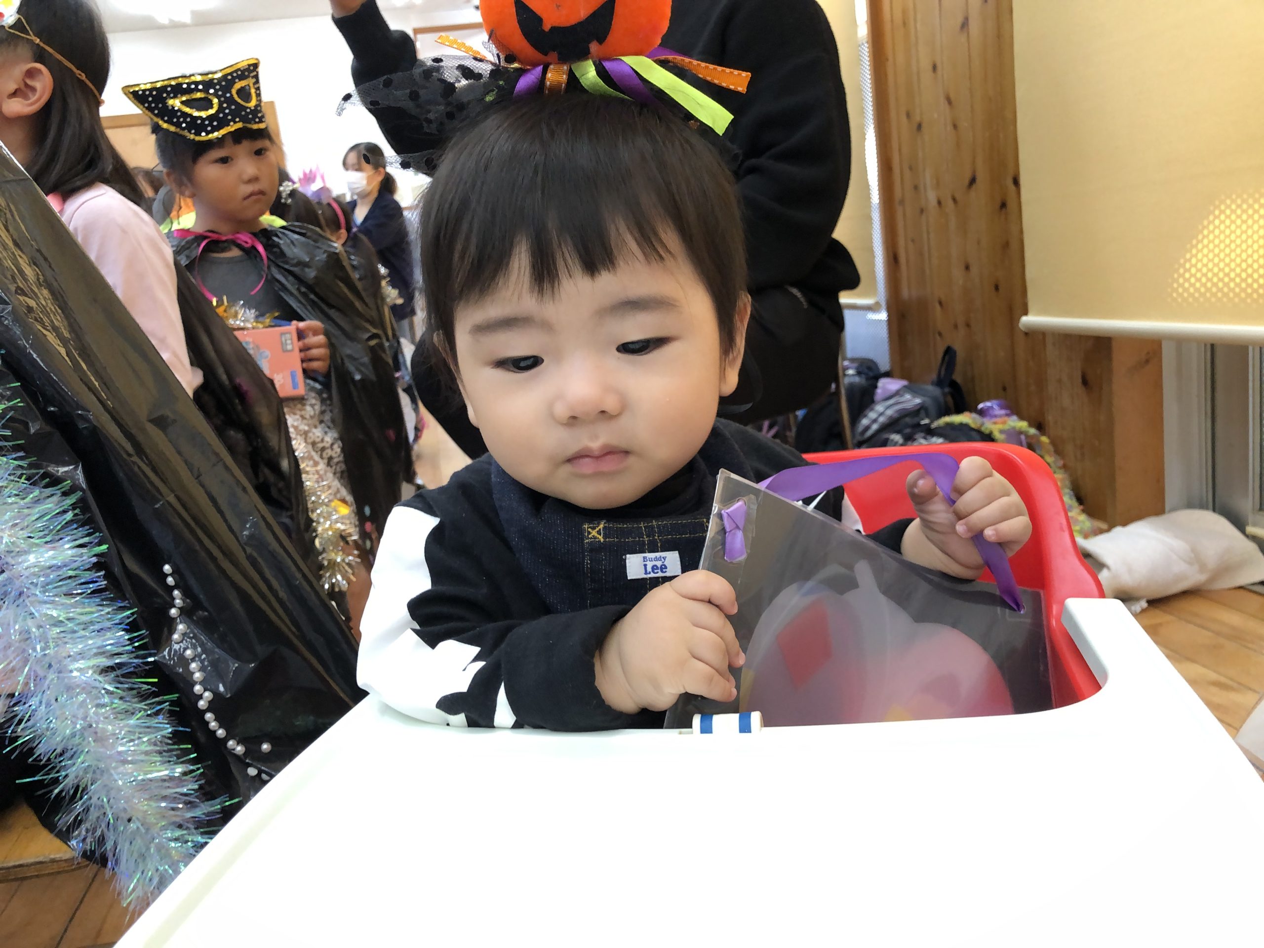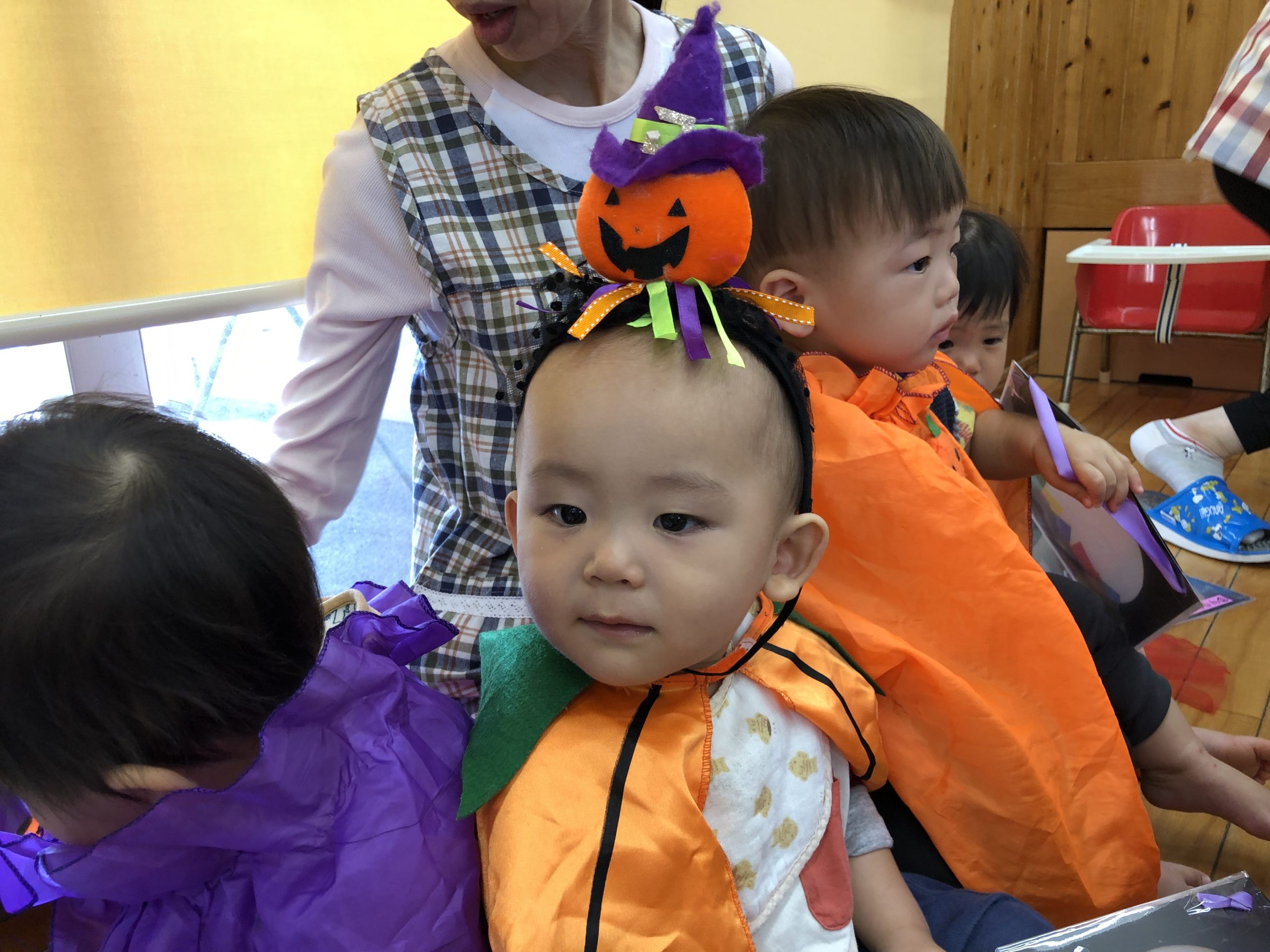 今日は、ハロウィン会に参加しました。大勢の人にビックリしていたお友だちも、お友だちの衣装をみたり、りすぐみさんのファッションショーやダンスを興味津々に♪拍手をしたりしてハロウィン会の雰囲気を楽しんでいました♬