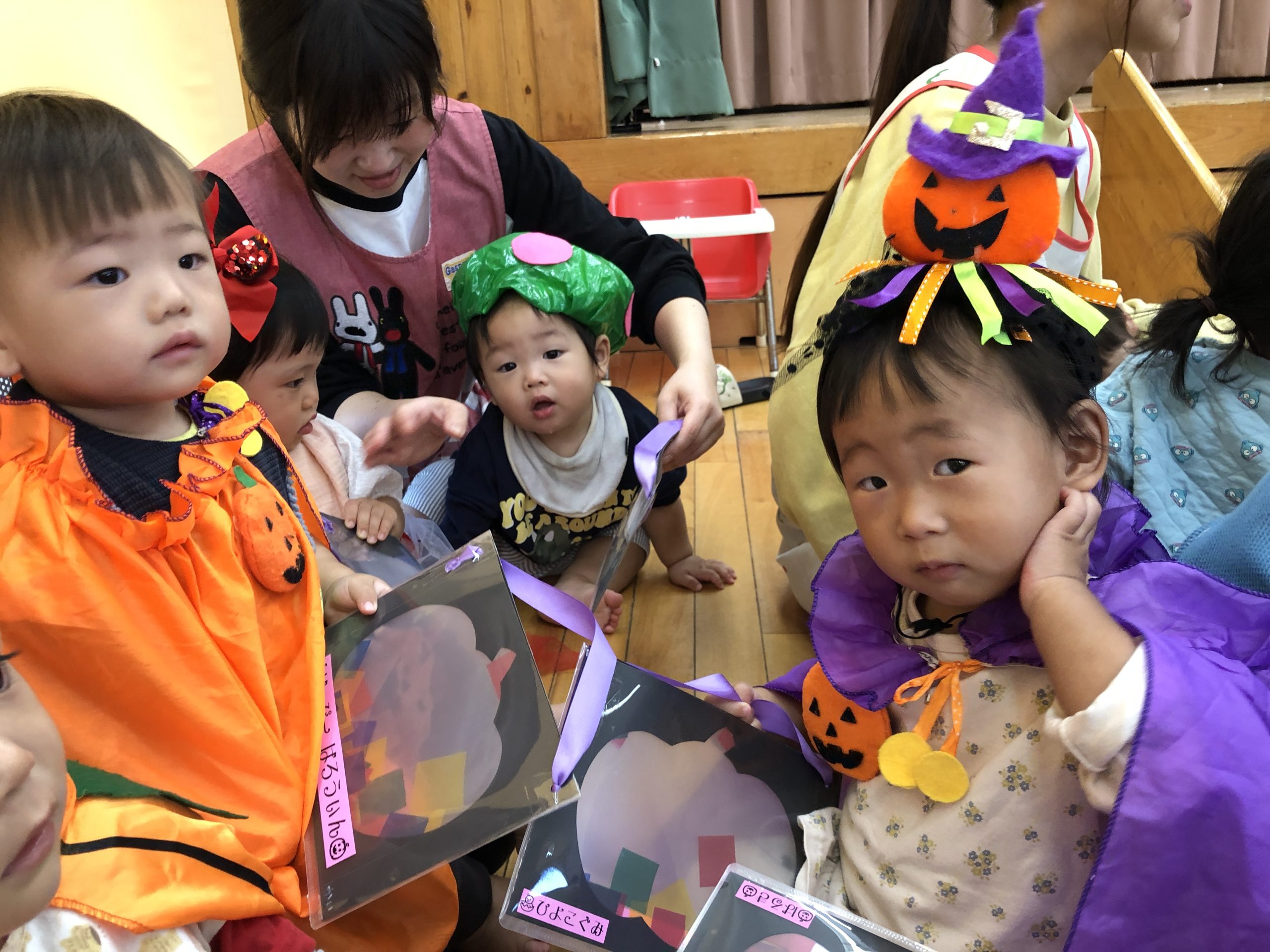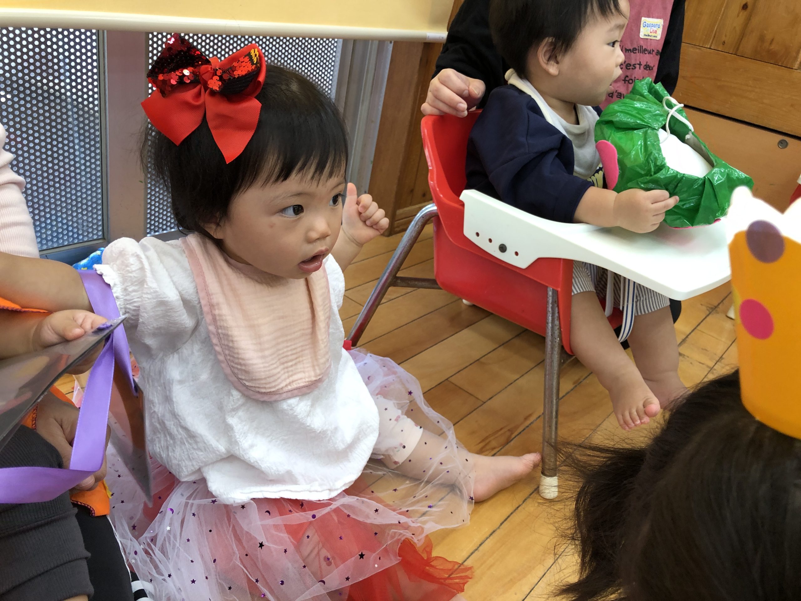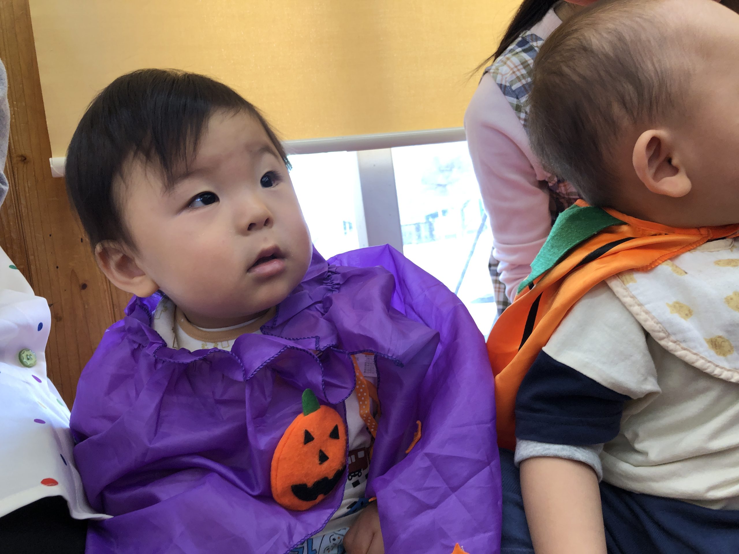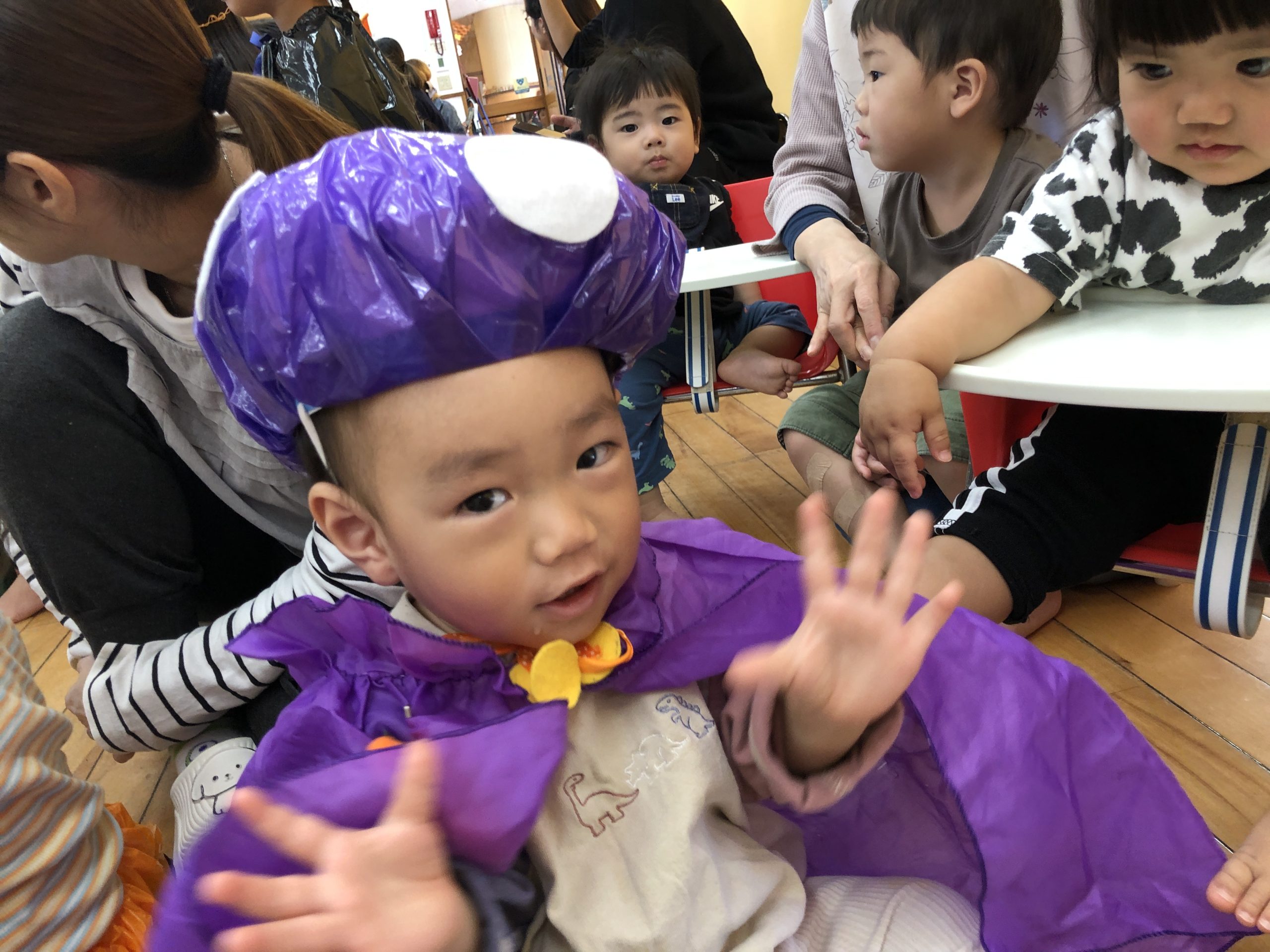 今日は、ハロウィン会に参加しました。大勢の人にビックリしていたお友だちも、お友だちの衣装をみたり、りすぐみさんのファッションショーやダンスを興味津々に♪拍手をしたりしてハロウィン会の雰囲気を楽しんでいました♬