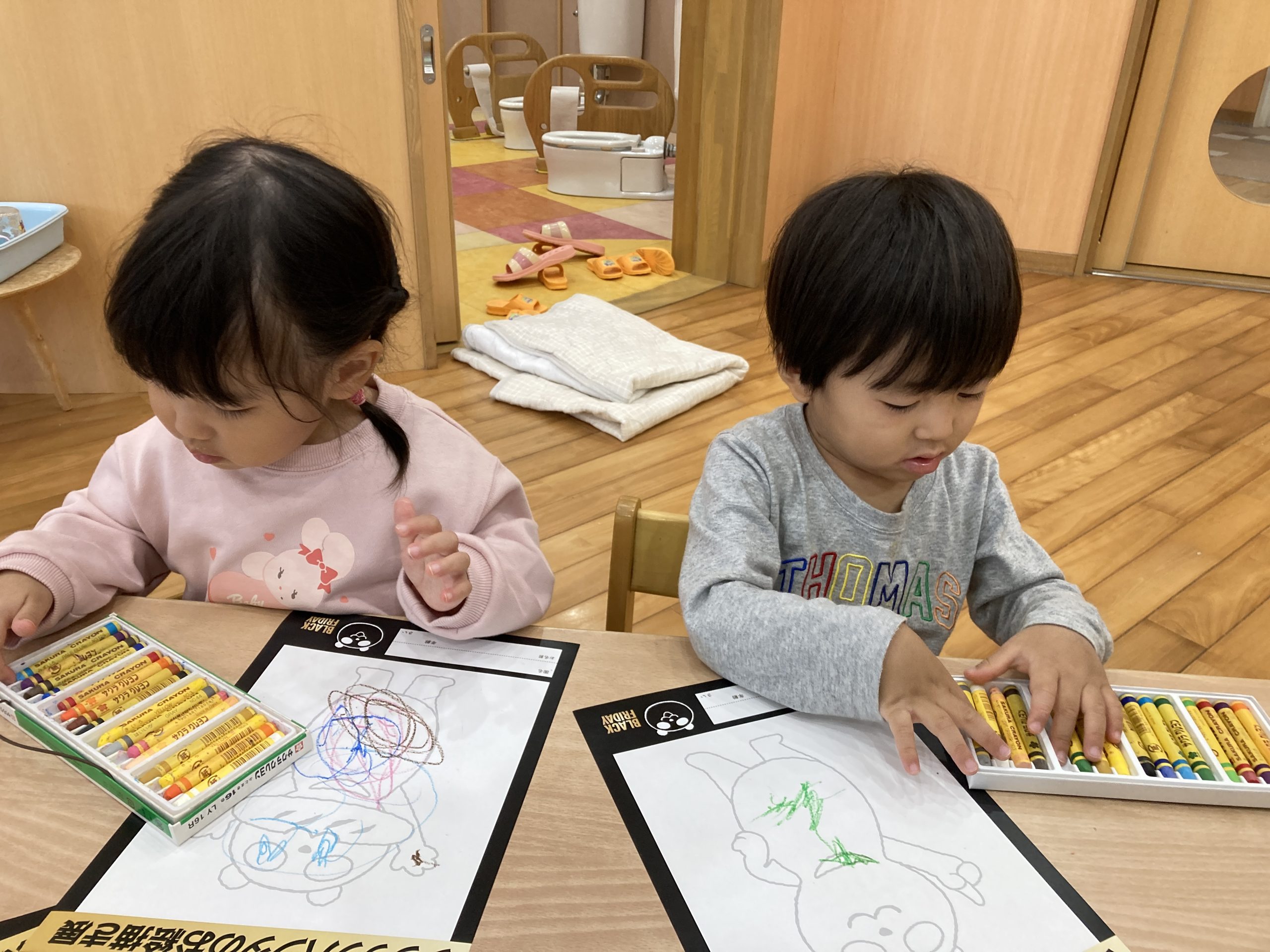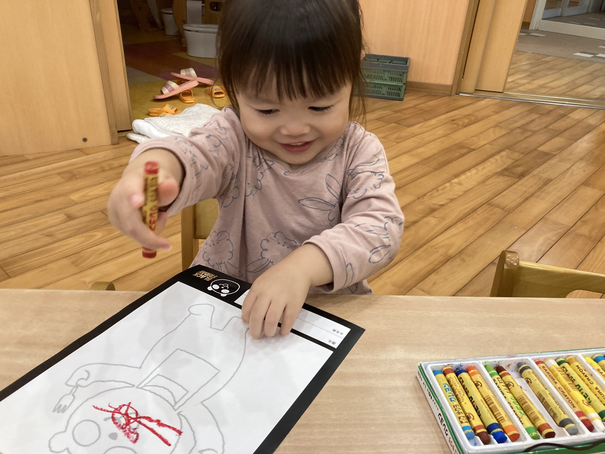 今日は、お絵描きをしました🖍️色を塗ったりお絵描きをしたりしました!自分で好きな色のクレヨンを選びながら、楽しくお絵描きをしていましたよ✨✨