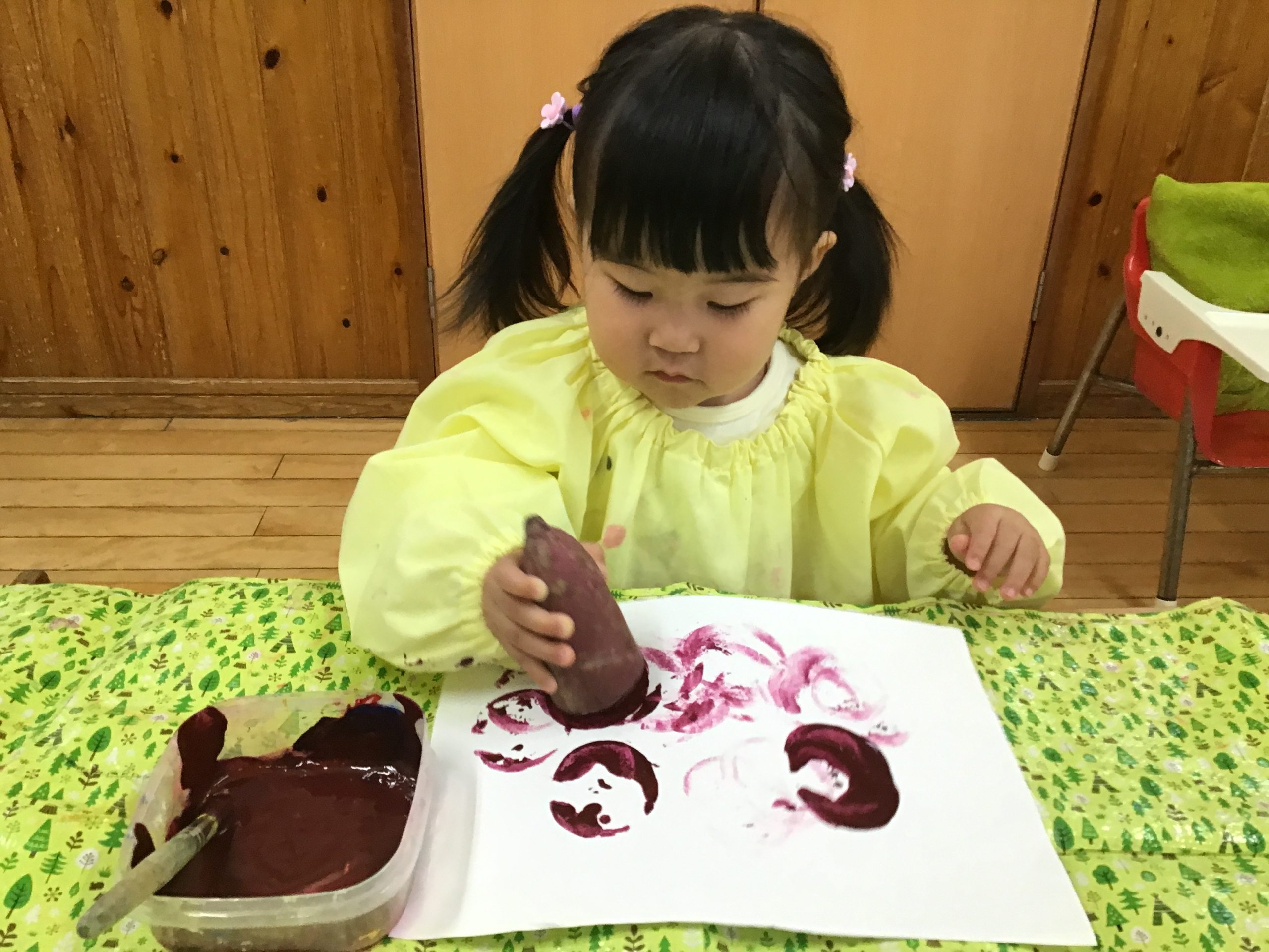 今日は、製作をしました✨さつまいもを使ってスタンプをしましたよ!!みんな上手に押すことができていましたよ😊