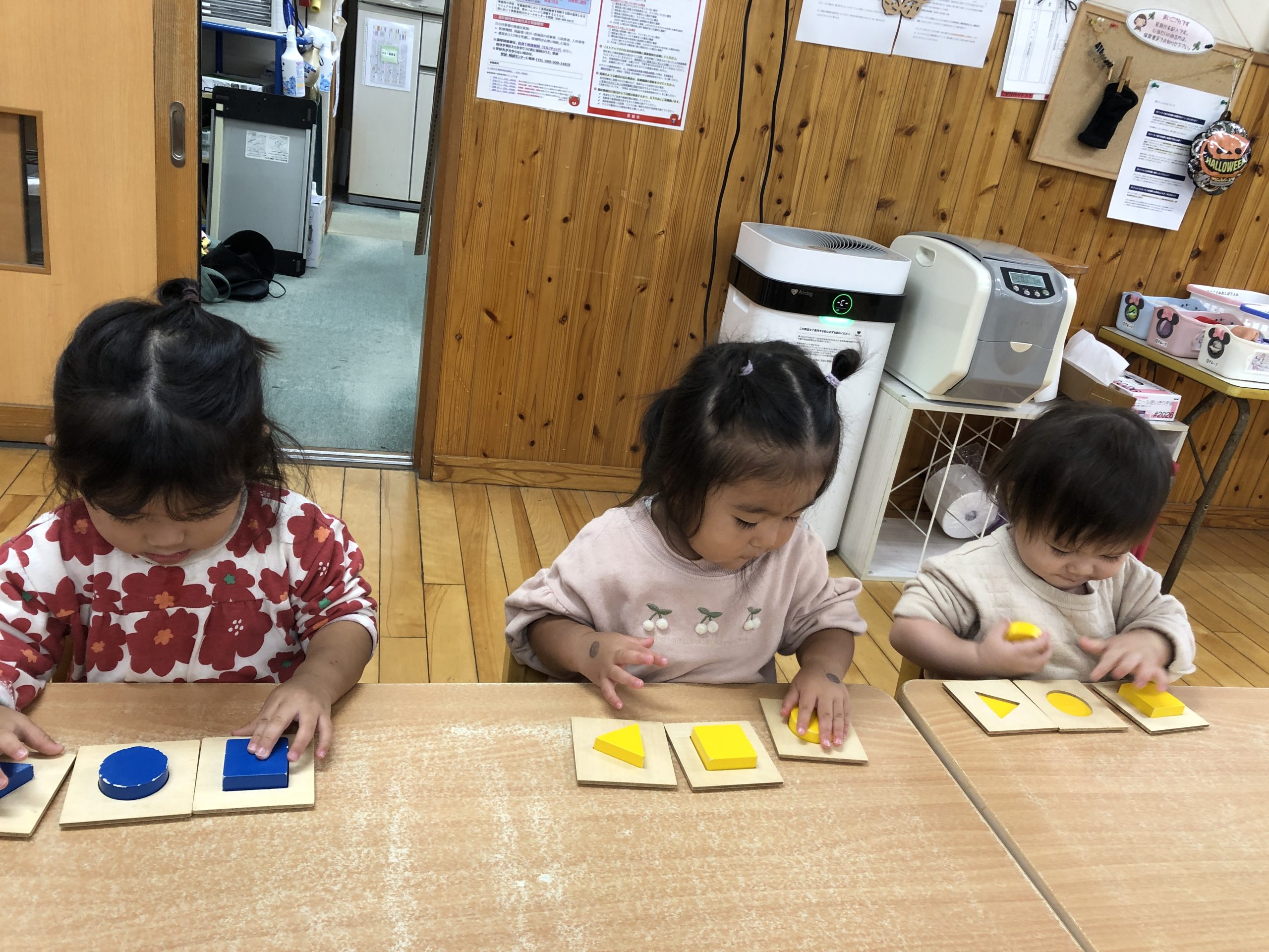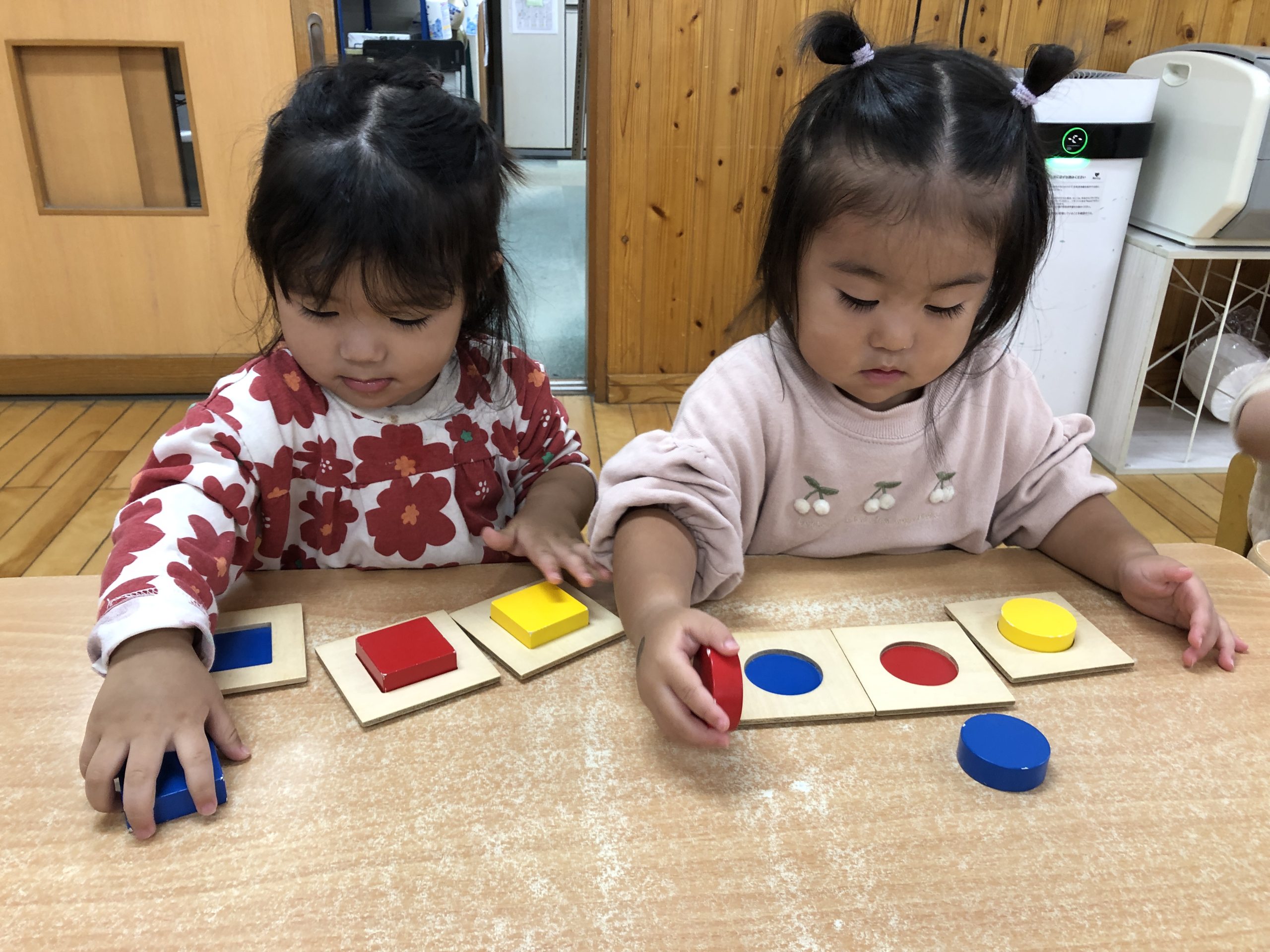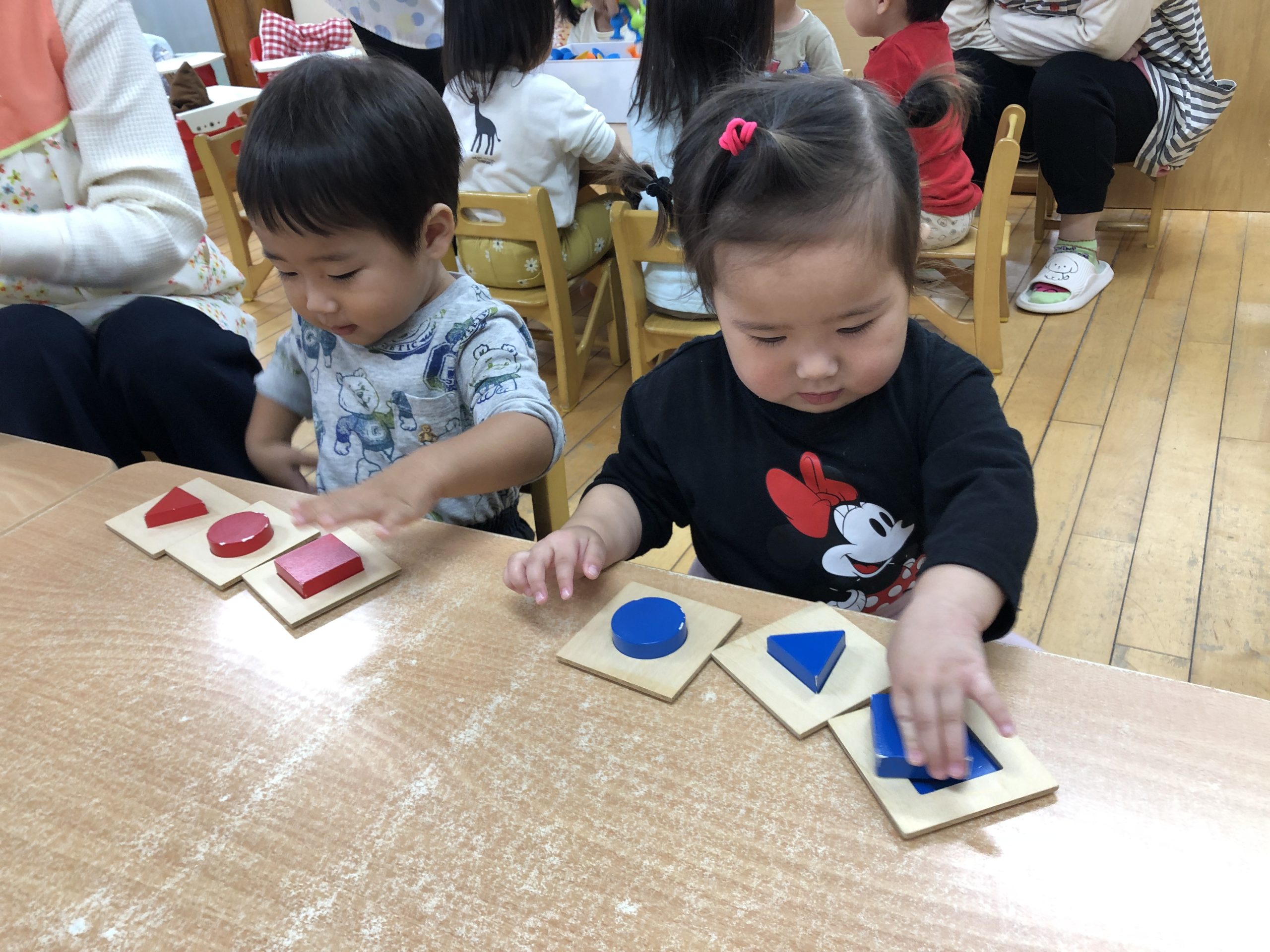 今日は型はめ遊びをしました!丸三角四角の形を理解して型はめができましたよ⭐️