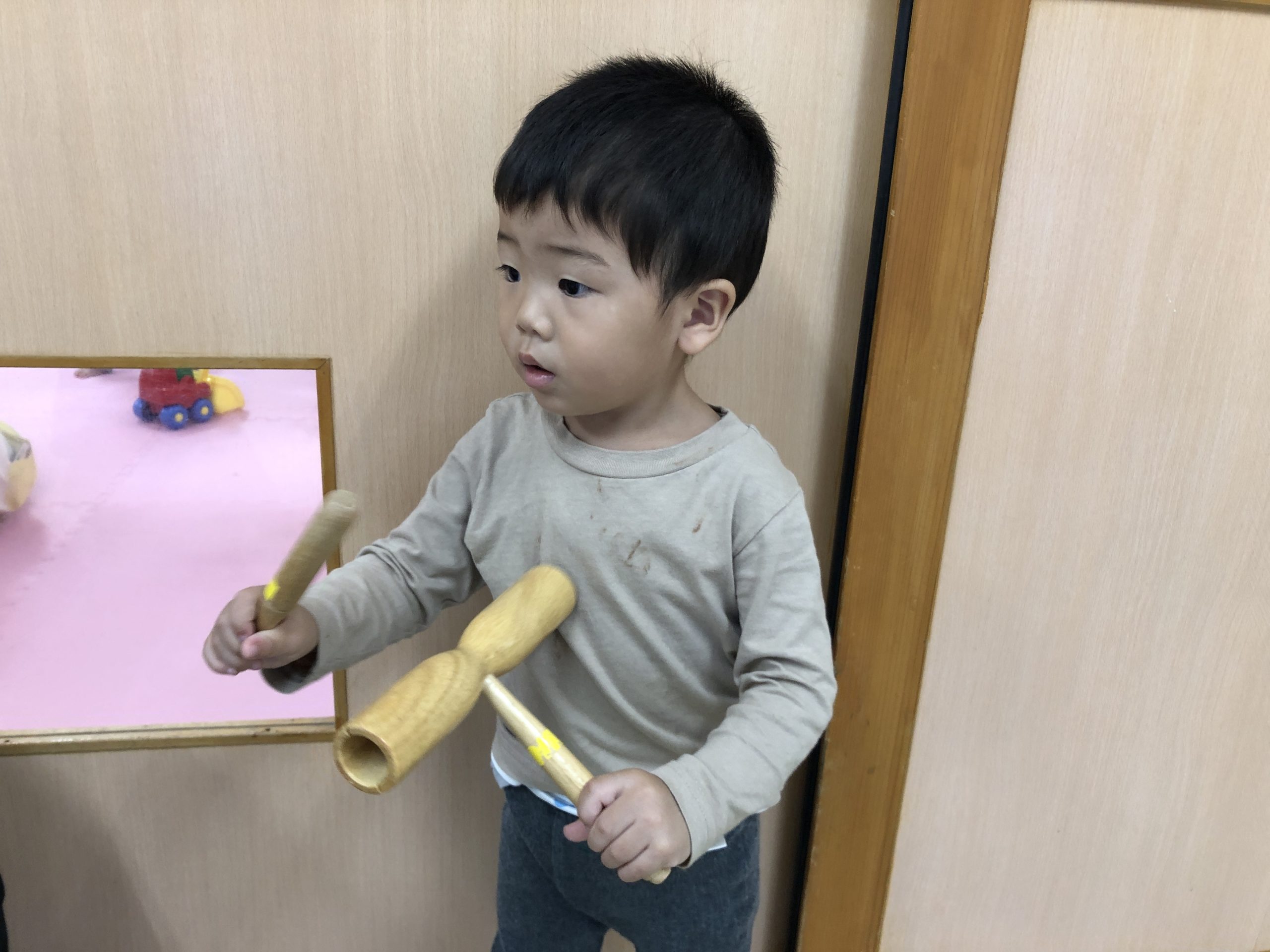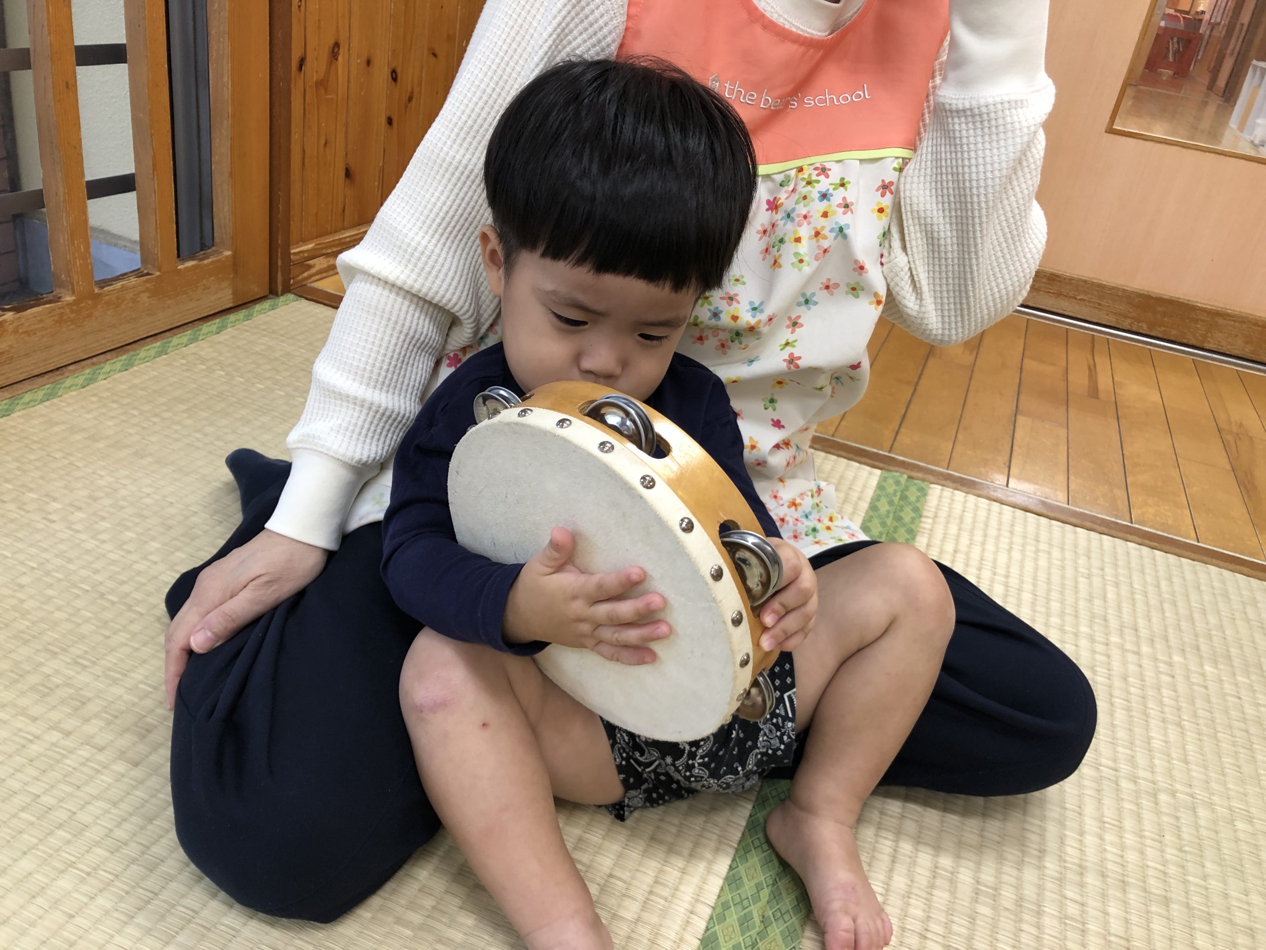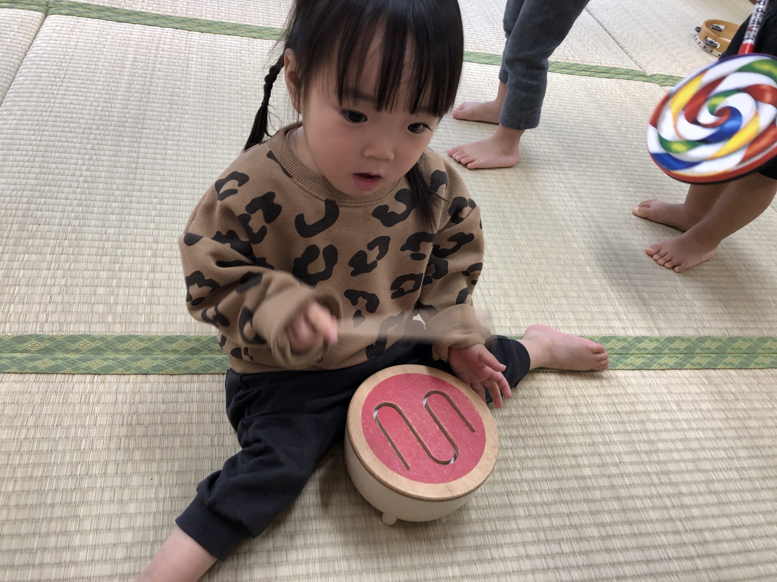 今日は楽器遊びをしました!音楽に合わせて太鼓やタンバリンをたたいて楽しみしたよ🥁