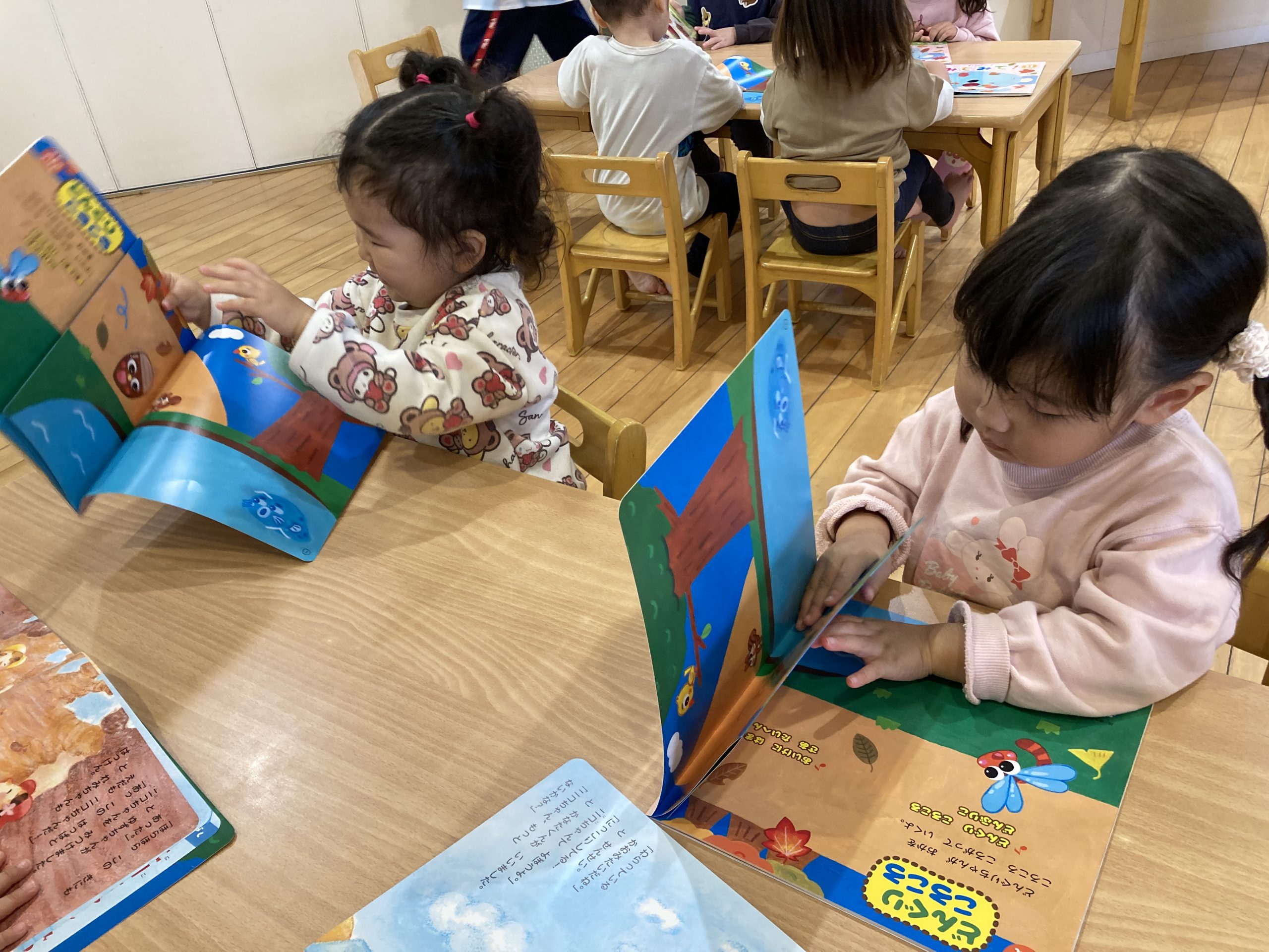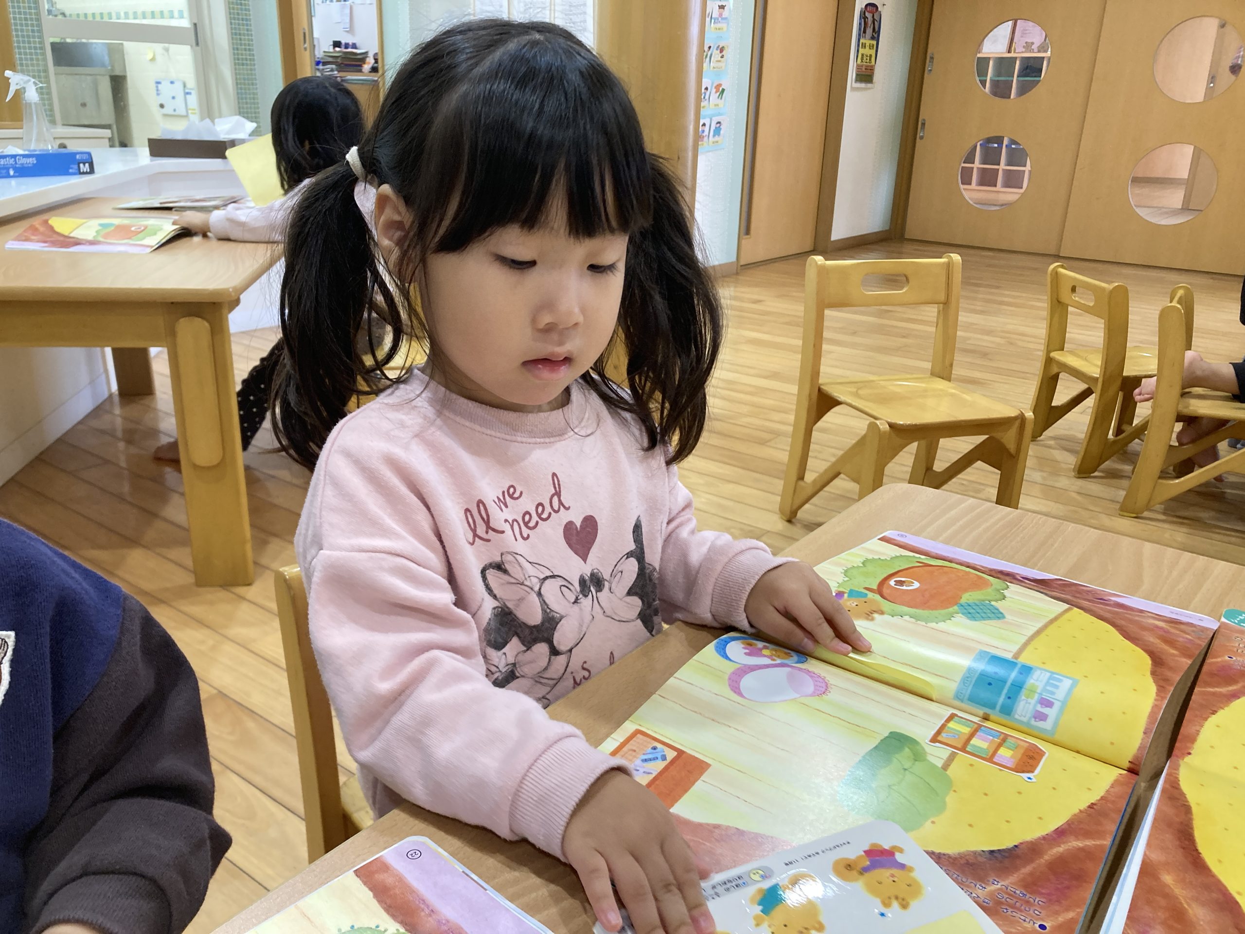 今日は、月刊絵本を読みました📚一ページずつめくりながら、シール貼りも楽しそうに取り組んでいましたよ~🌟