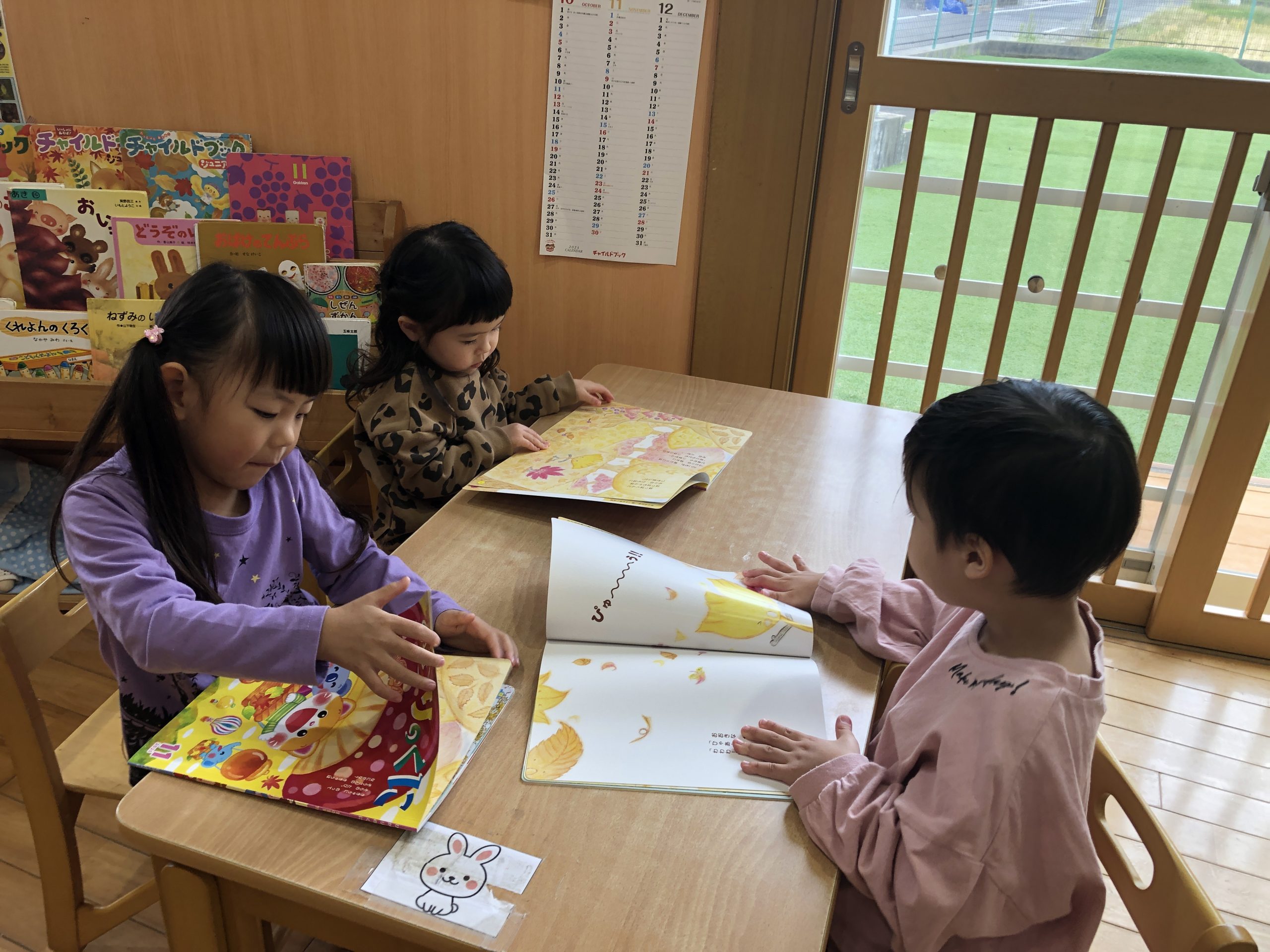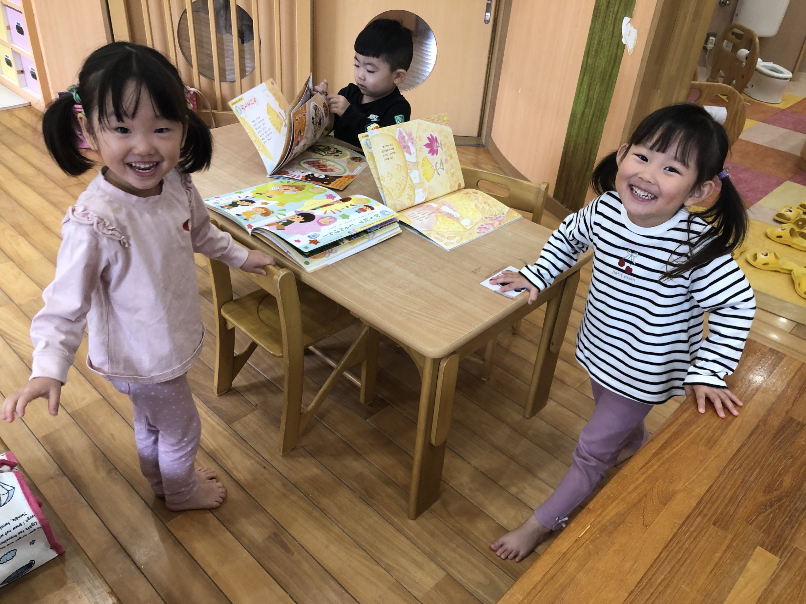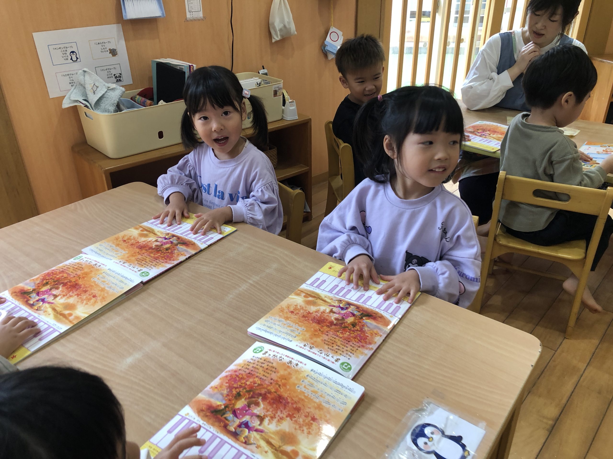 今日は、11月の月刊絵本を見ました🍁紅葉・きのこ・まっかだなの歌等々…秋に関してのお話が盛りだくさん!!絵本の通して秋について知る事ができましたよ~✨お散歩に行ったら、どんぐりや葉っぱを拾って持って帰りたいとお話していましたよ~😊