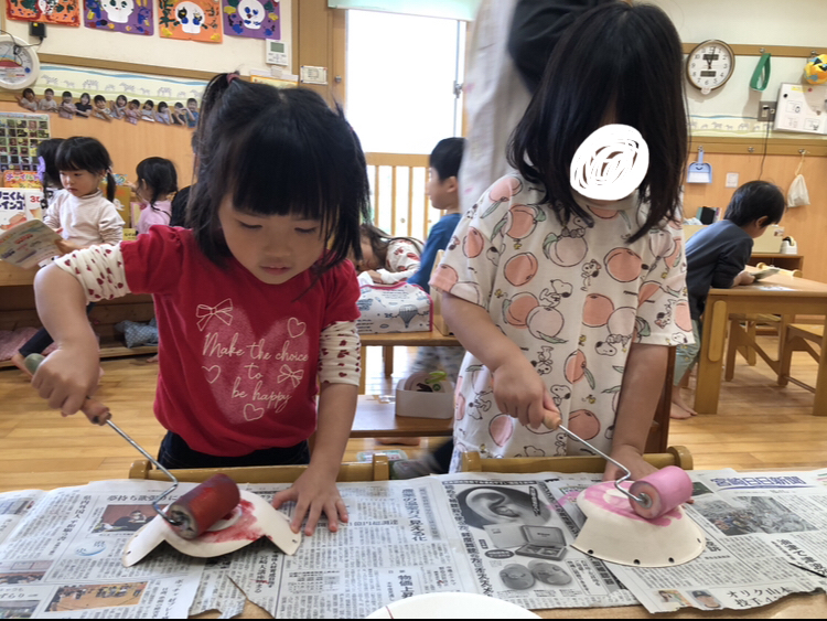 今日は、今度のお散歩の時に持って行くカバンを作りました‼好きな色の絵の具を選びかばんになる部分に塗りましたよ🎨次回続きを作っていくことを伝えると「プリンセスのバックにしようかな~」「可愛いの作る‼」と楽しみにしていたつきぐみさんたちでした🎶また、お昼寝前に避難訓練に関する紙芝居を見ました🔥紙芝居が終わった後はお・は・し・もの話もしたりと、火災が起こった時に大事なことなどを再確認しましたよ~!!