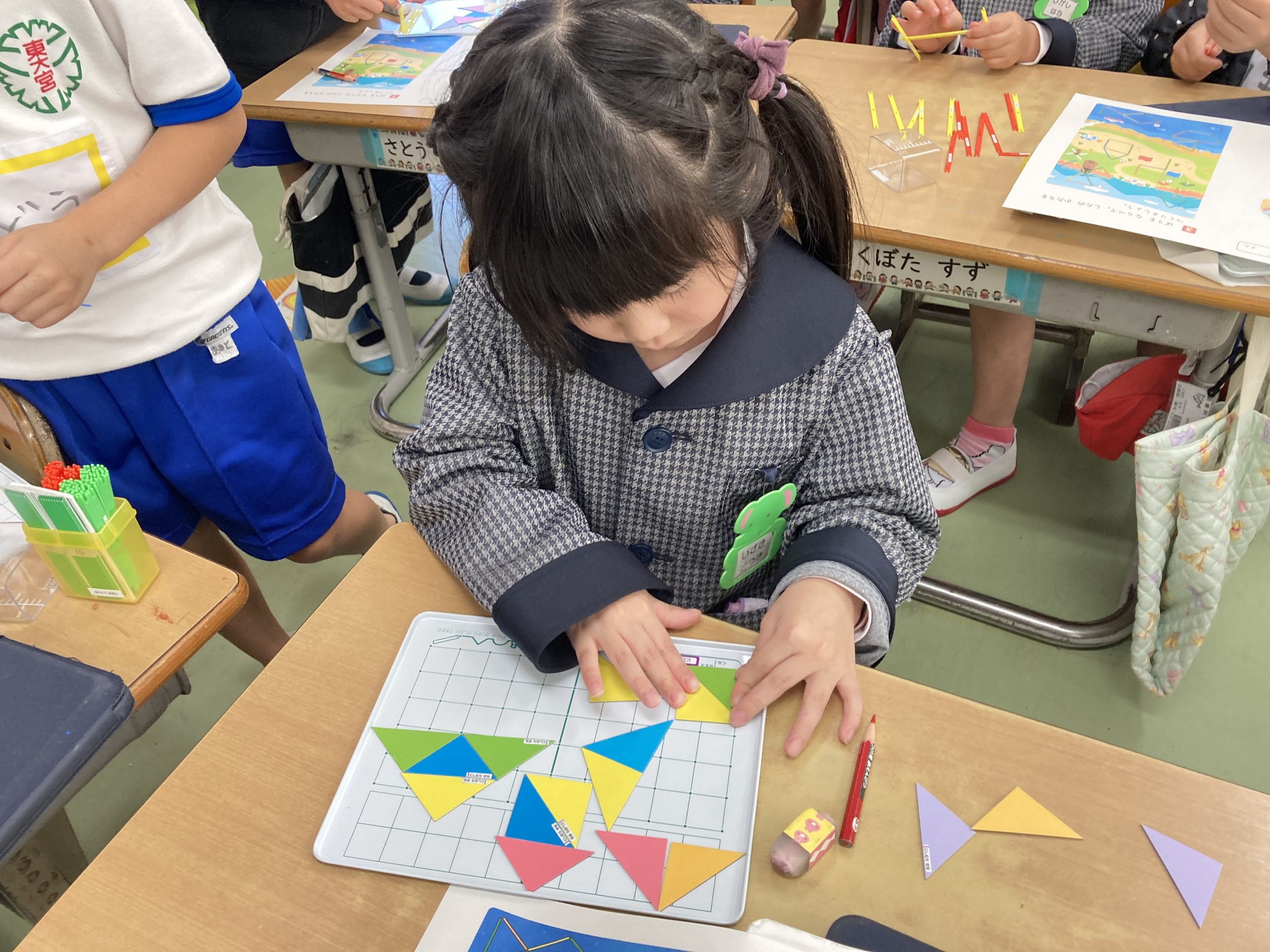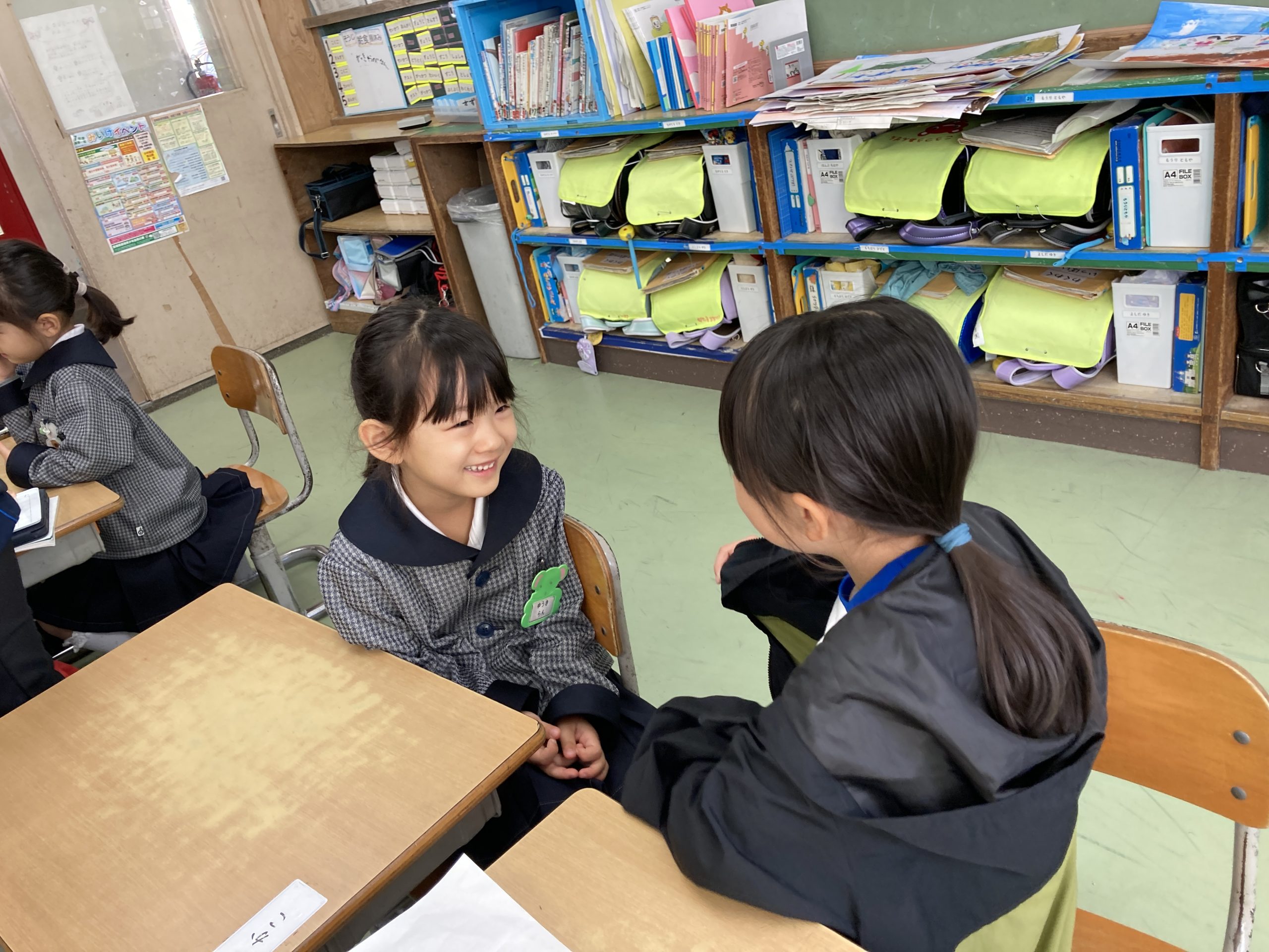 今日は、東大宮小学校との交流会にでかけました。1年生のおねえさんおにいさんと一緒に算数の授業を受けました。少し緊張していましたが、優しく教えてもらい慣れてくると笑顔で話しかけていました。