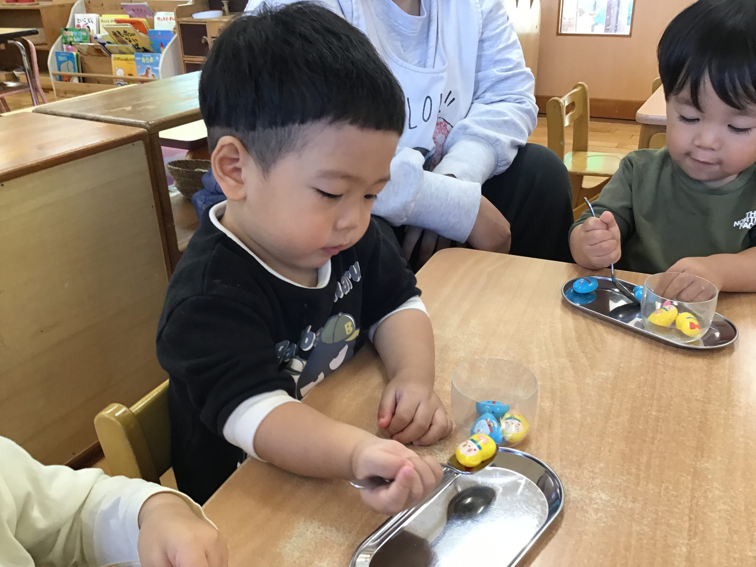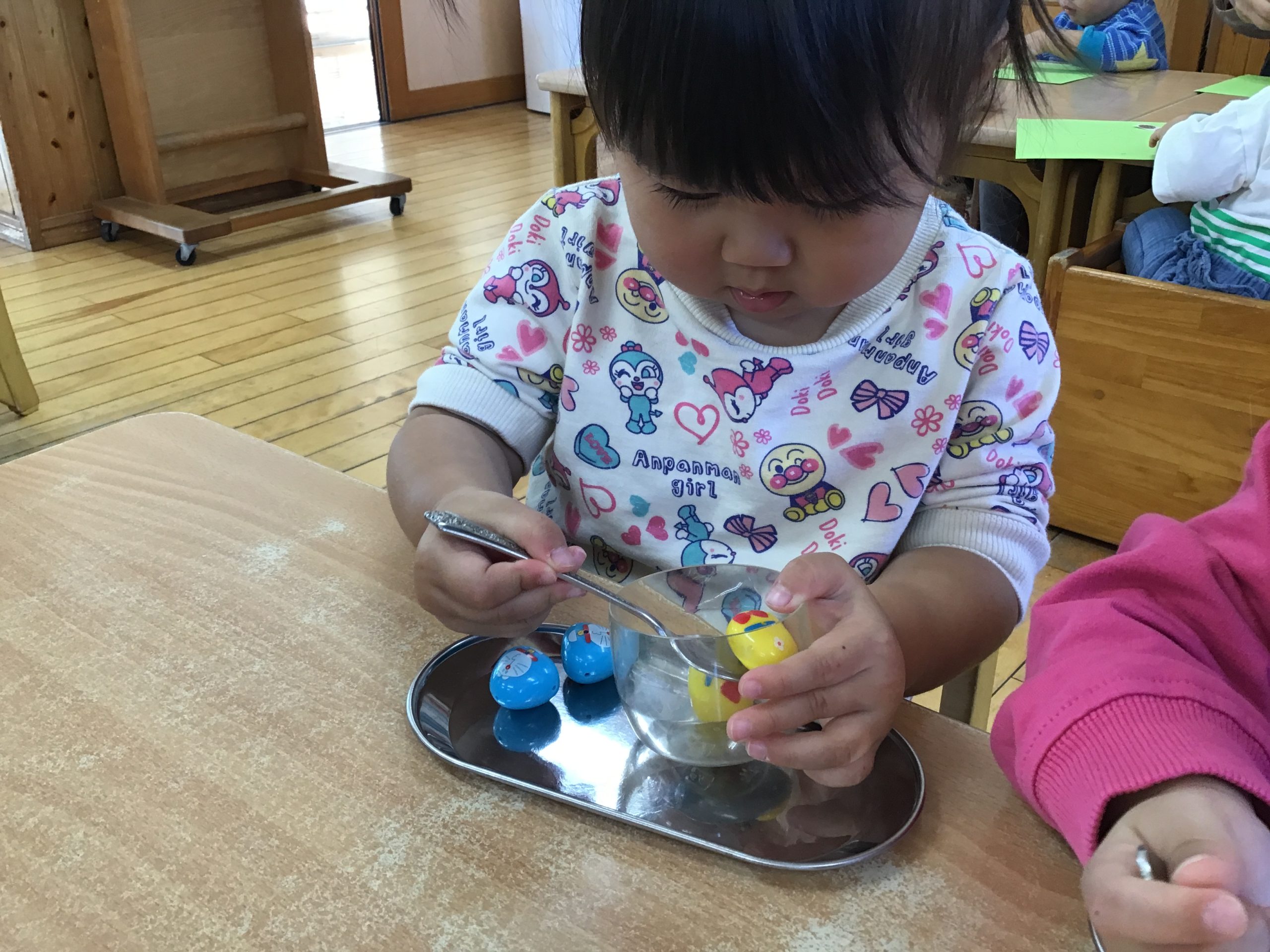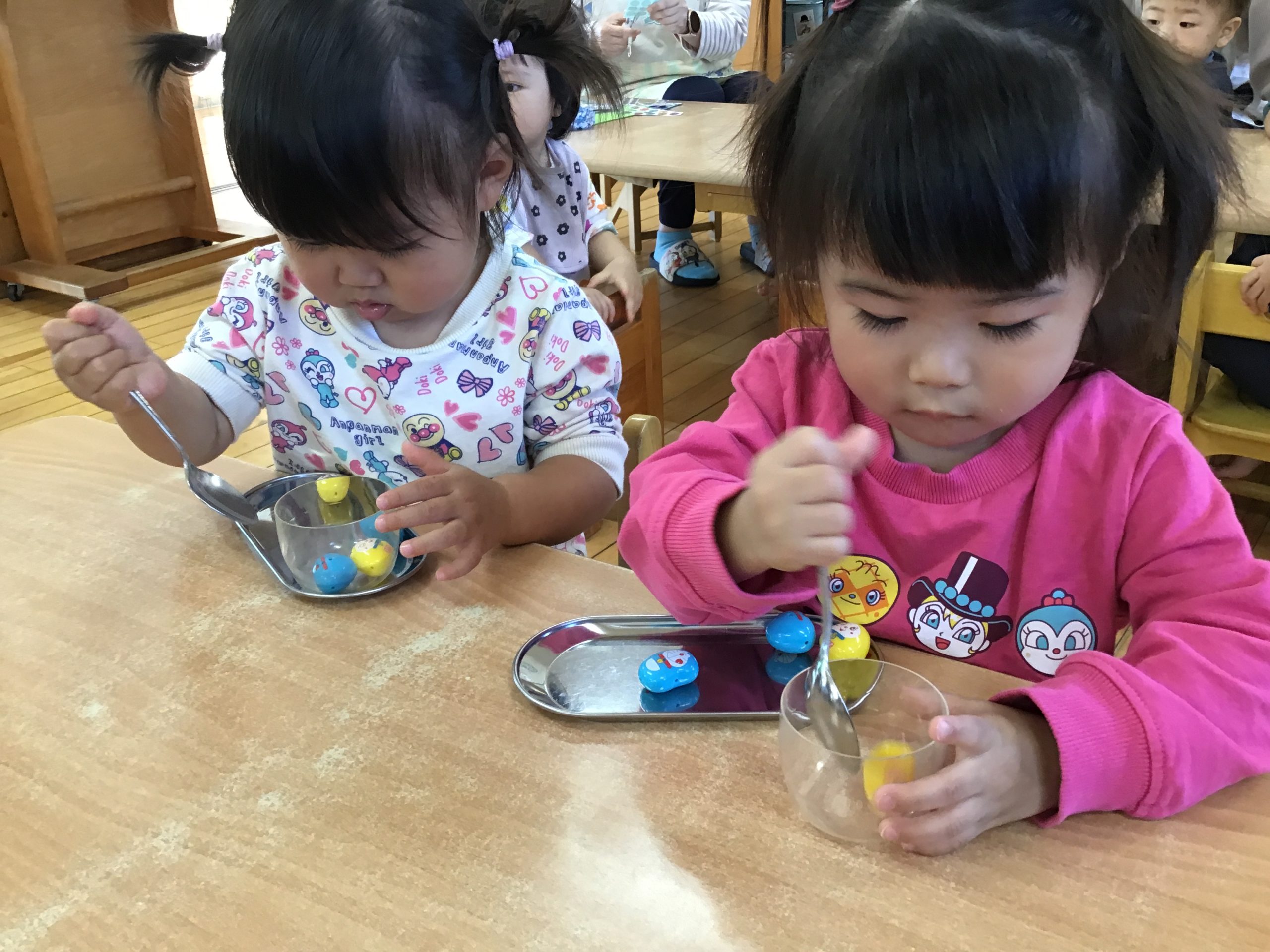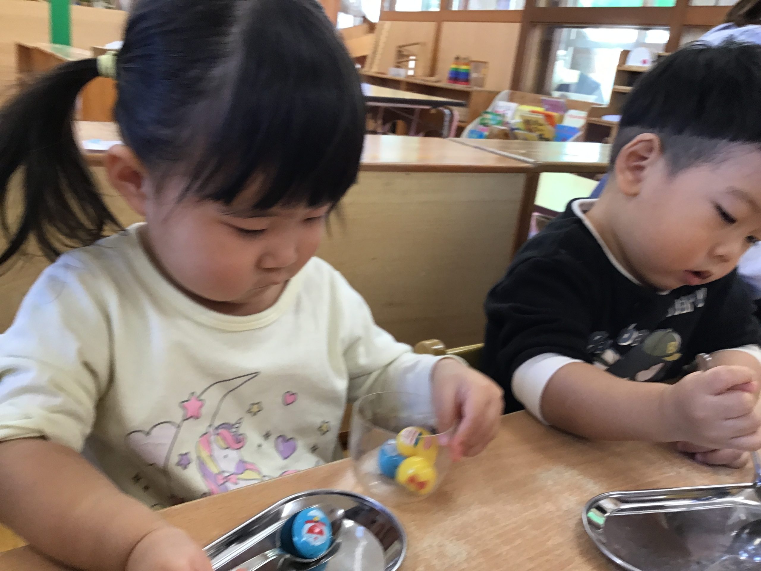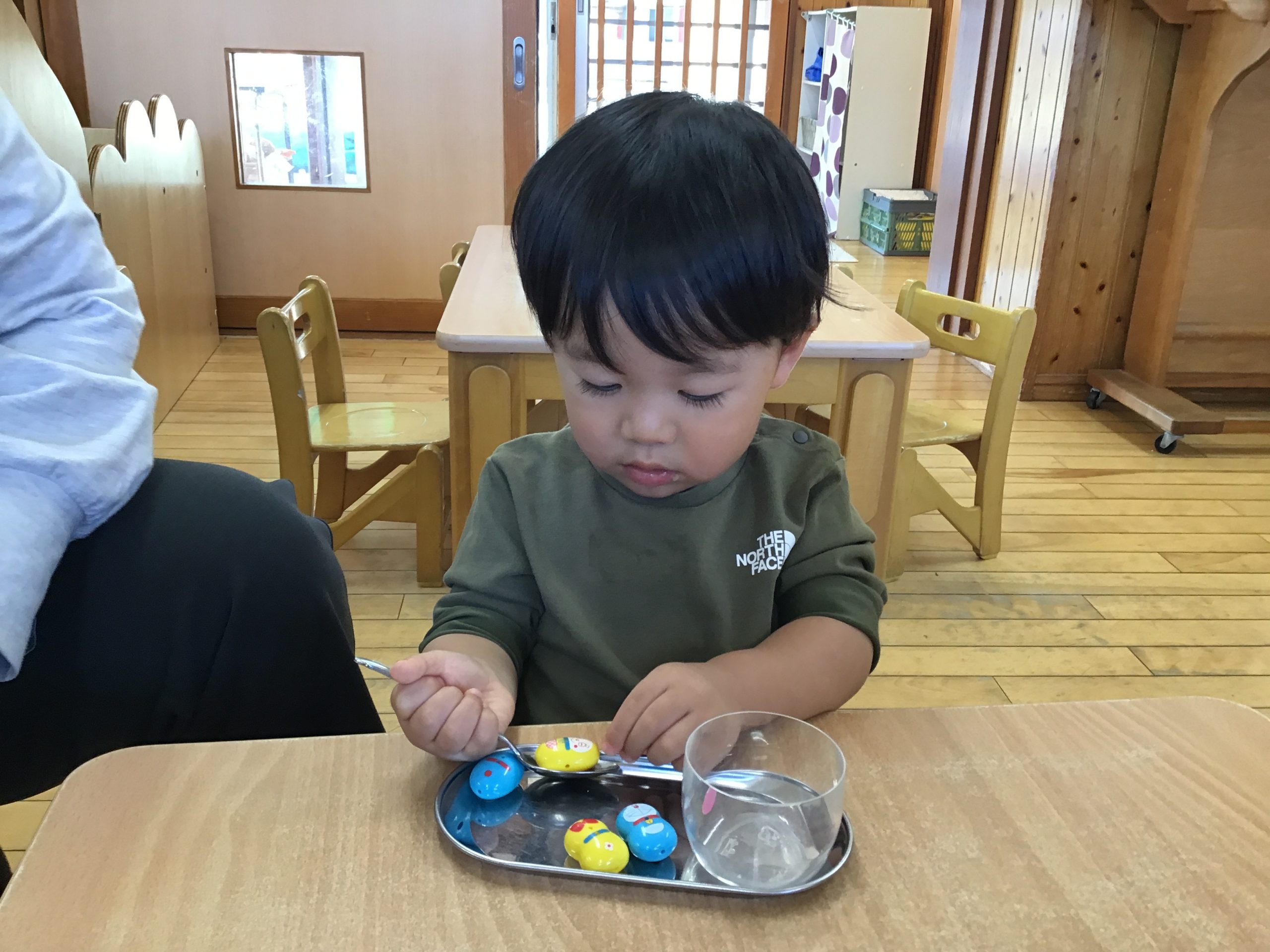 今日は、豆うつしをしました。下握りでうつす練習をしました~!!皆とっても上手にできていましたよ✨