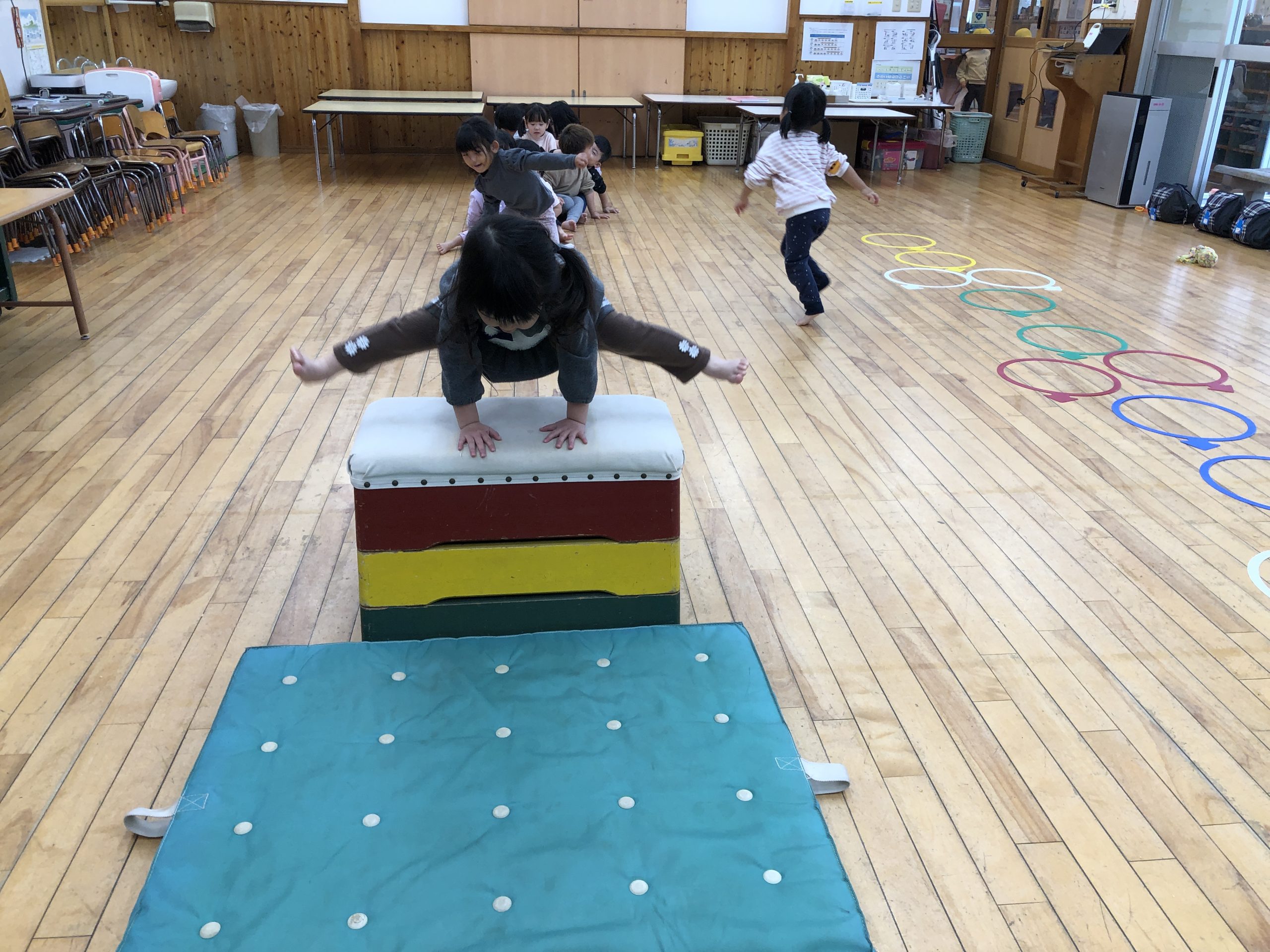 今日は、運動遊びをしました!!跳び箱やケンパやキックバイクや跳び箱ジャンプなどたくさんの運動に挑戦しましたよ🔥飛箱は4段跳ぶことができたお友達がいました!どの運動も積極的に挑戦しみんな楽しんでましたー😆✨