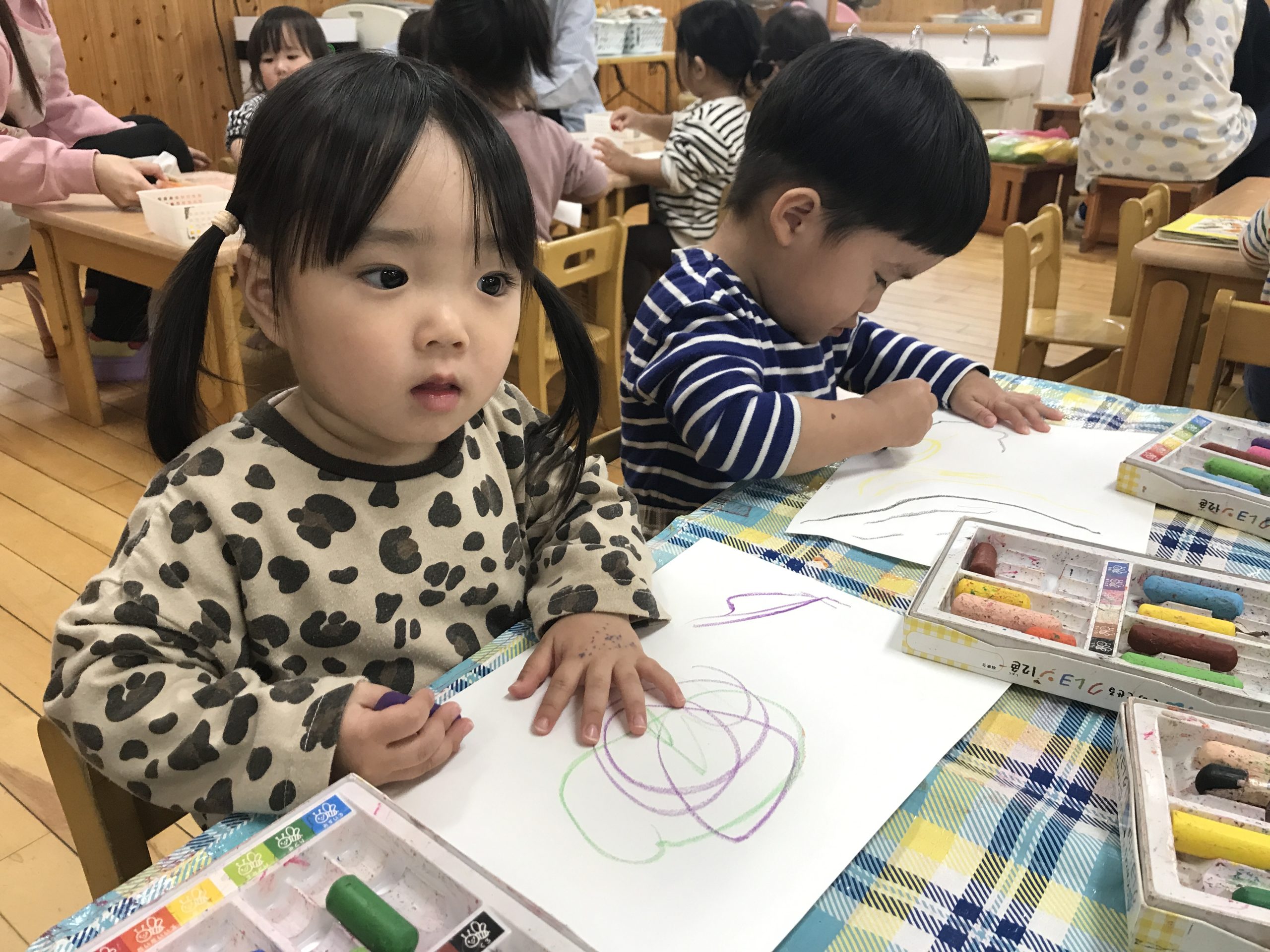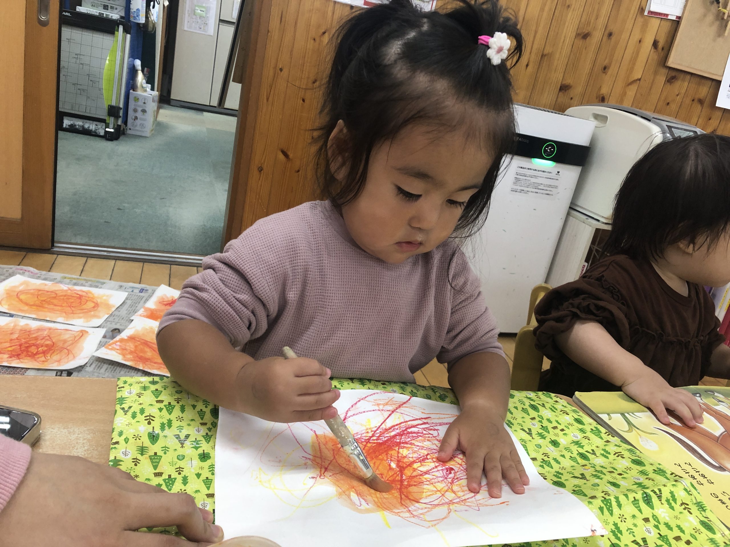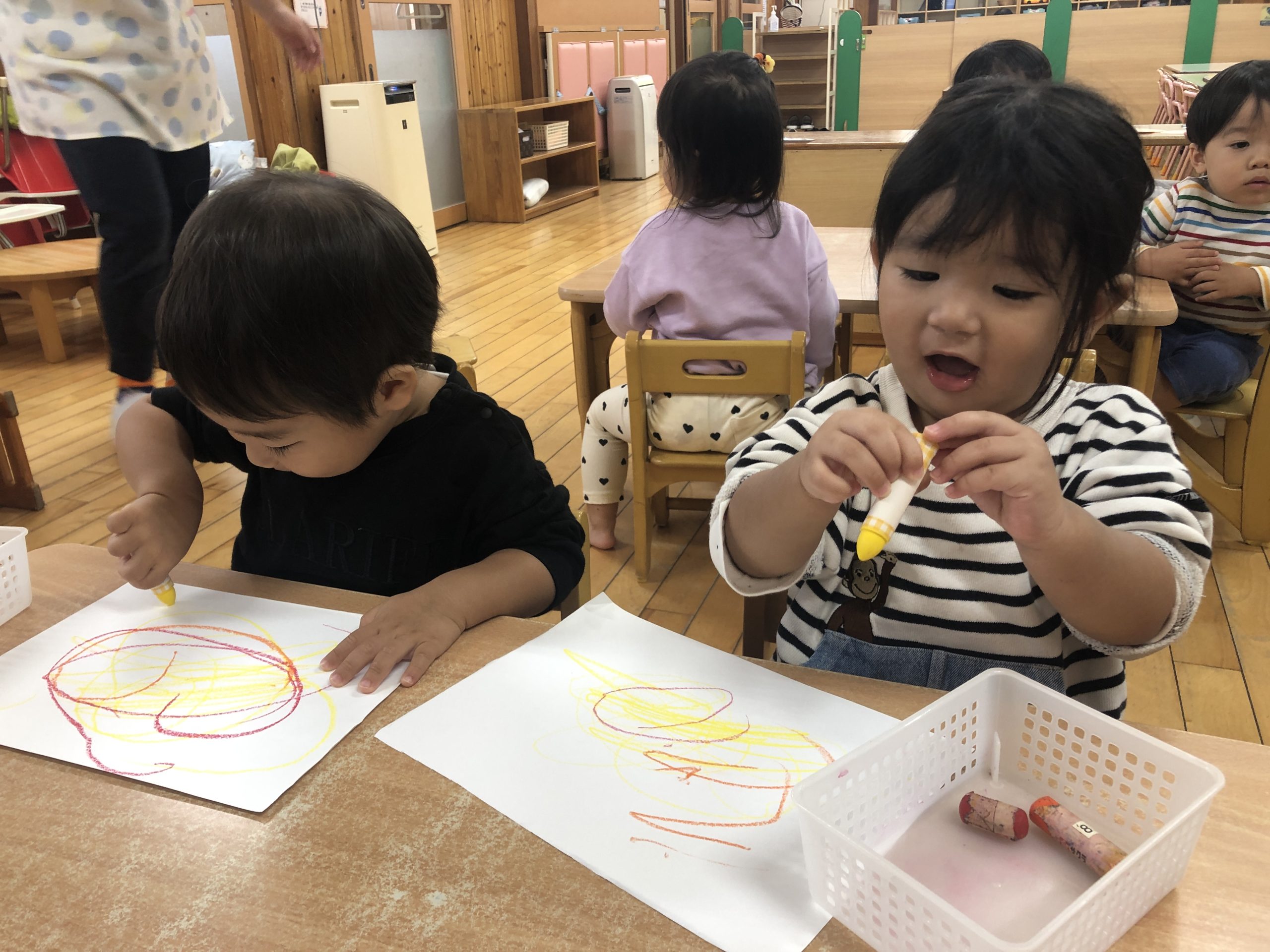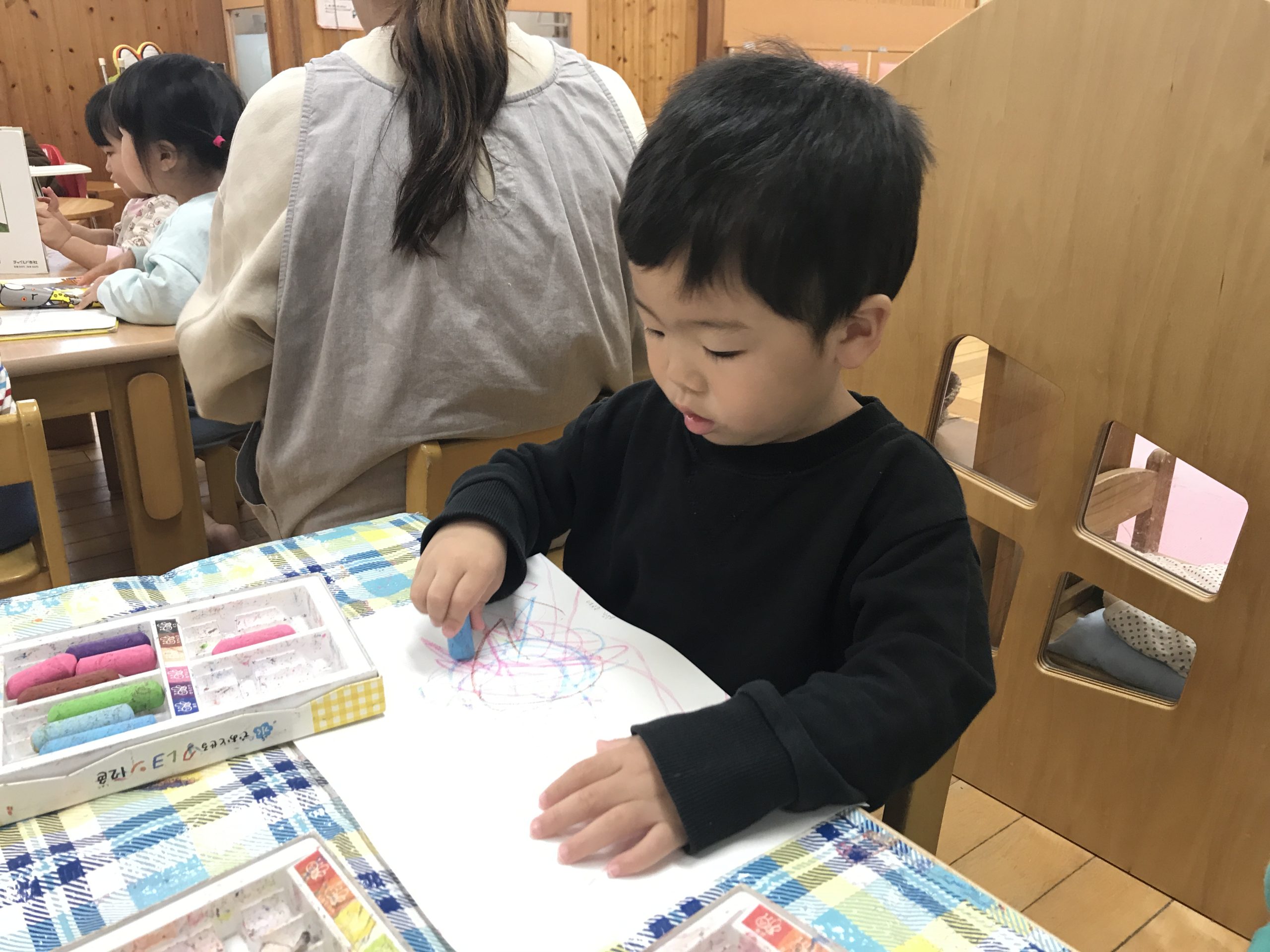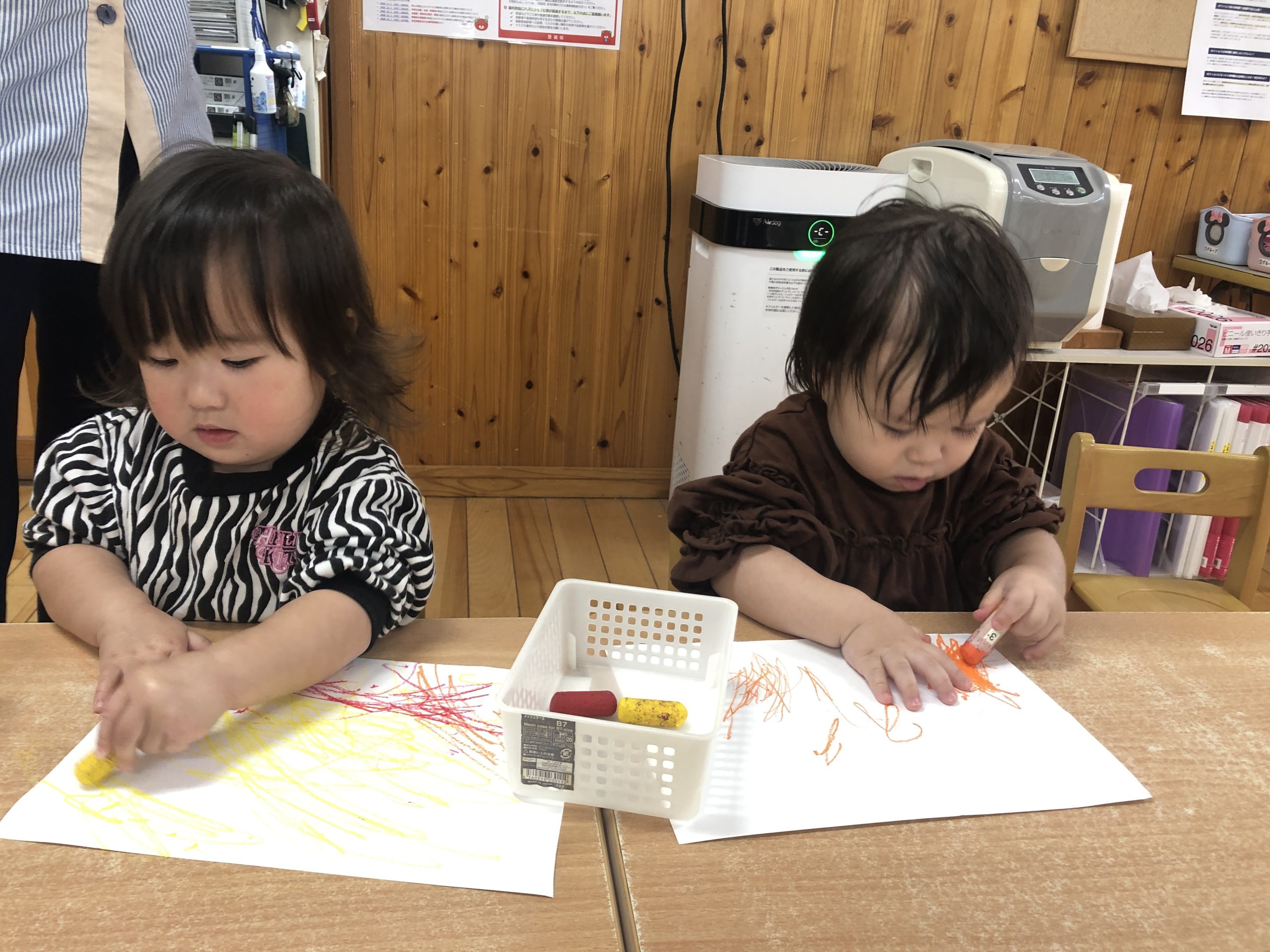 今日はお絵描きをしました🎵好きな色のクレヨンを使ってなぐり描きを楽しんでいましたよ✨