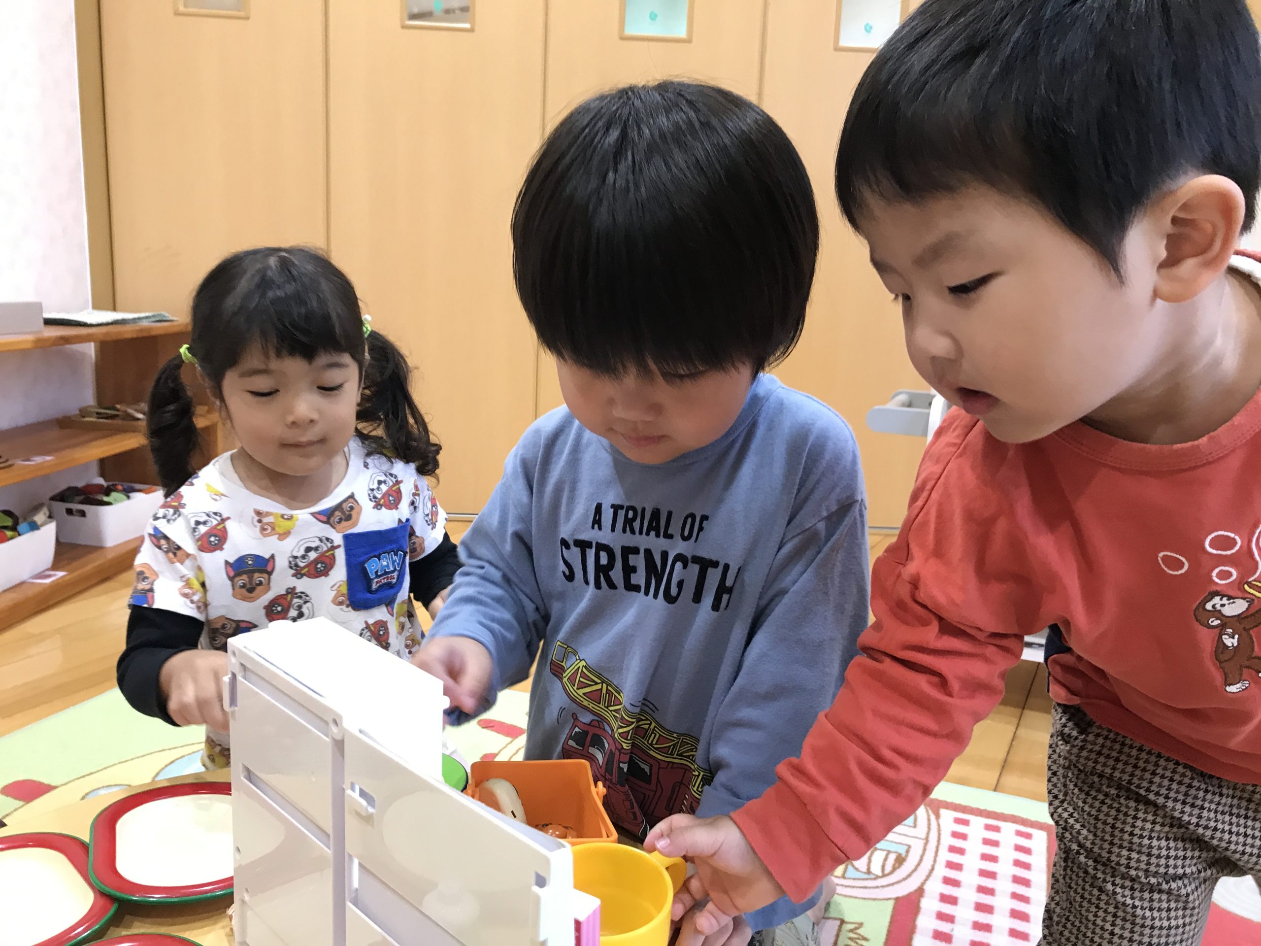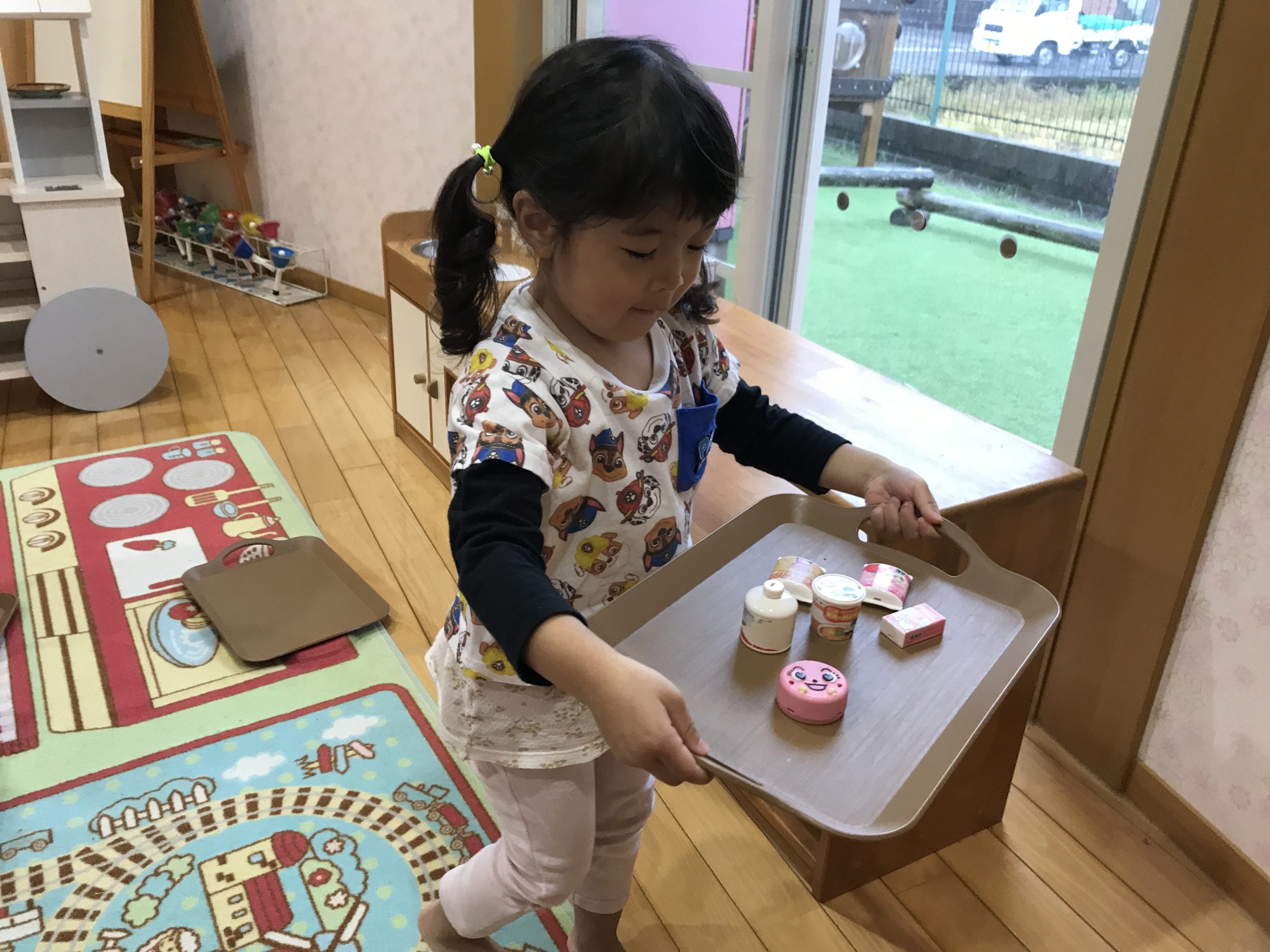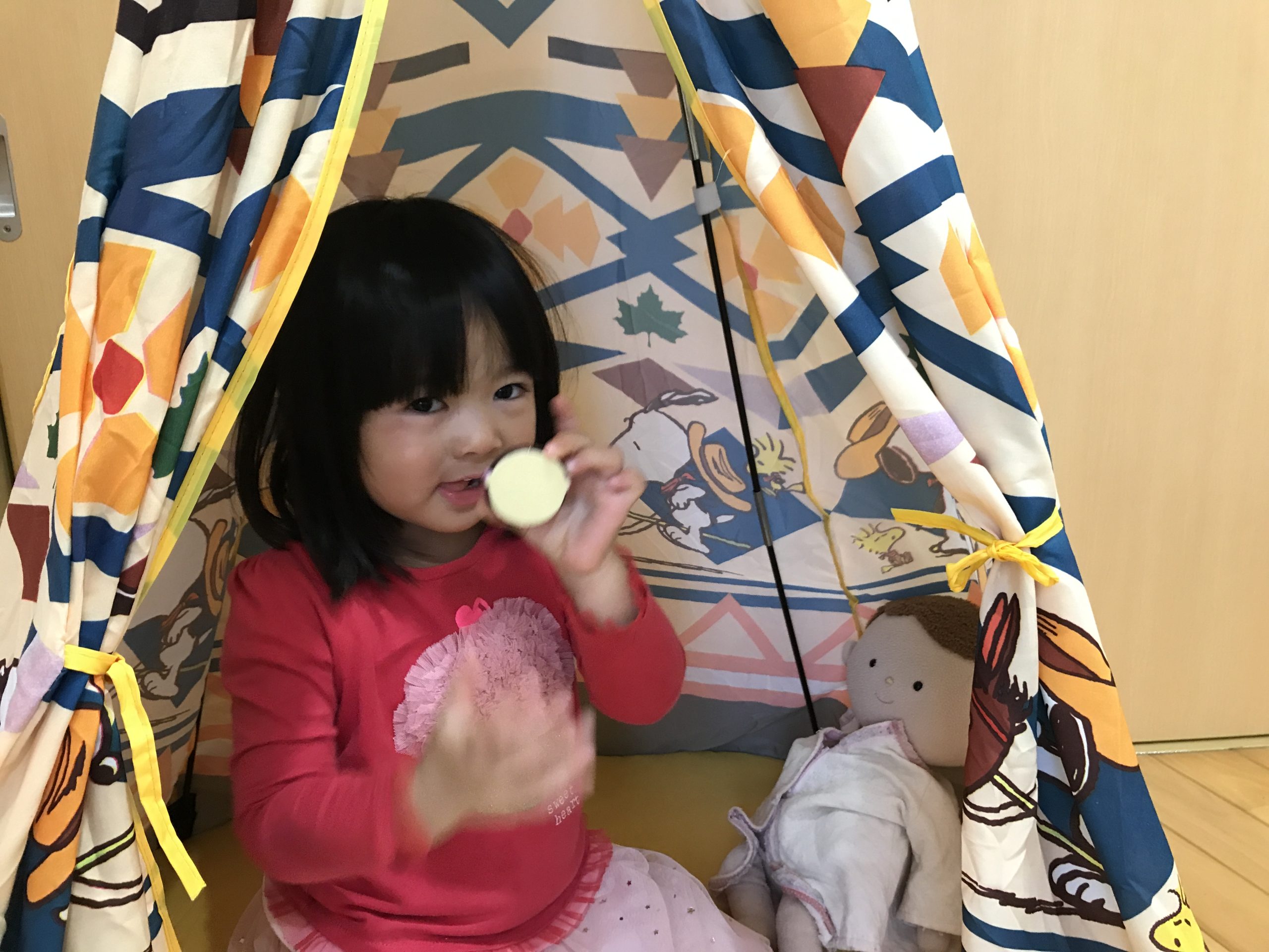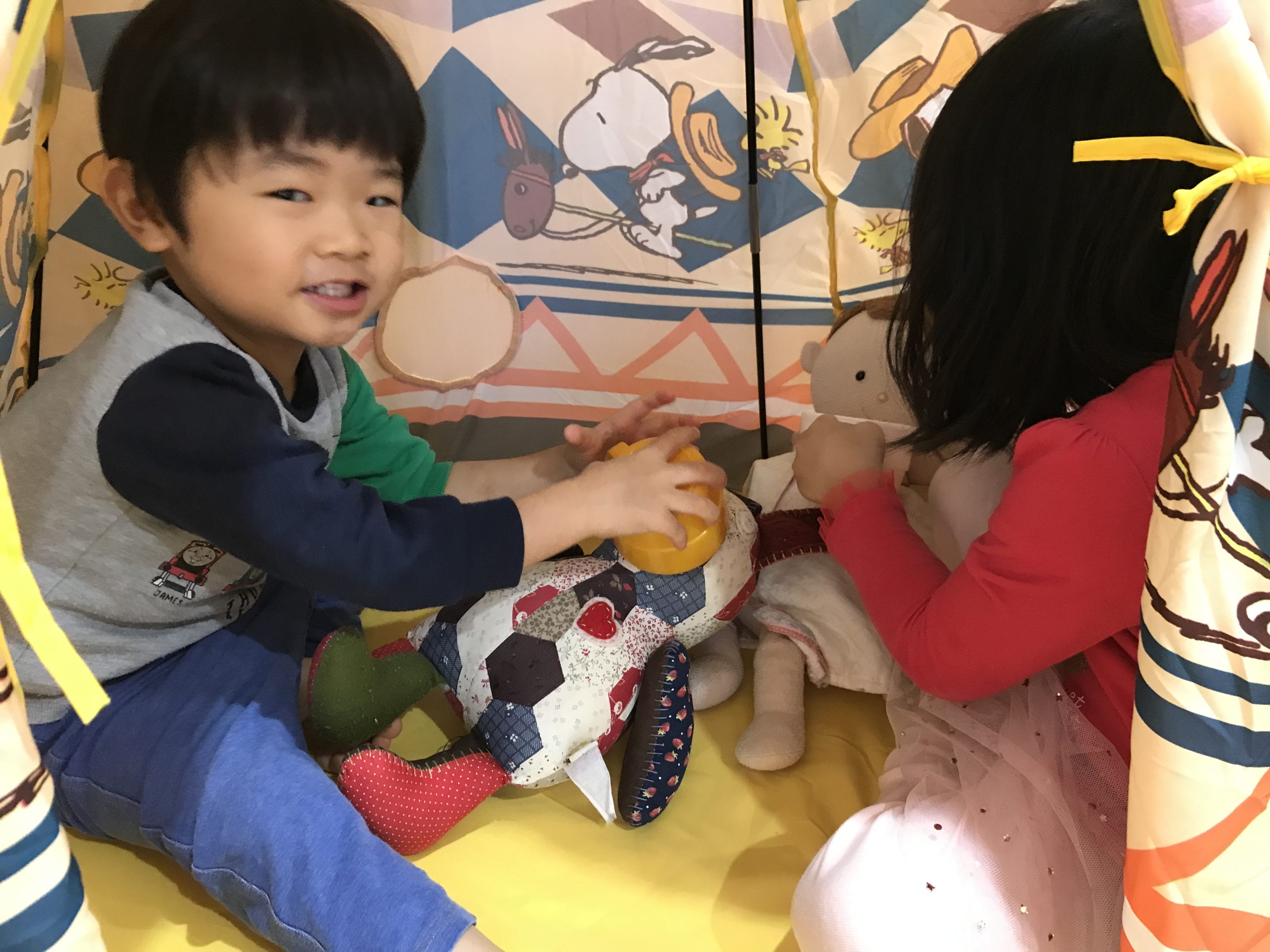 今日は、ままごと遊びをしました👶🏻🩵テントの中にたくさん食べ物を持っていき、お友だちと楽しそうに遊んでいましたよ🎶
