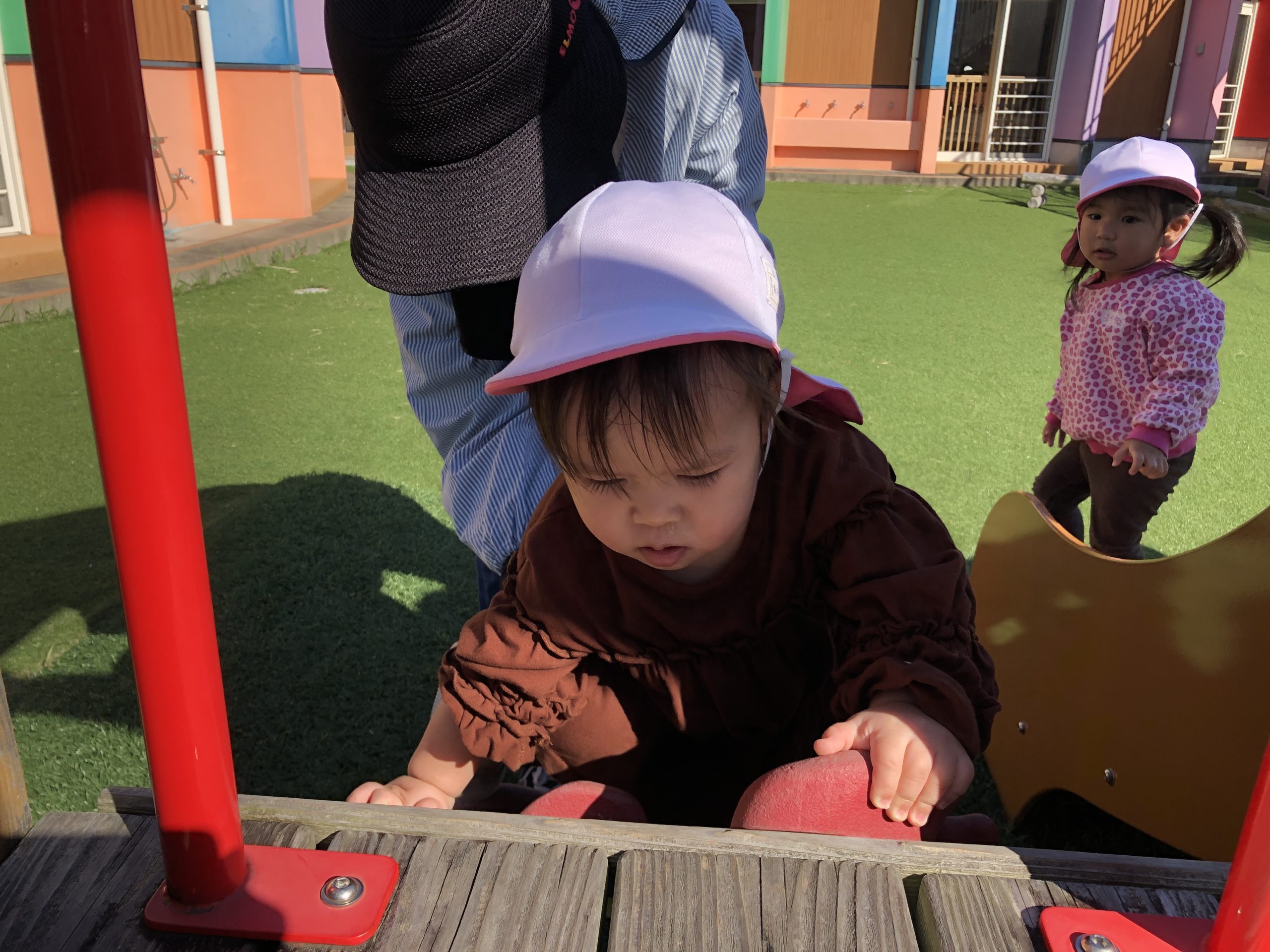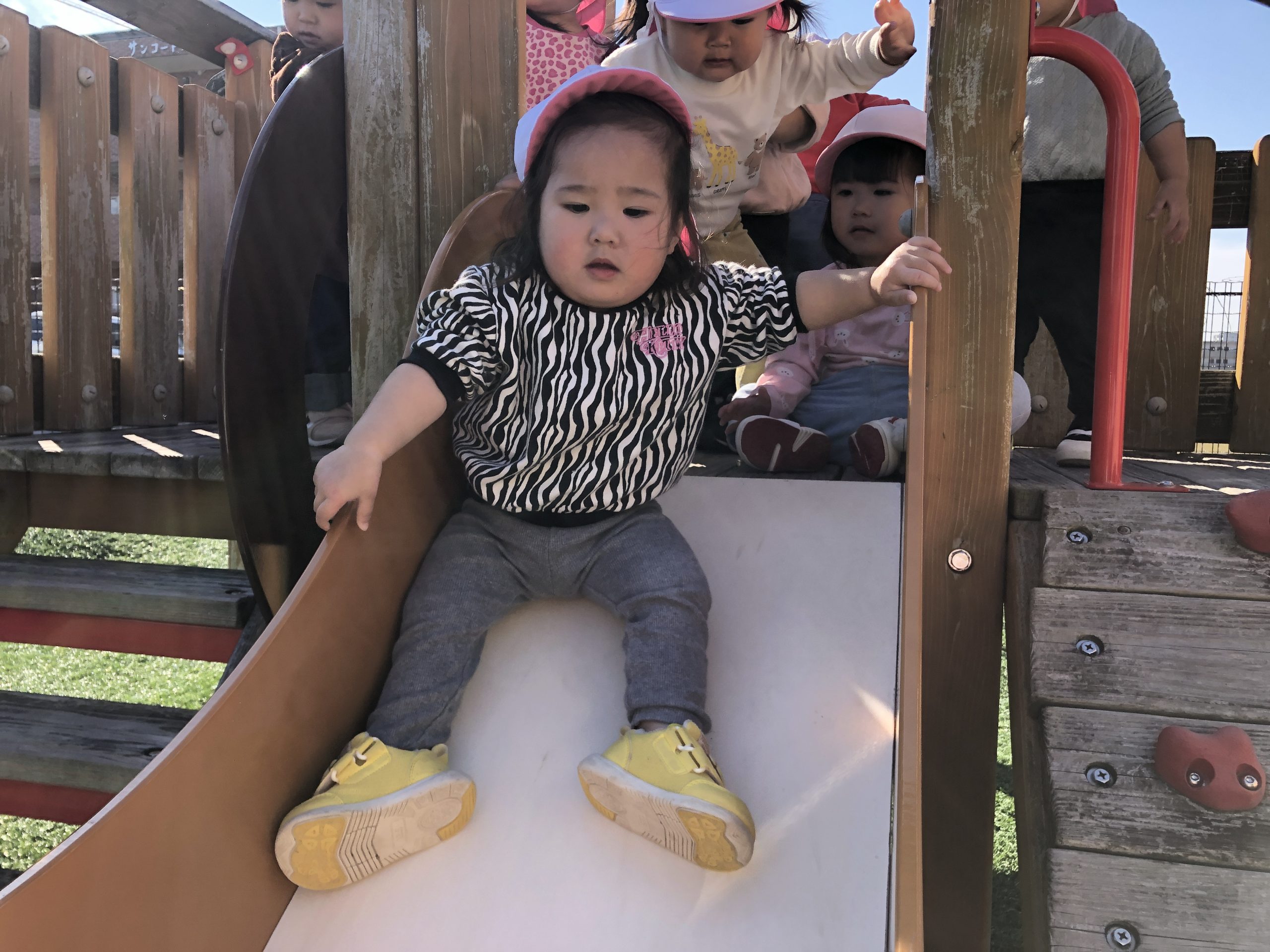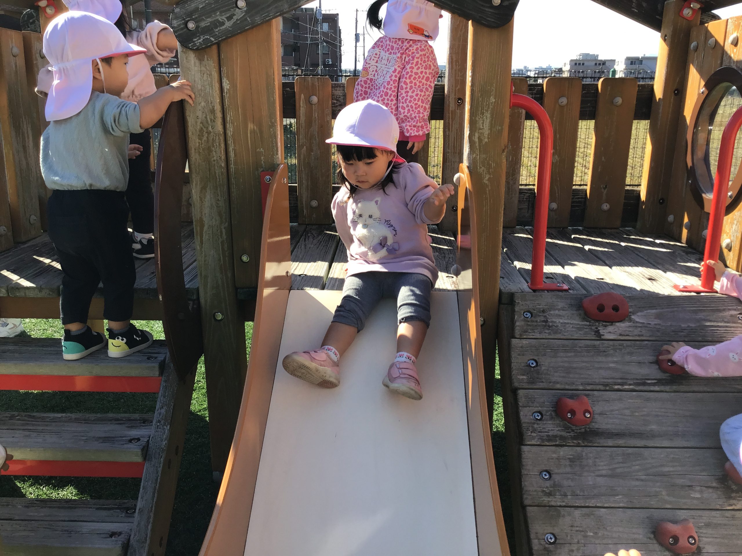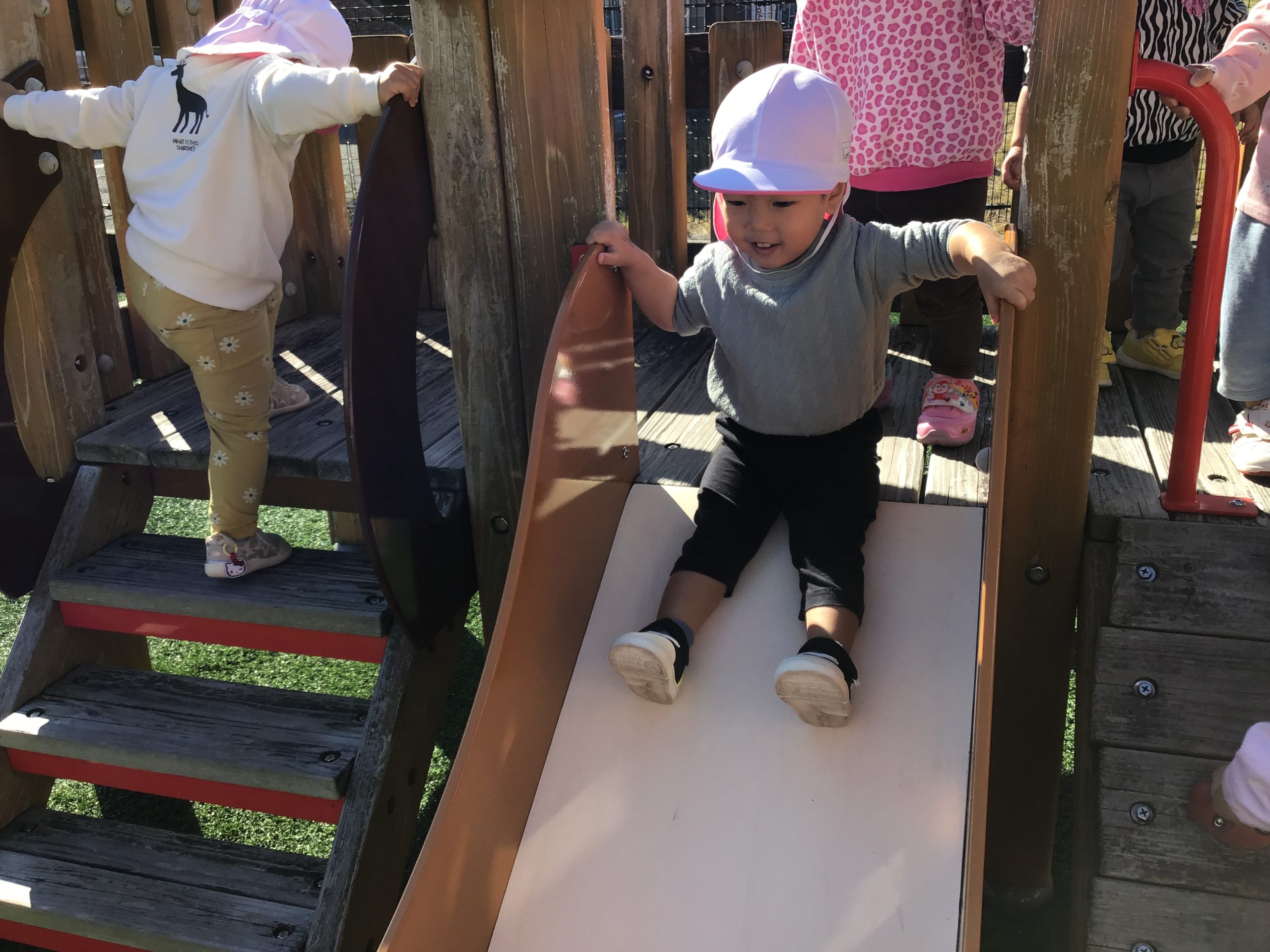 今日は、新園舎の園庭で遊びました!!固定遊具の滑り台を滑ったり、ボルダリングに登ったりして楽しんでいました✨また、みんなで「よーいどん!!」でお友達と走り出したりしていましたよ!!