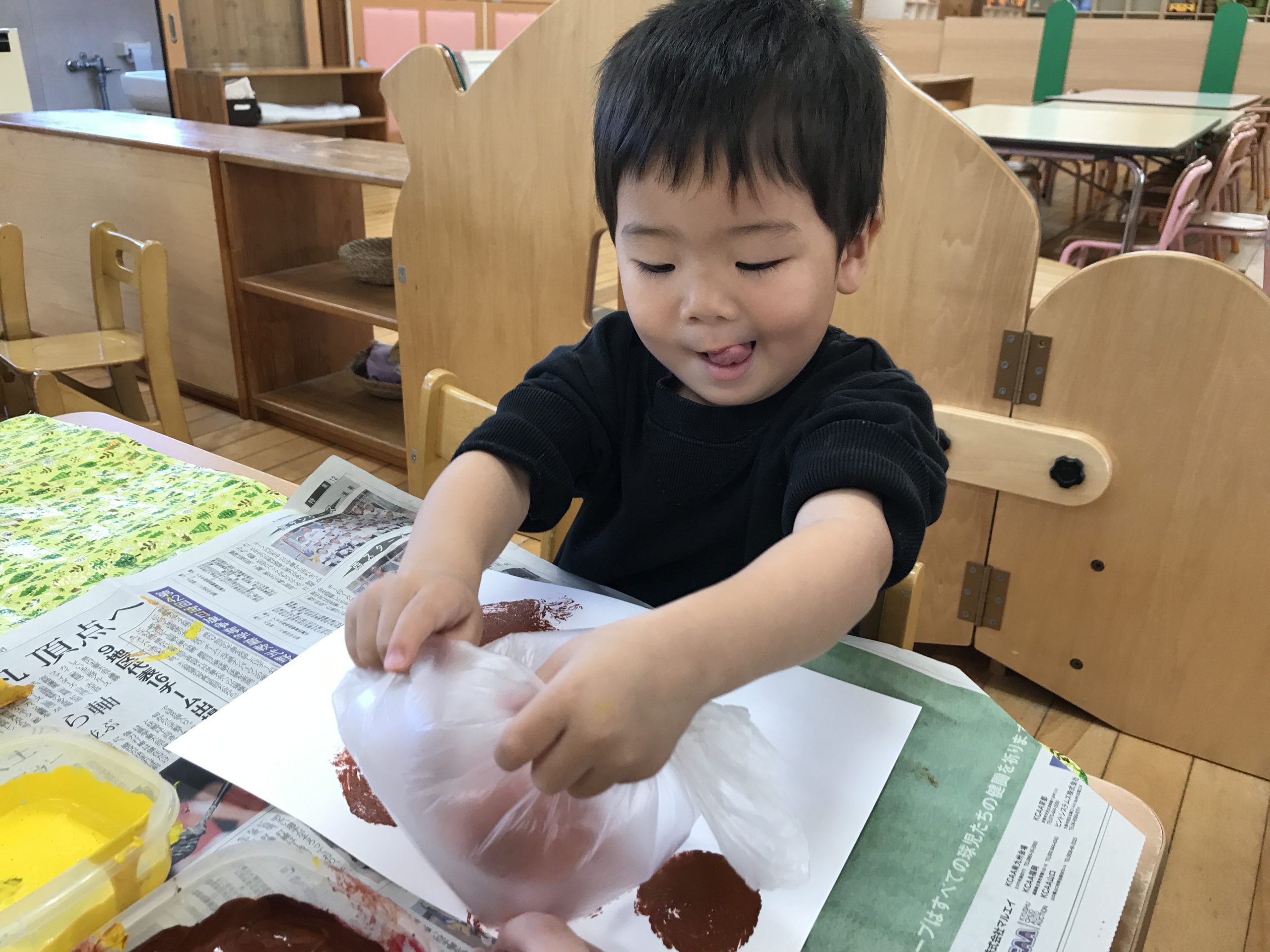 今日は11月の製作をしました😊みんな上手にスタンプすることができていましたよ✨