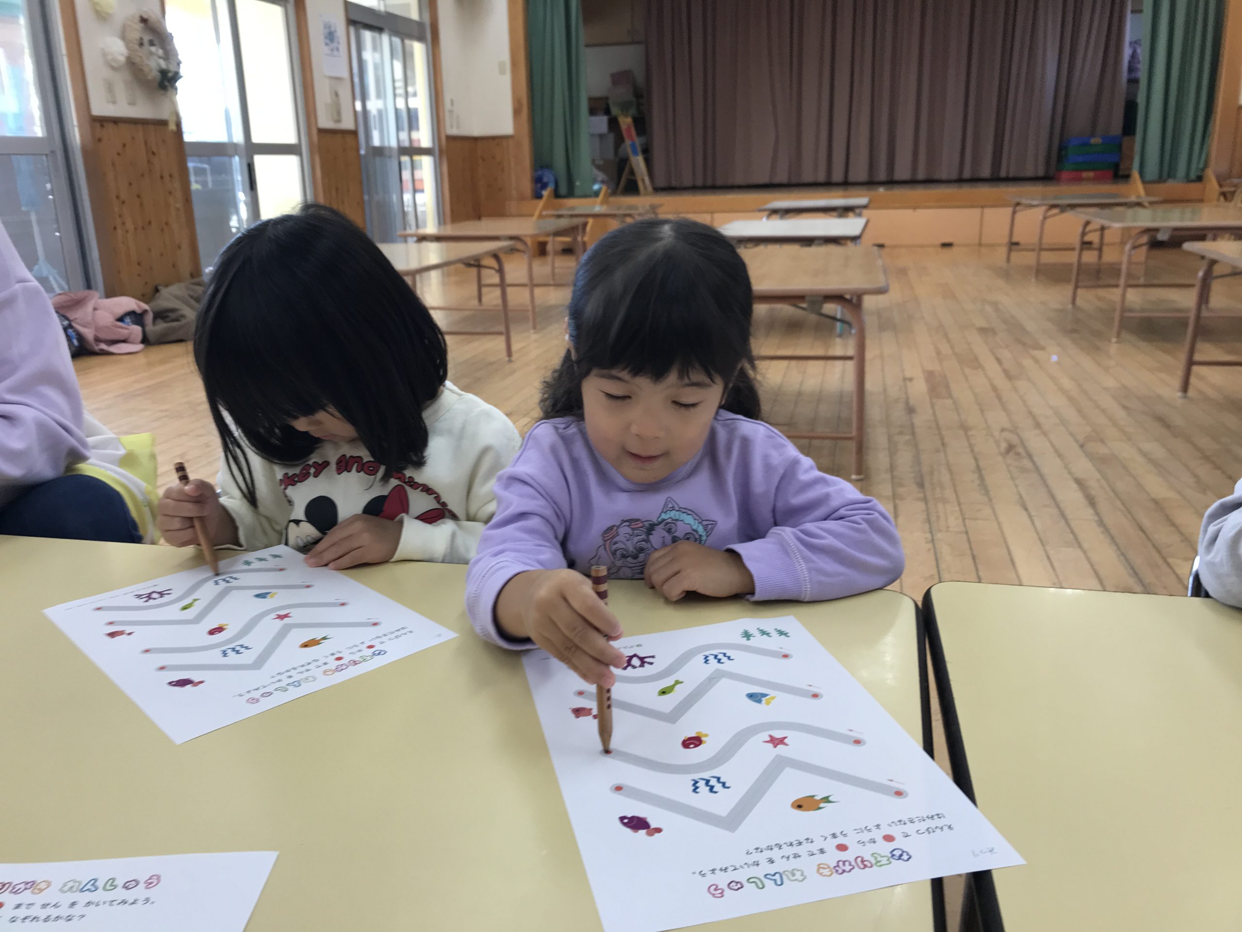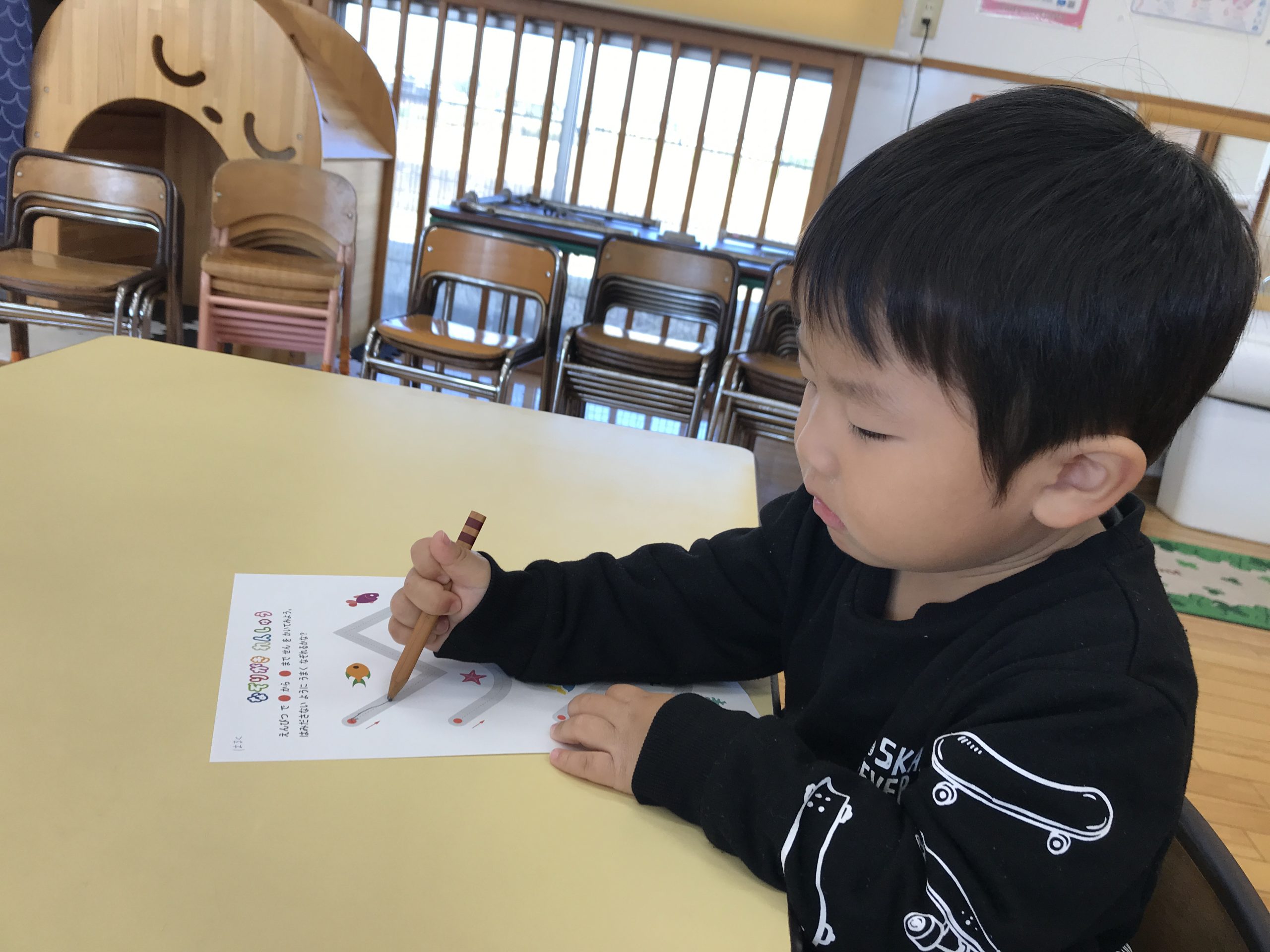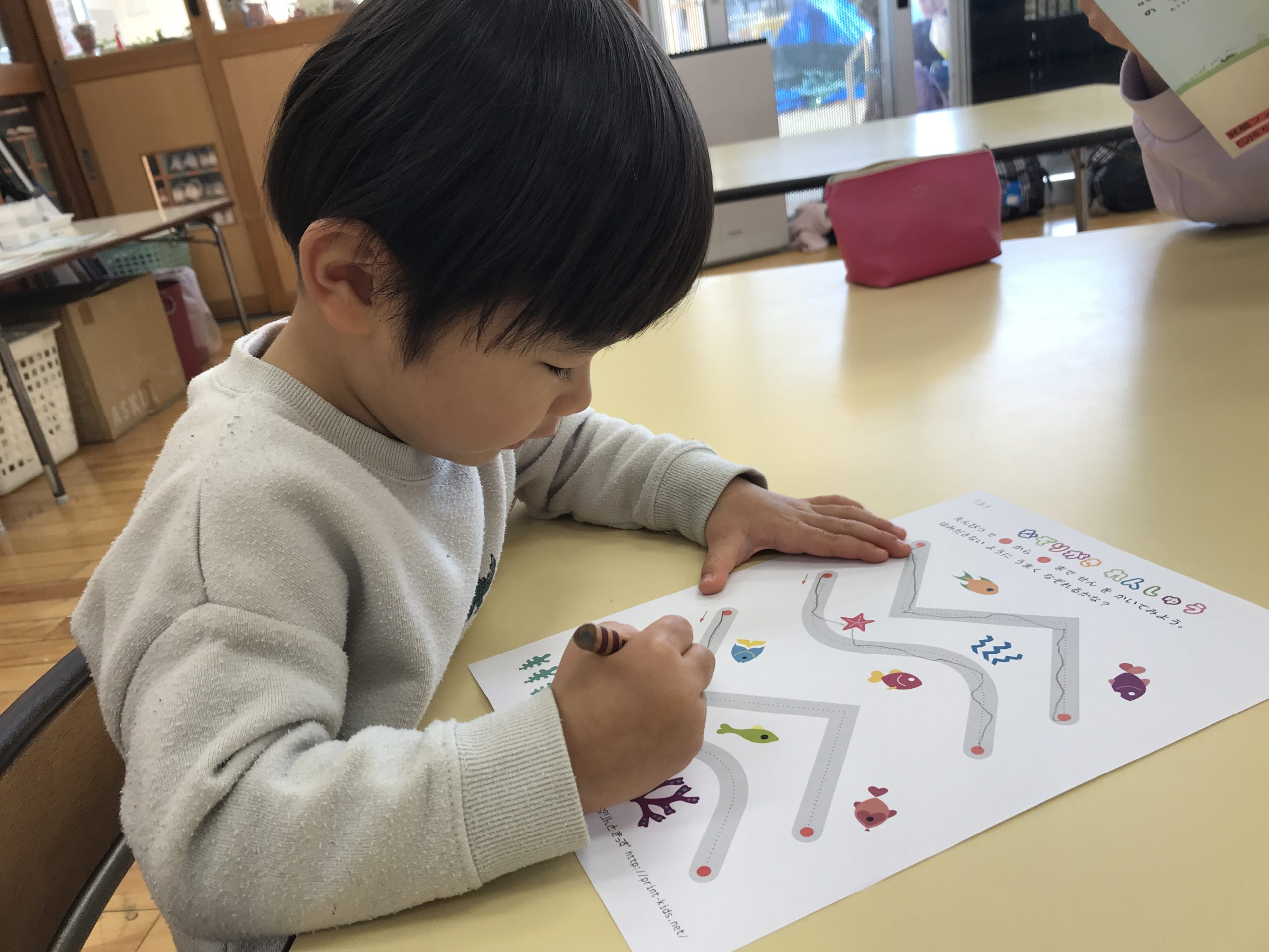 今日は、線なぞりをしました!✏上手に鉛筆を握りながら集中して取り組んでいましたよ⭐