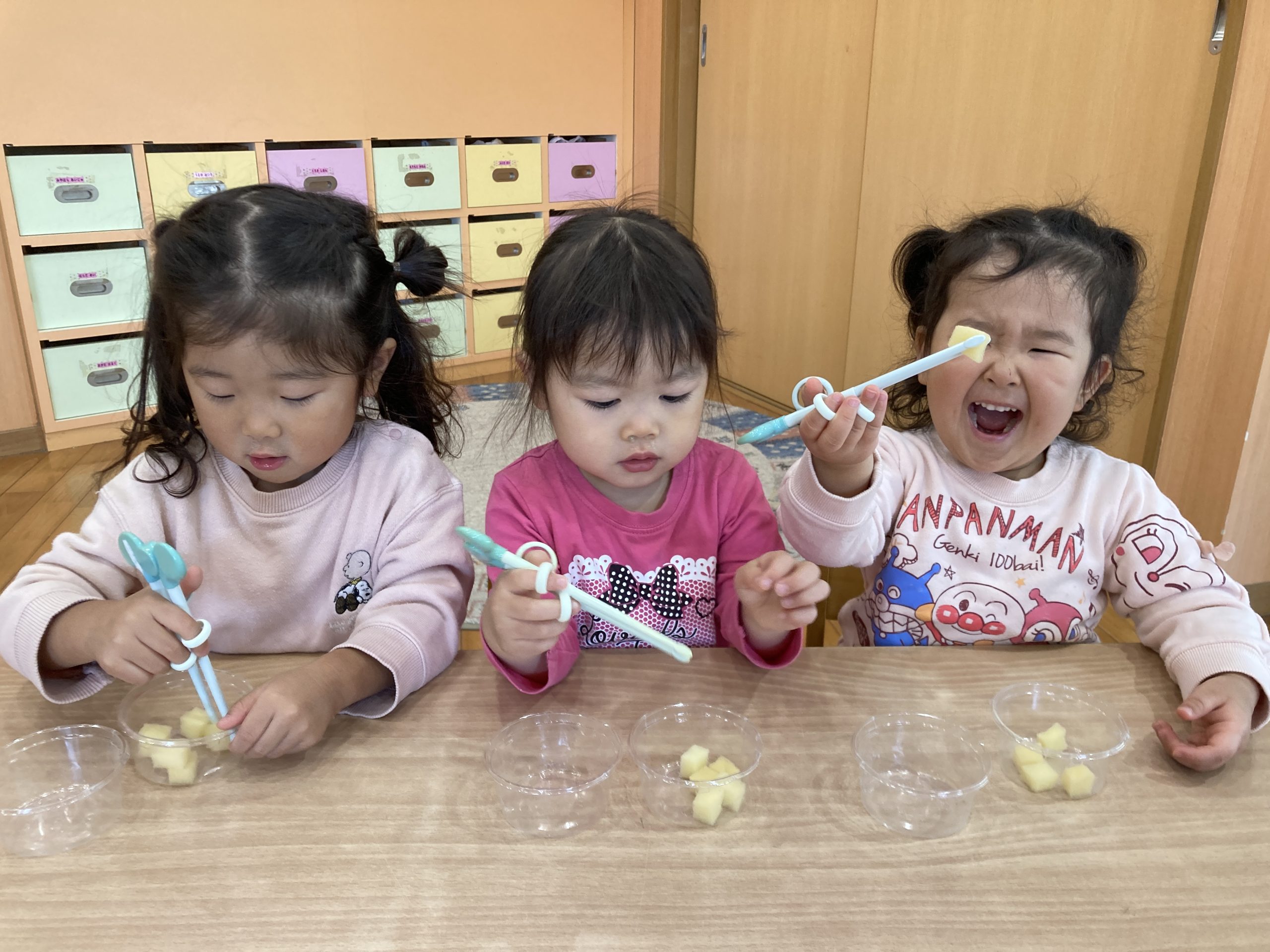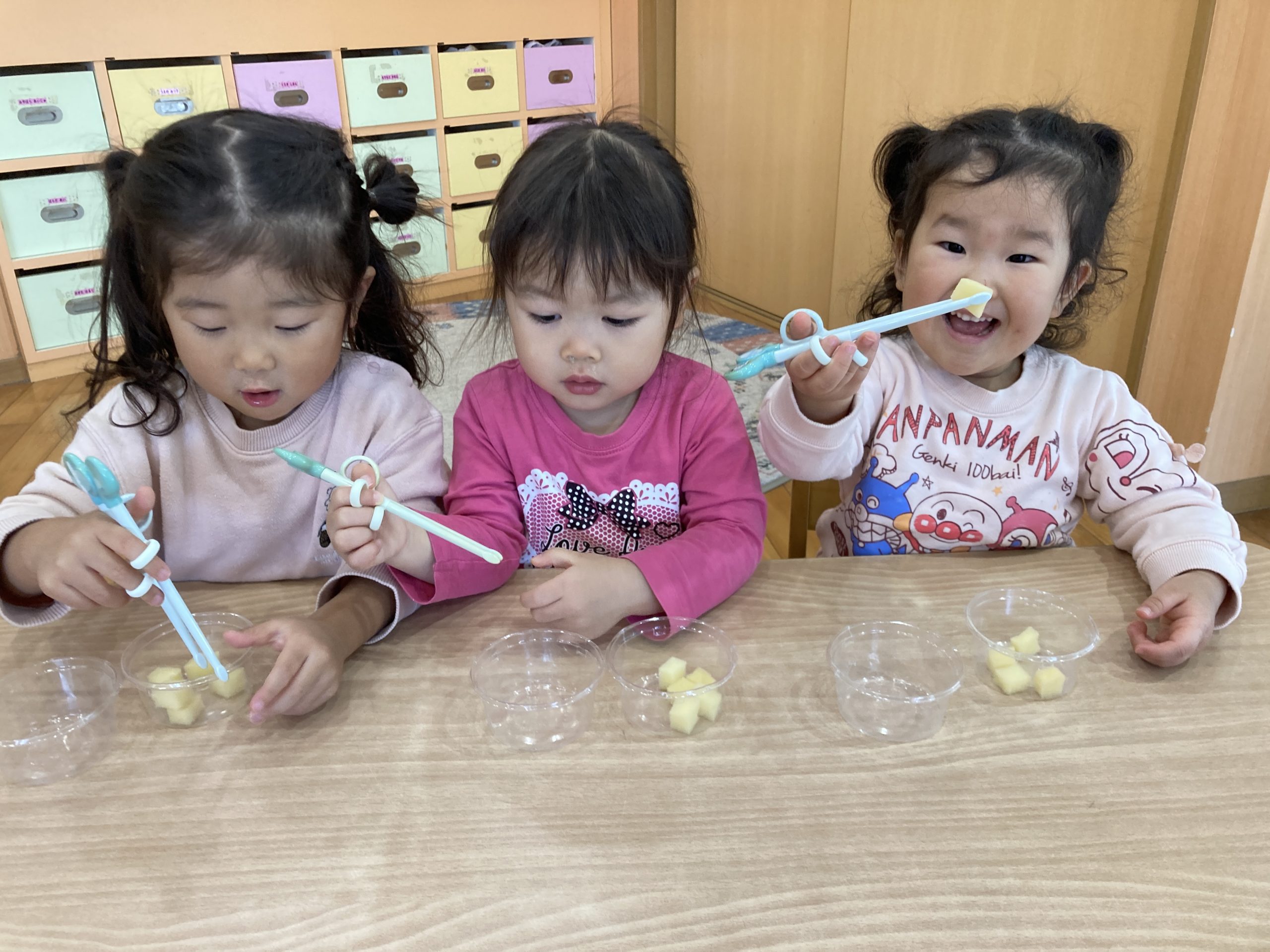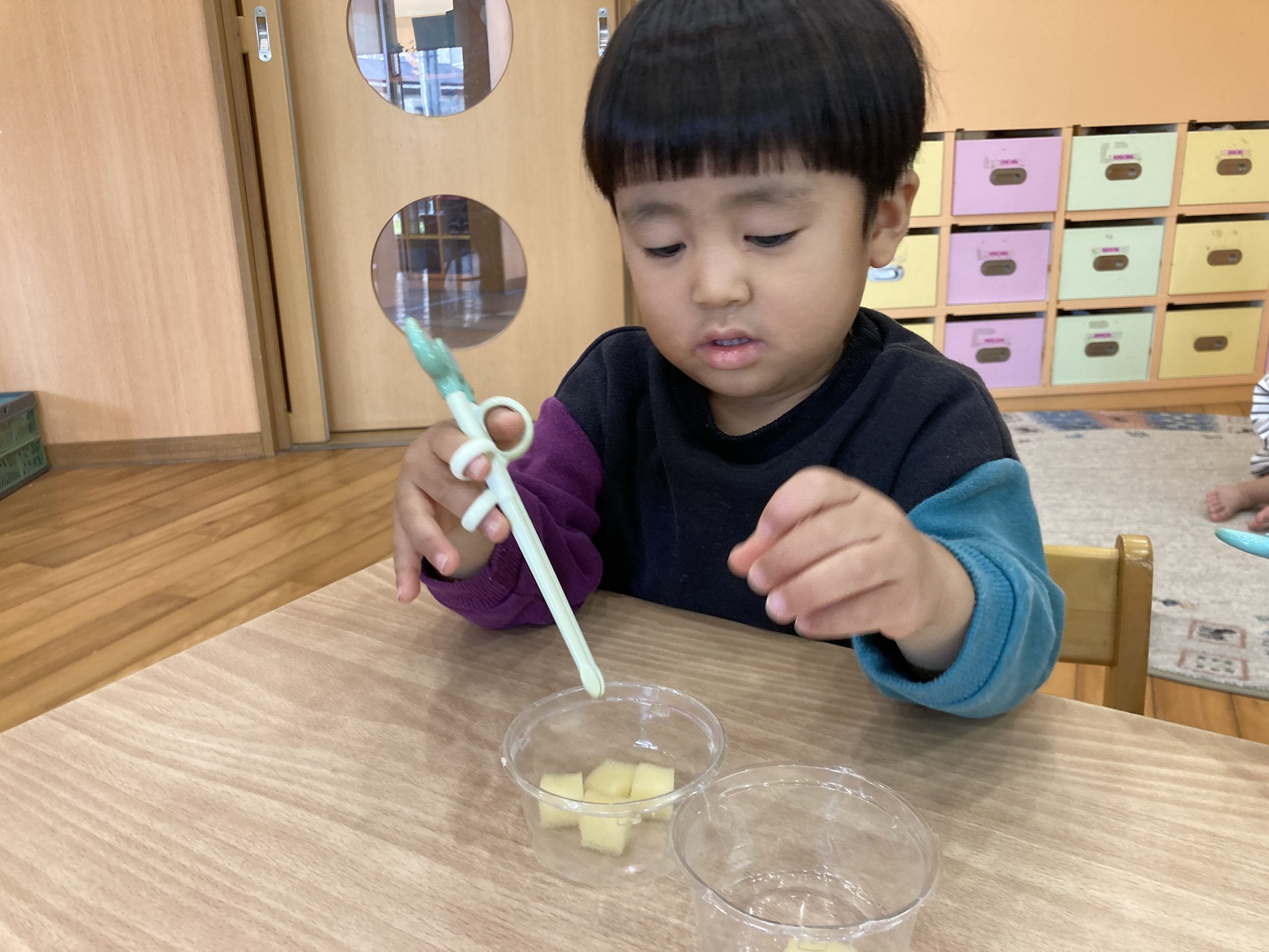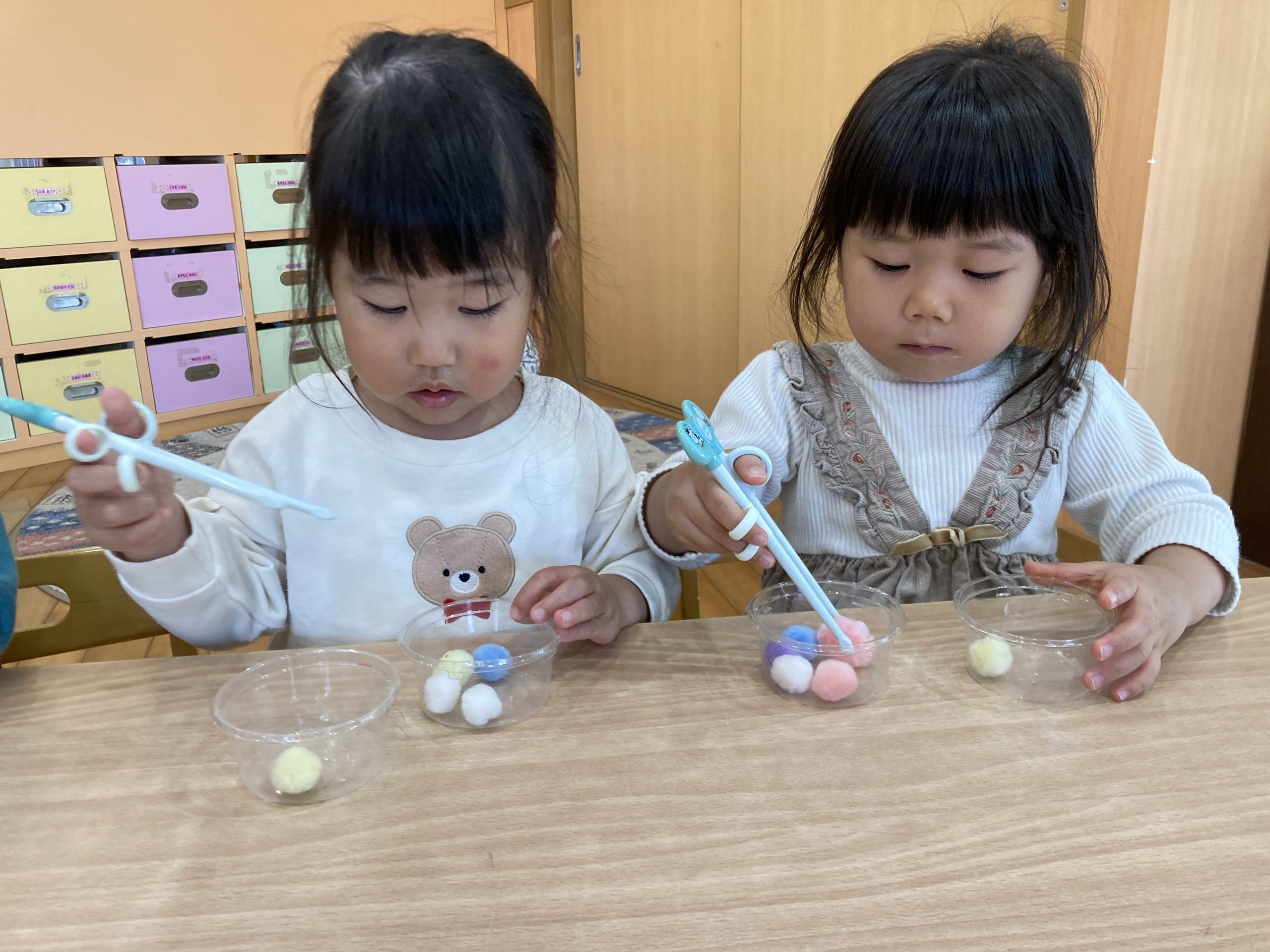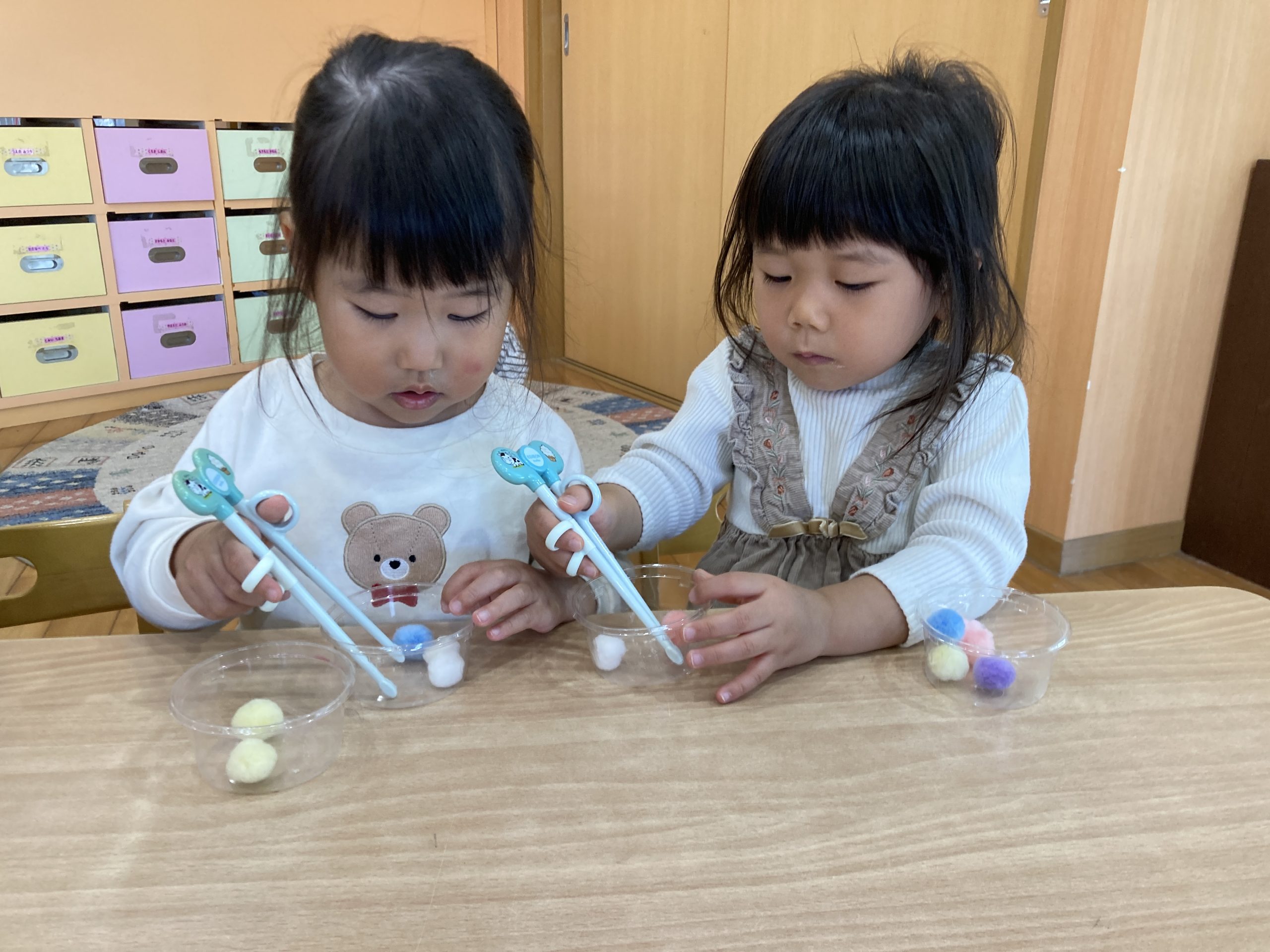 今日は、豆うつしをしました!🌈補助箸やアンパンマンの箸を使ってスポンジと豆を上手に掴むことができていましたよ✨