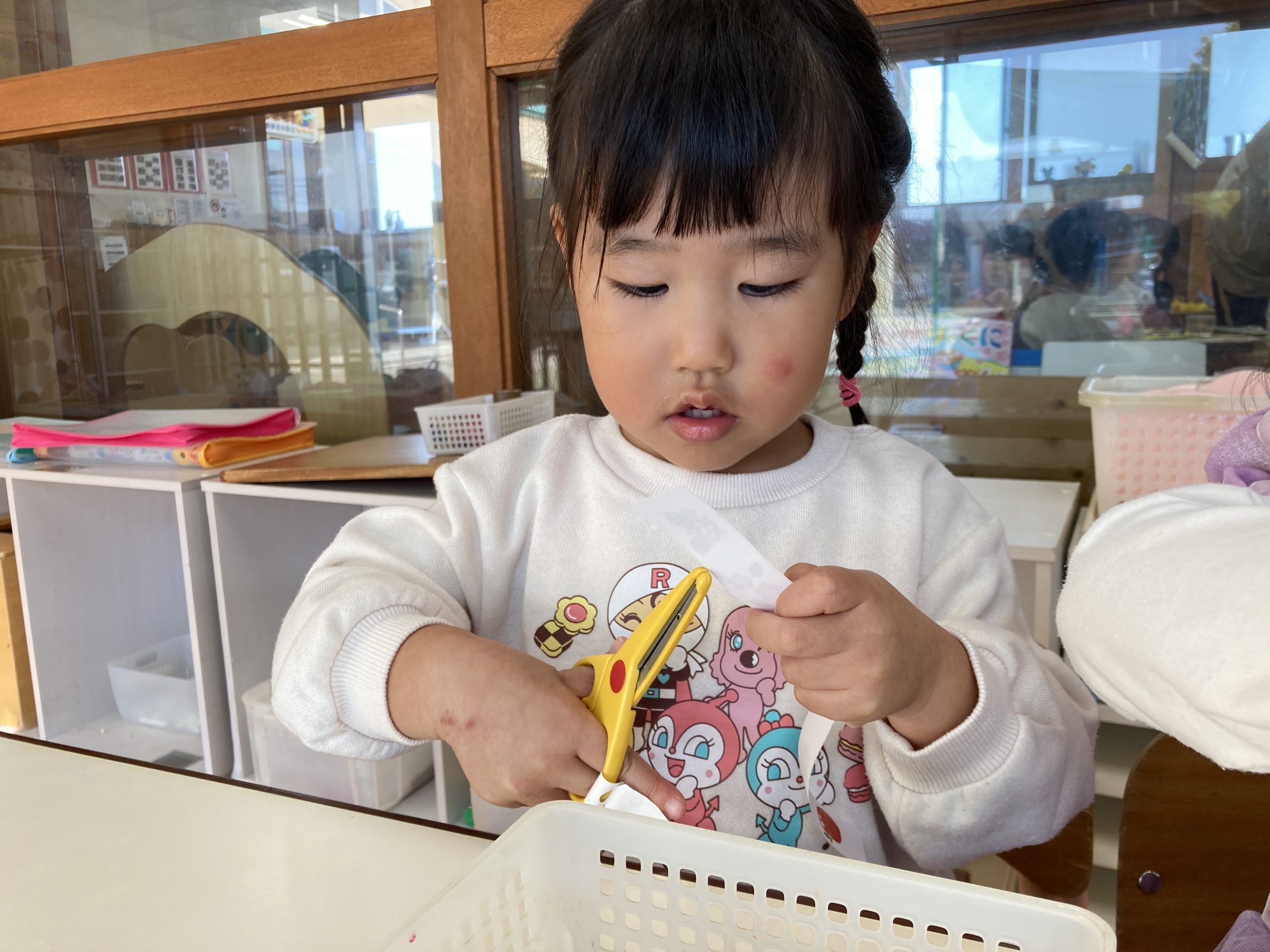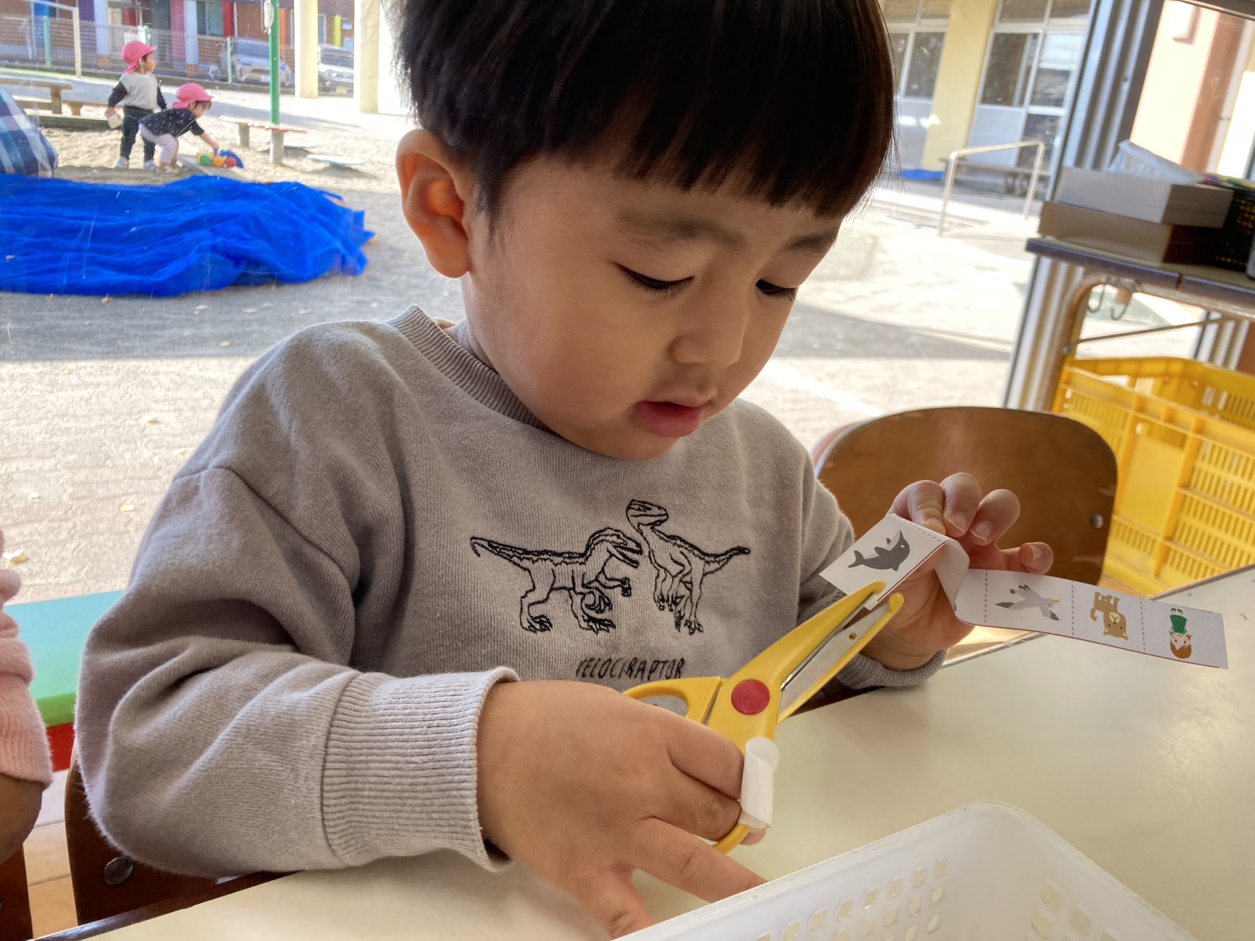今日は、はさみの練習をしました!✂真剣な表情で一度切りに取り組んでいましたよ🌟
