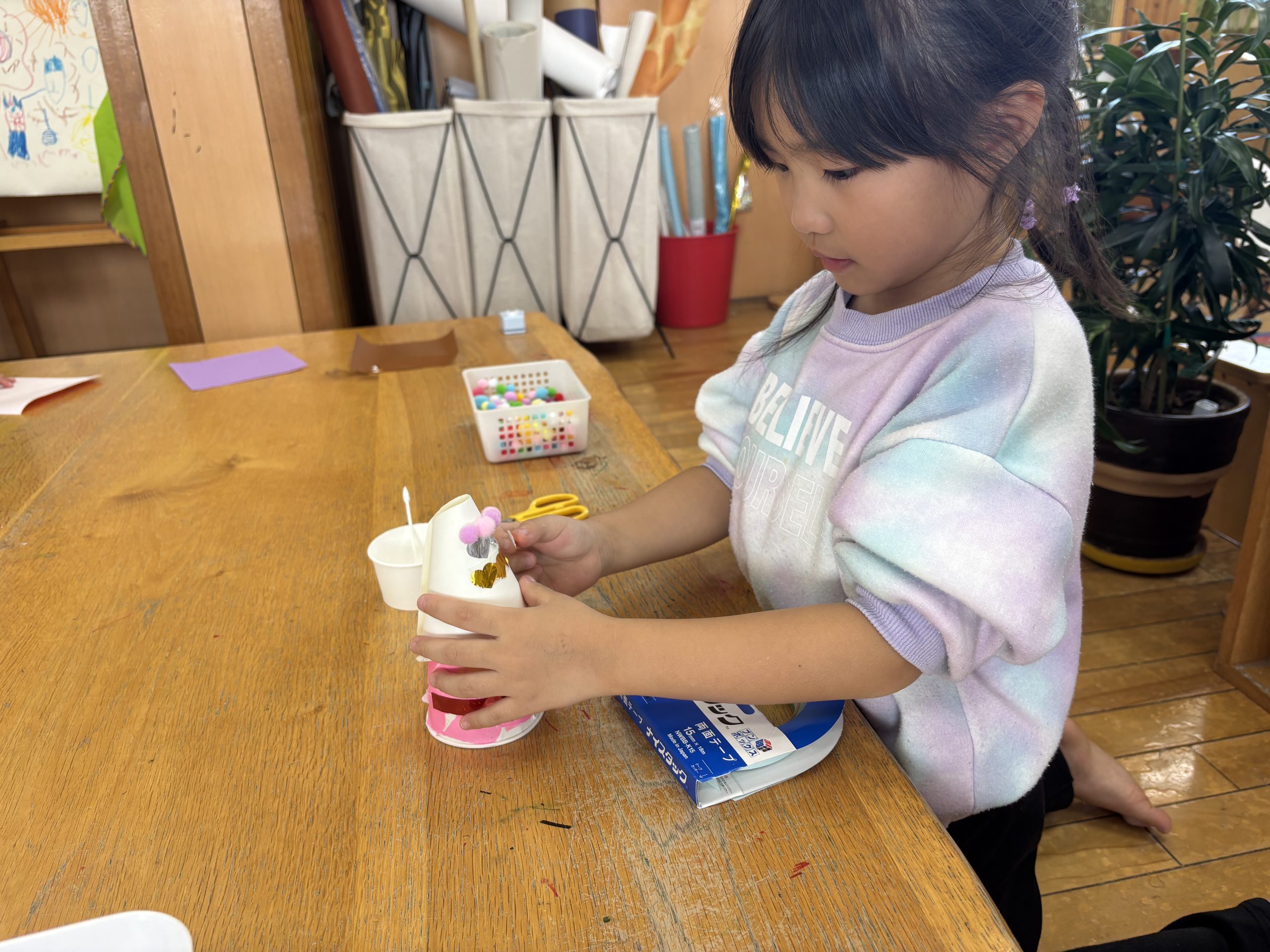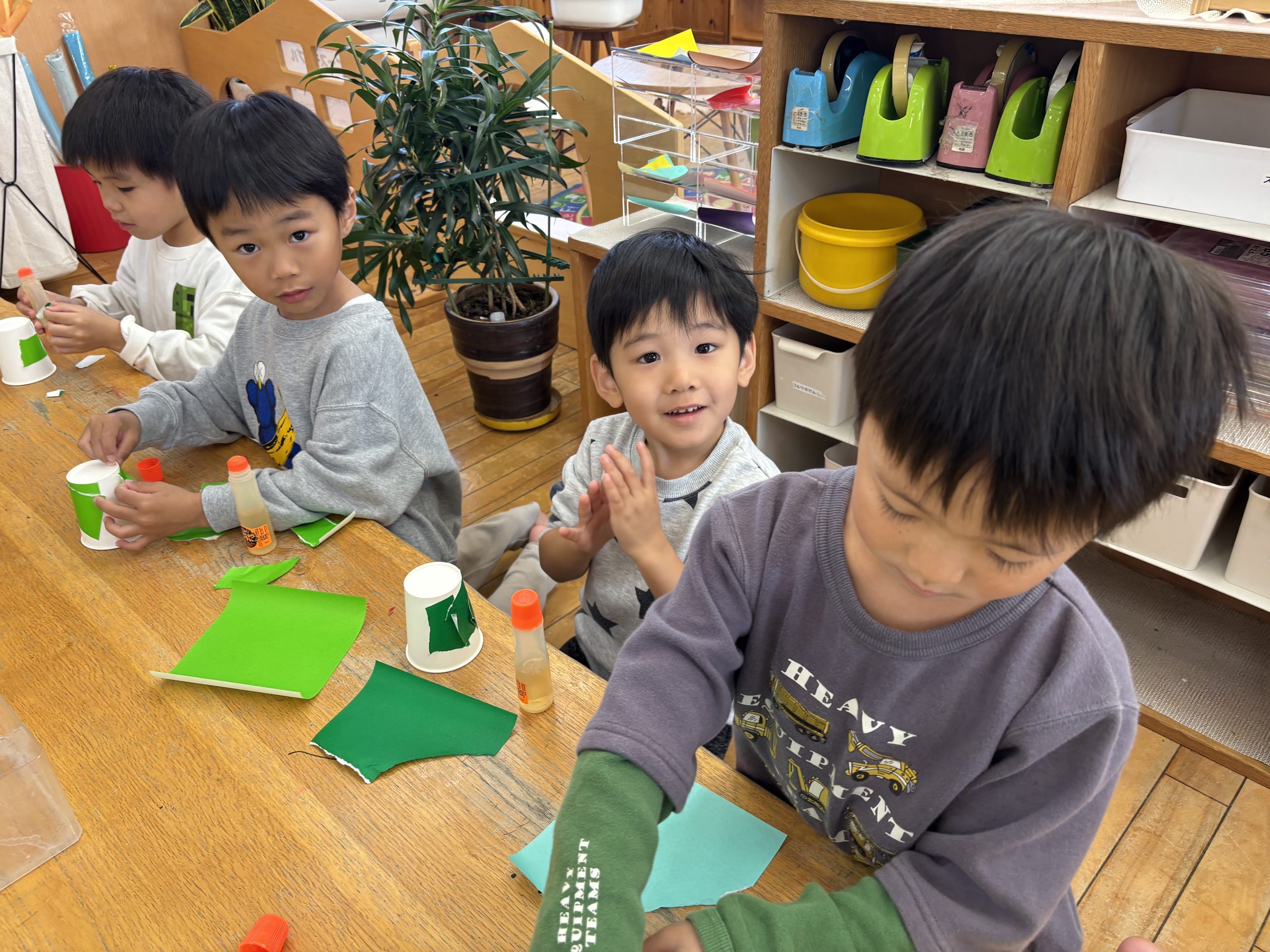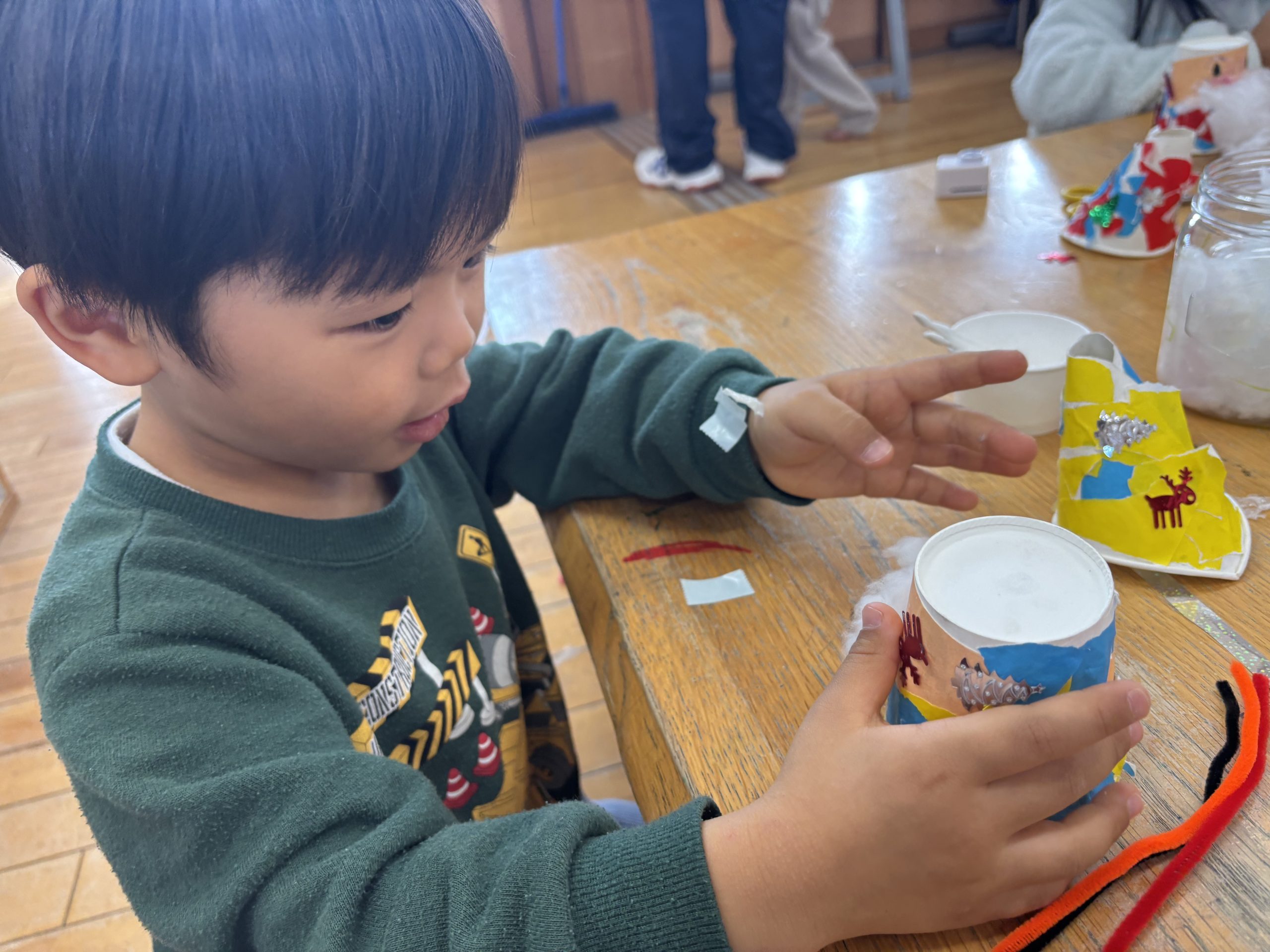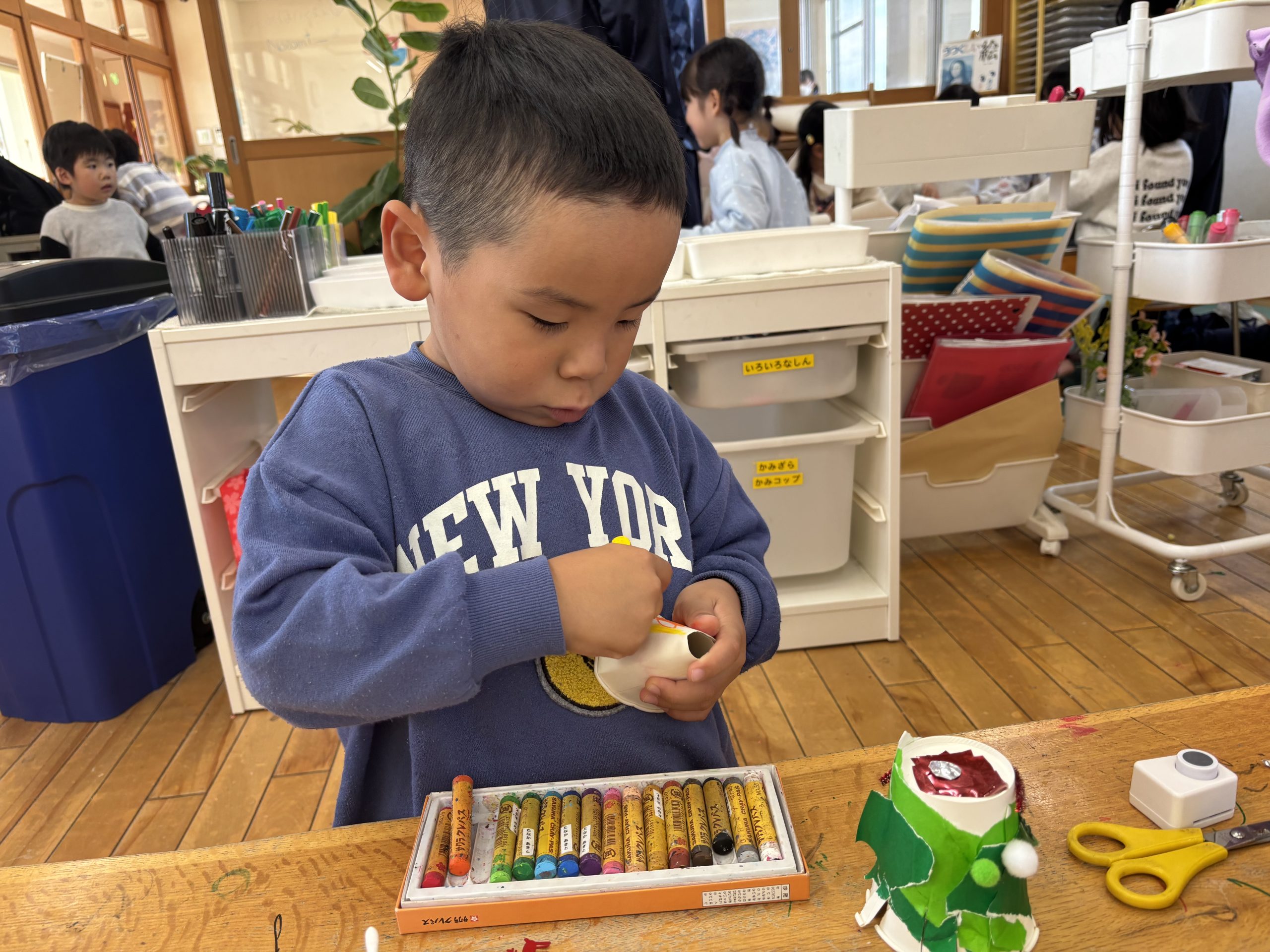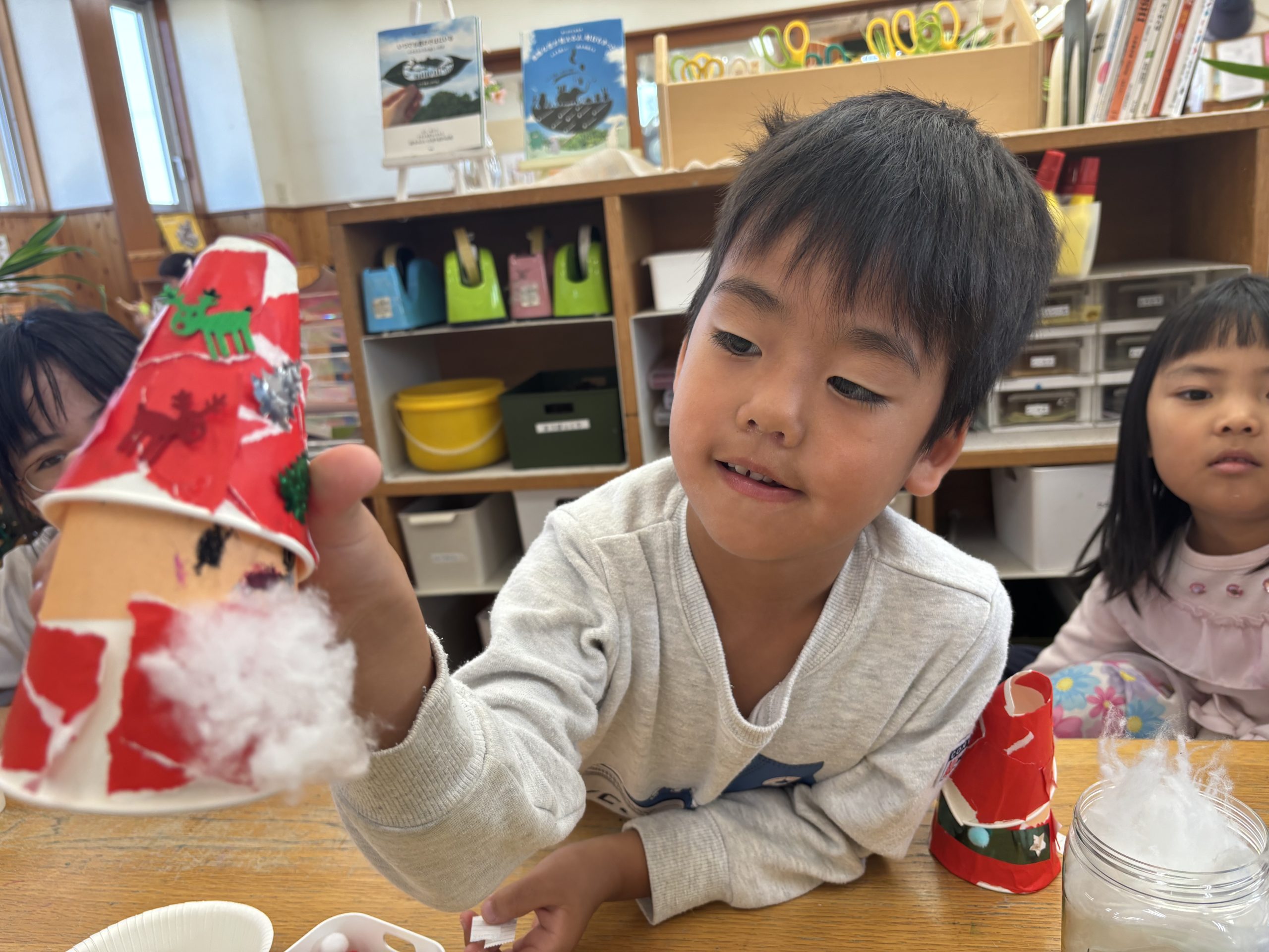 今日はクリスマス製作をしました。サンタさんとクリスマスツリーのどちらか好きな方を選んで作りました🎅🏻🎄貼り絵をしてポンポンやモールをつけて飾り付けをしました✨
