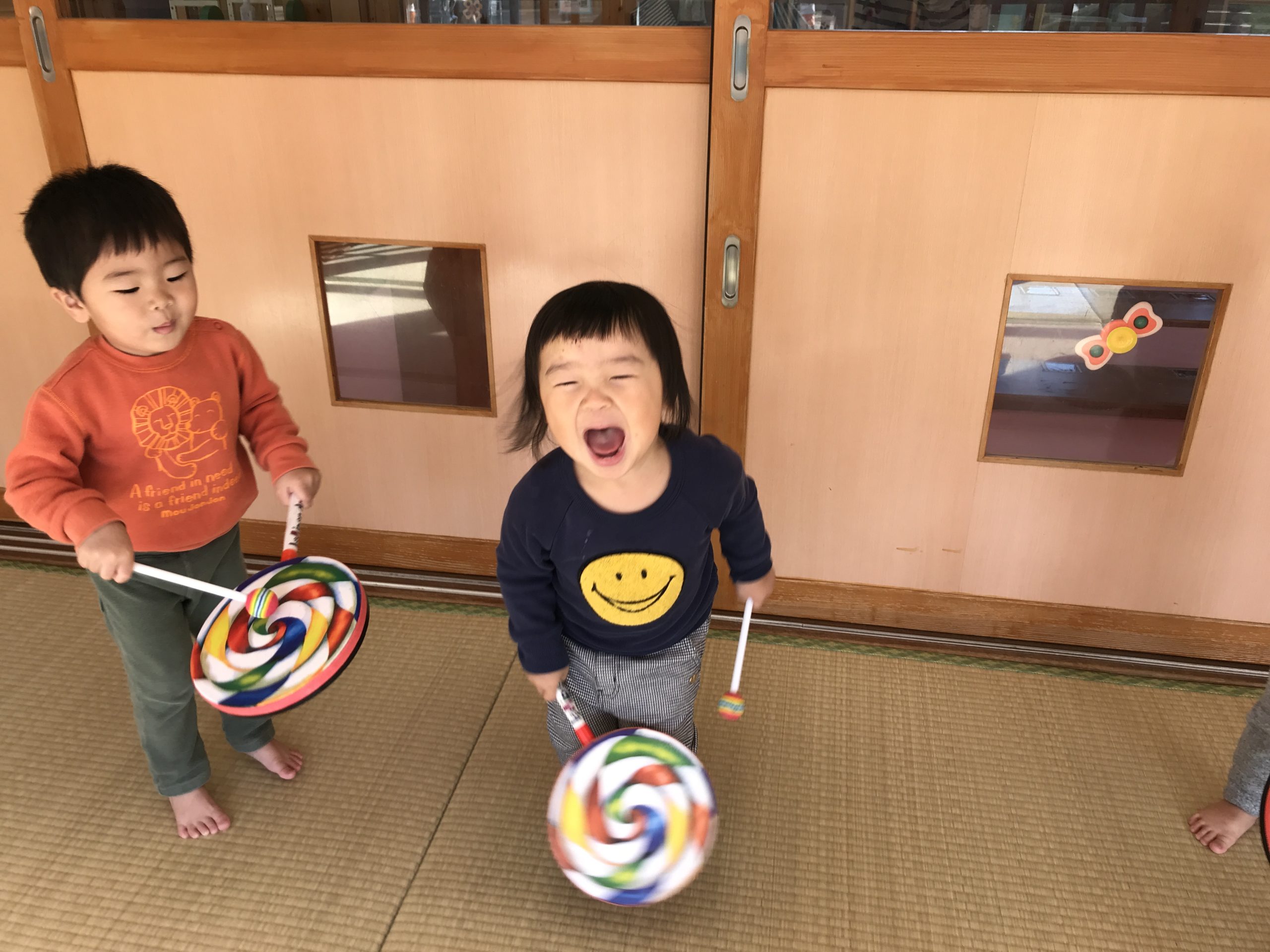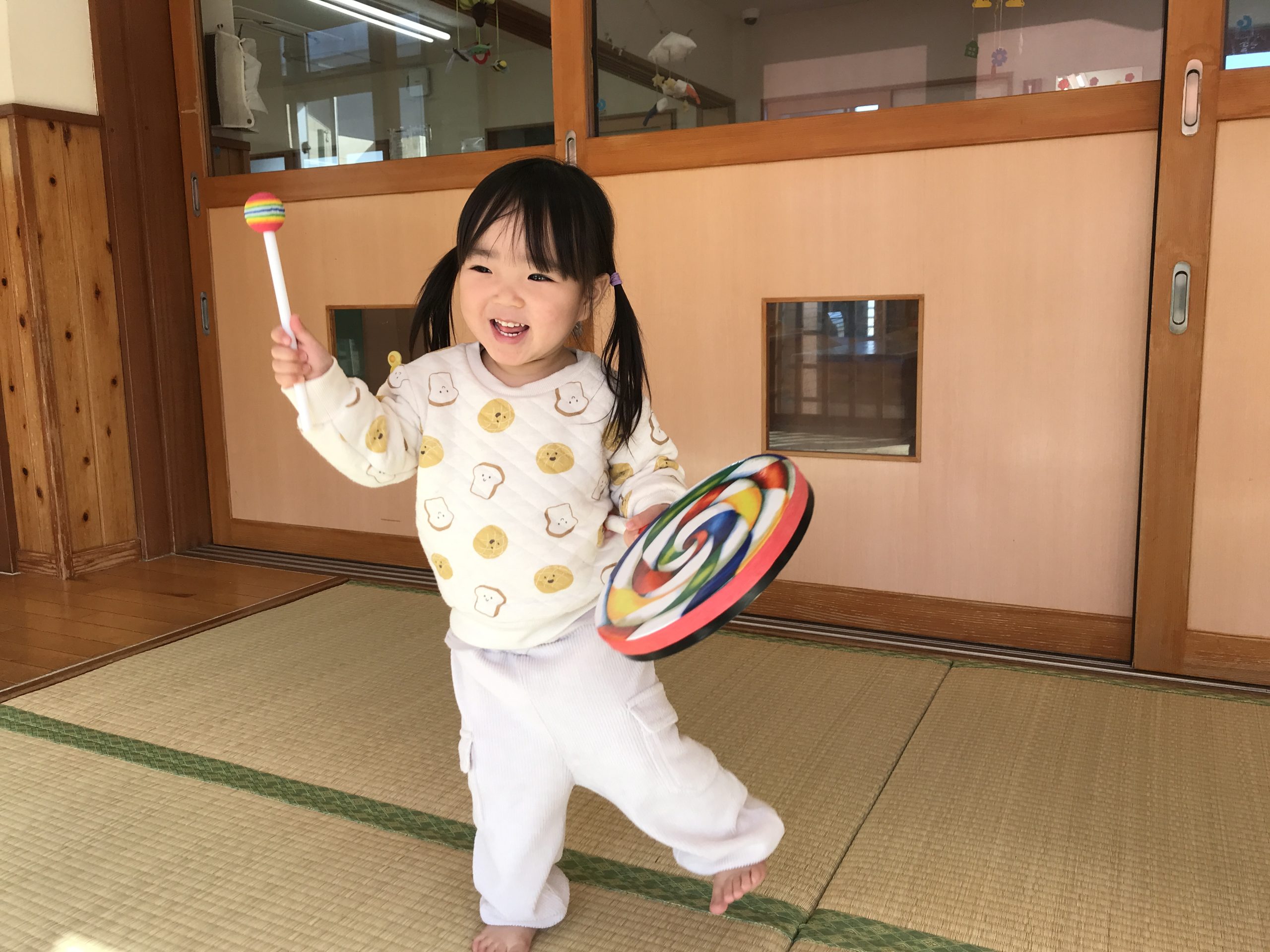 今日はリズム遊びをしました🎵音楽に合わせて踊ったり、楽器を叩いたりしていましたよ✨
