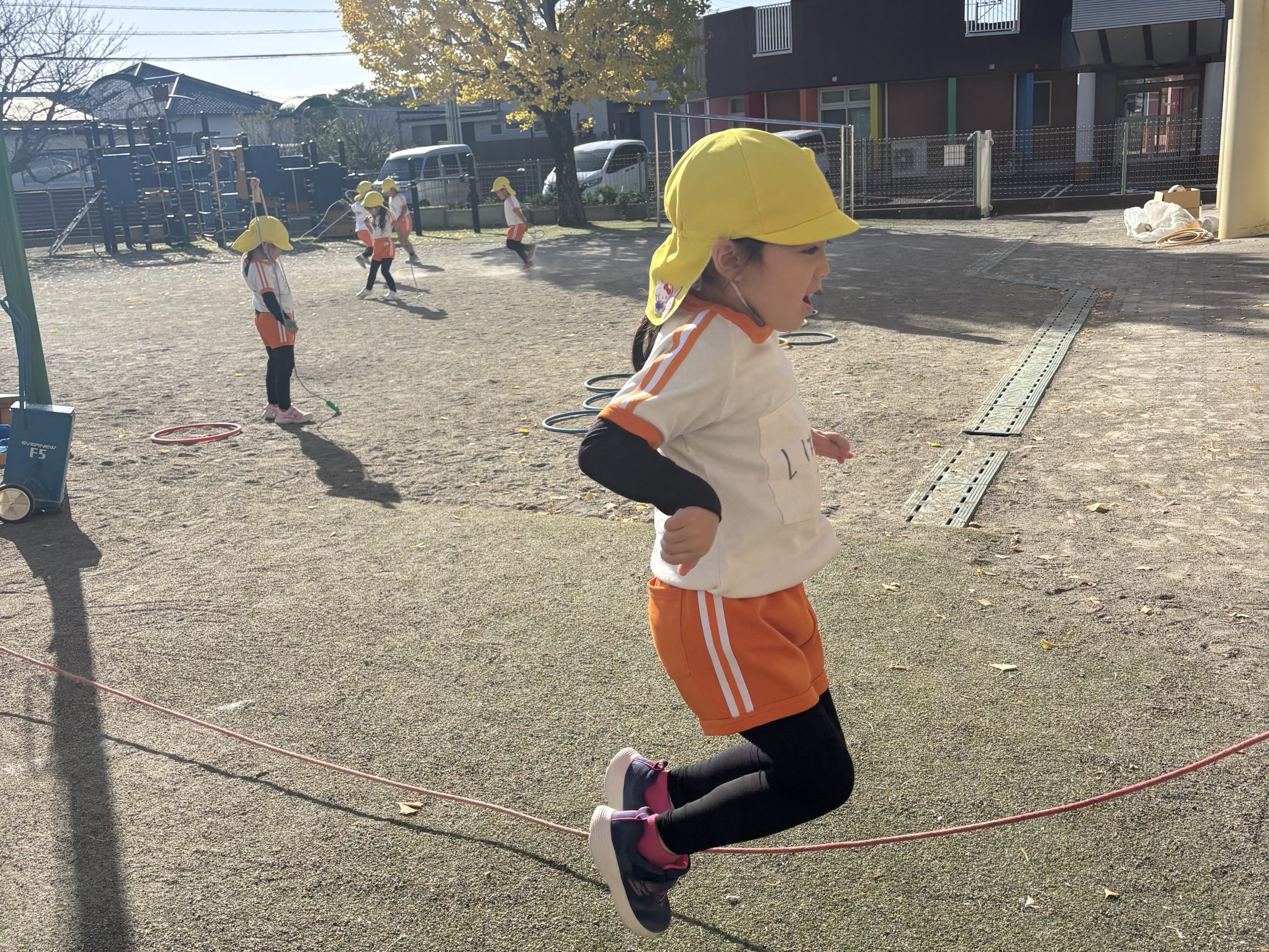 今日の体育遊びは、長縄・短縄・大型遊具・フラフープ・登り棒・かけっこ・中当てをしました。かけっこではきりん組との対決で、りす組のお友達が1位になるとみんなで大喜びしていました✨