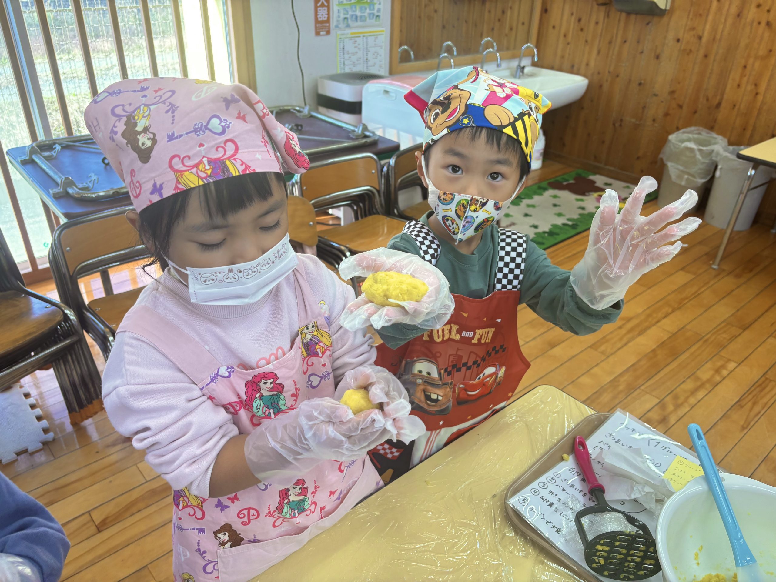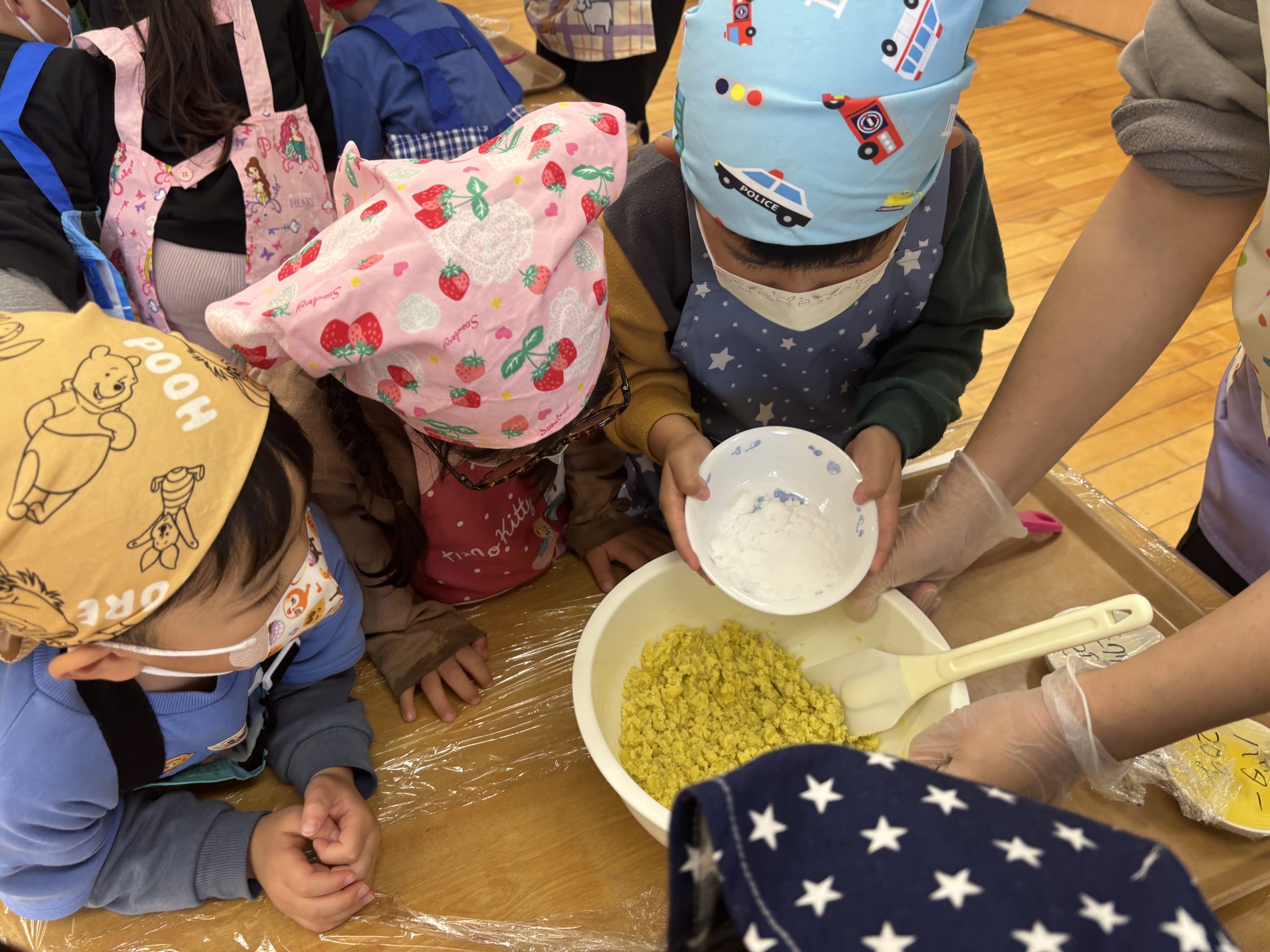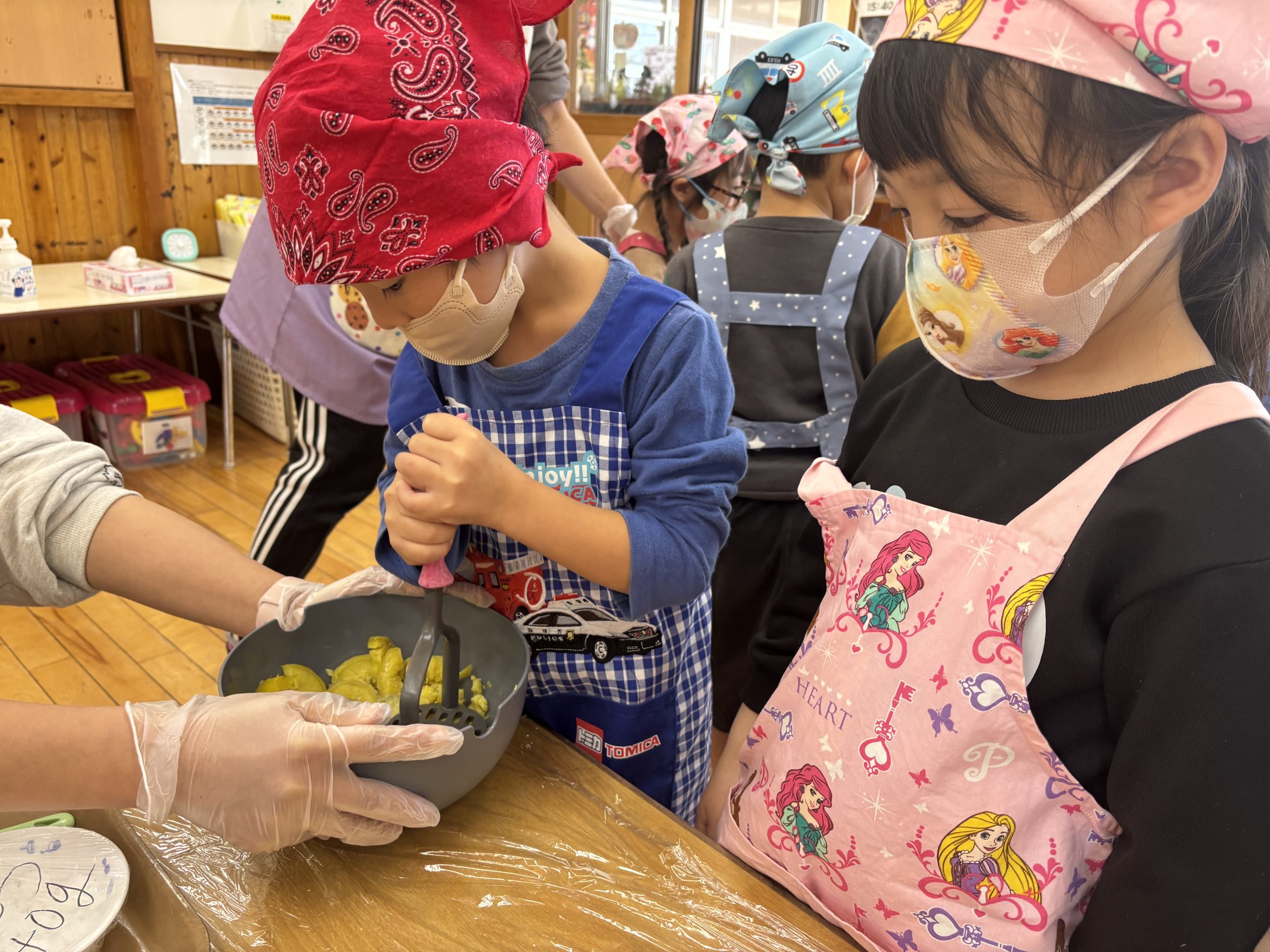 午後からはずっと楽しみにしていたさつまいもクッキングで、スイートポテトを作りました🍠お芋をつぶしたり丸めたりとお友達と楽しそうに作っていましたよ💖